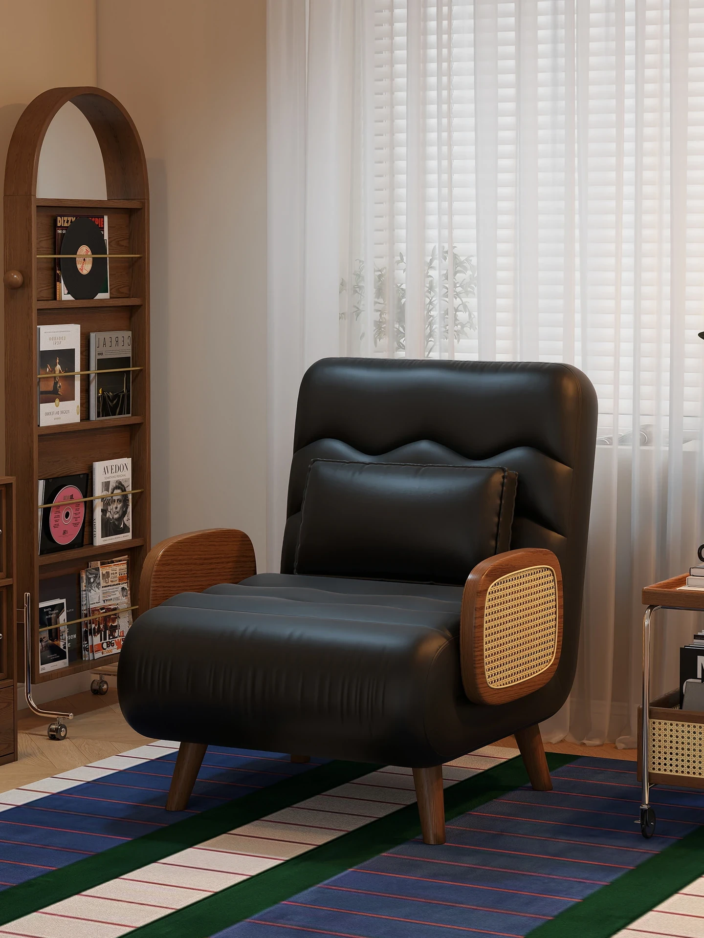 一人用ヴィンテージ風ソファチェア - 木製リビング用リラックスチェア、書斎やバルコニーにも最適!レトロな背もたれで、くつろぎのひとときを提供します。