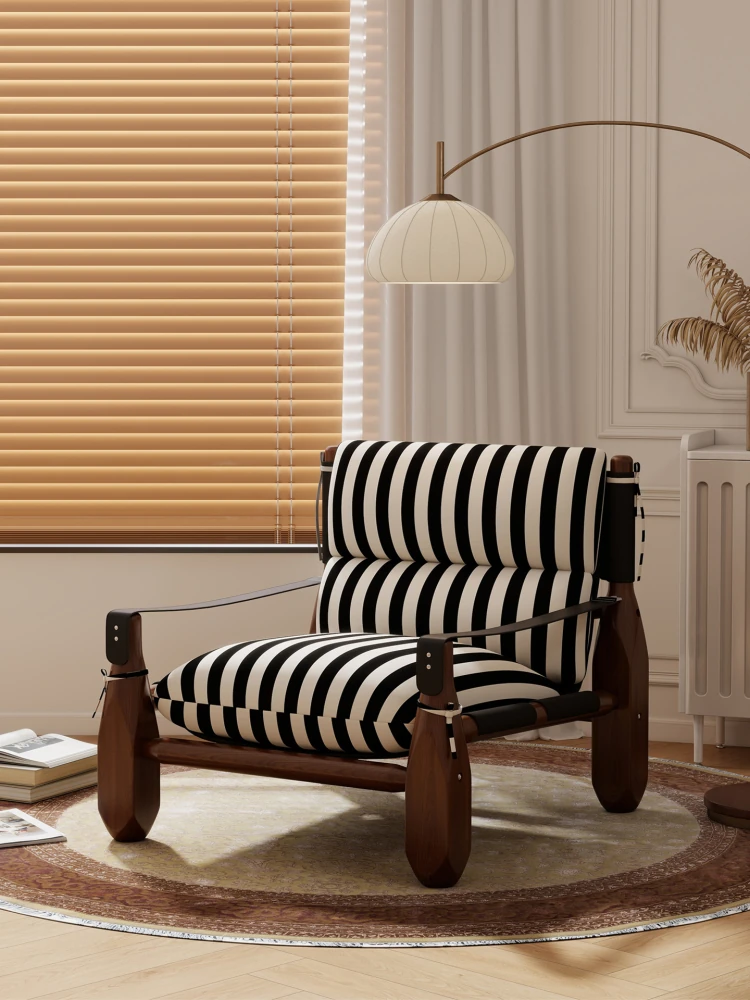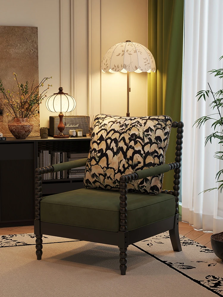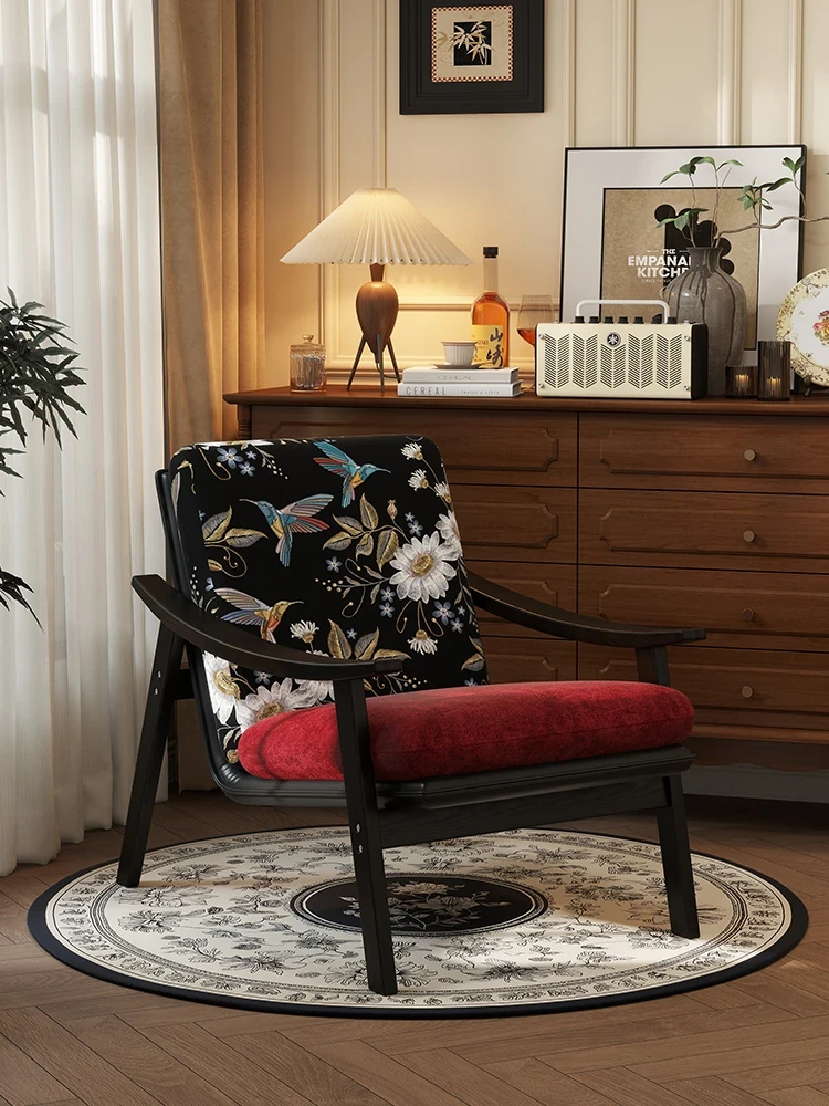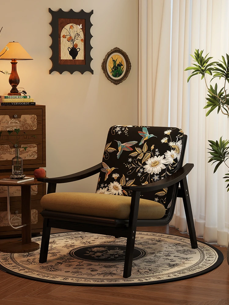 Vintage French Designer Solid Wood Armchair for Living Room and Balcony - Elegant Luxury Single Chair with Retro Charm, Perfect for Bedrooms and Cozy Spaces.