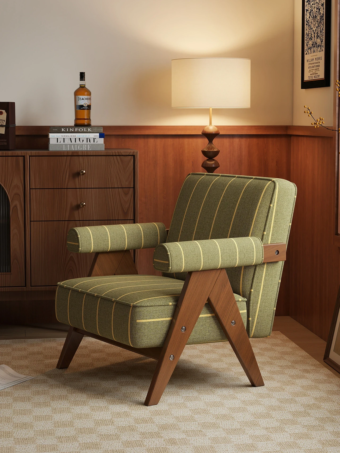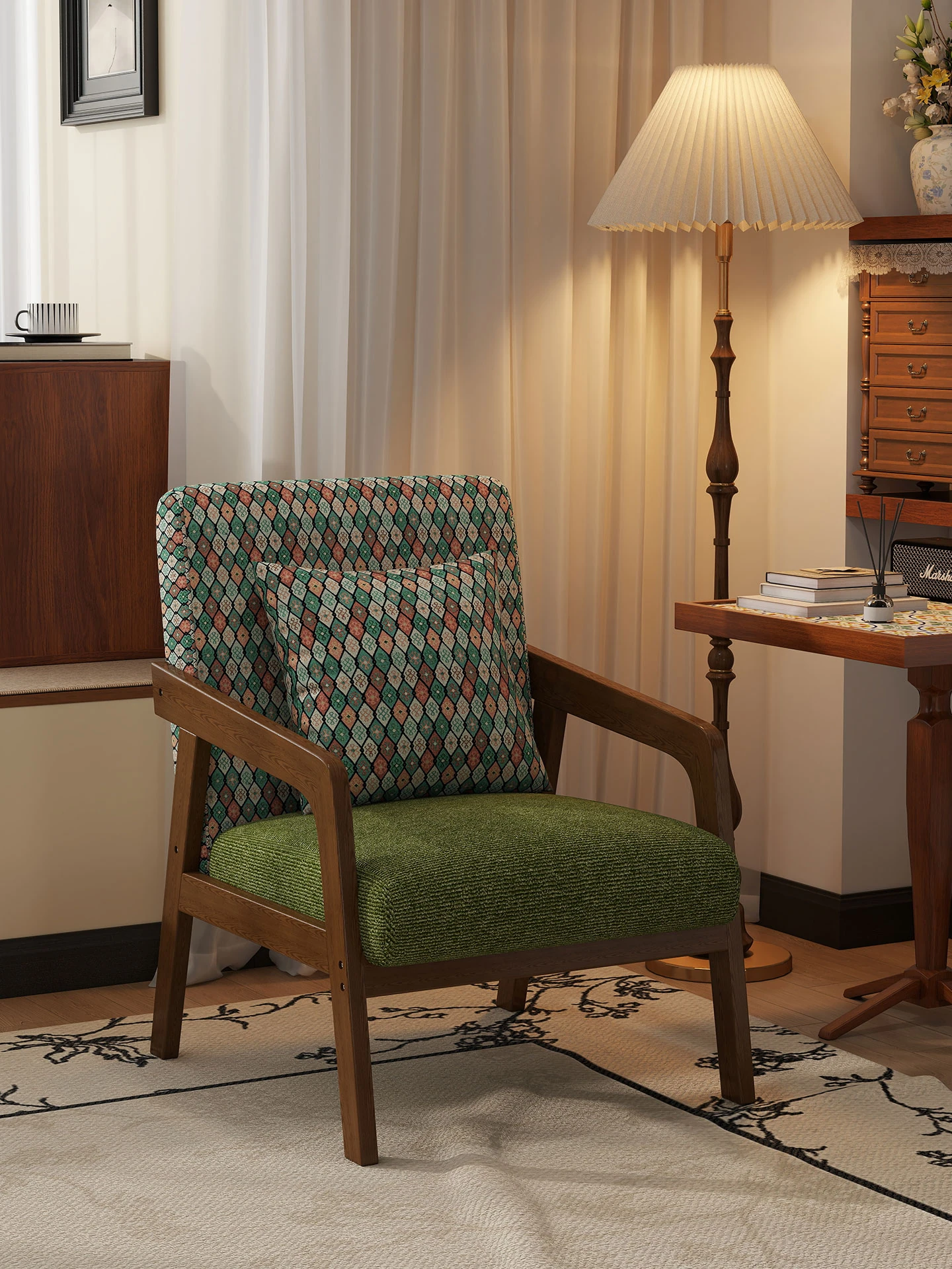 Vintage Solid Wood Single Sofa Chair - Retro Armchair for Living Room, Cozy Reading Nook, Perfect for Study or Lounge Area