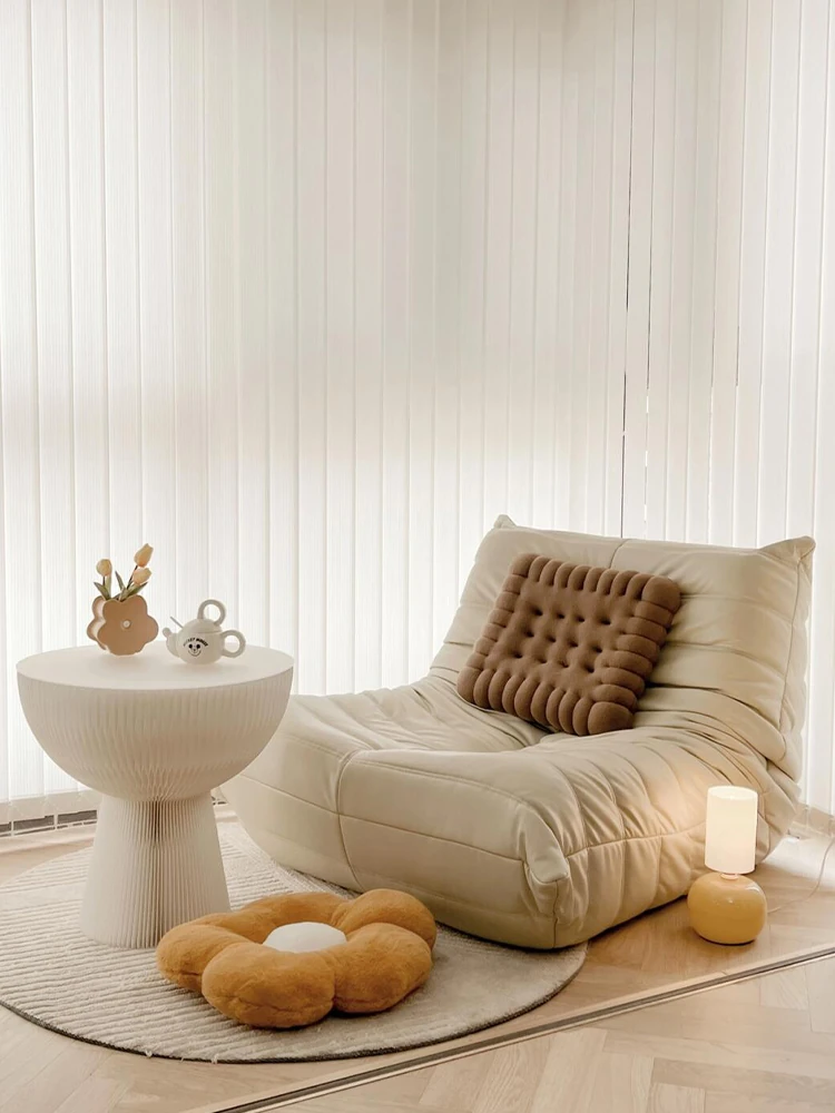 Cozy Caterpillar Cream Sofa Chair - Trendy Lazy Sofa for Balcony and Bedroom, Perfect for Napping and Relaxing, Compact Single Sofa for Ultimate Comfort