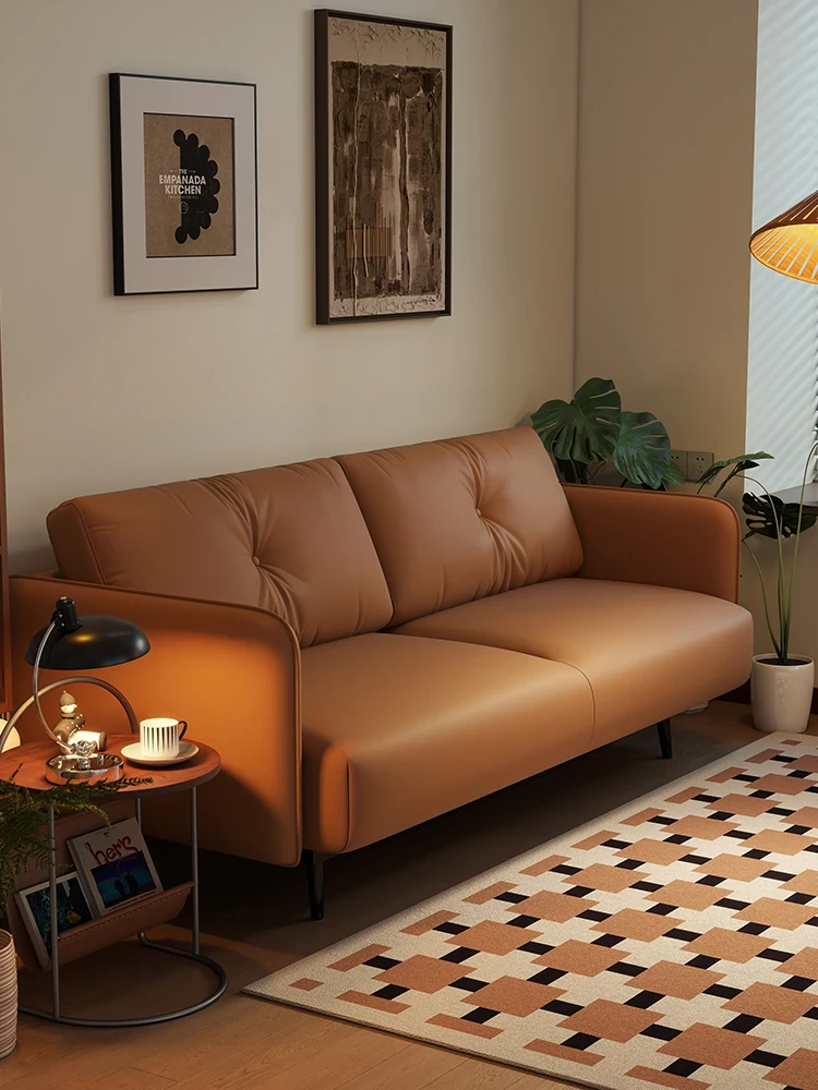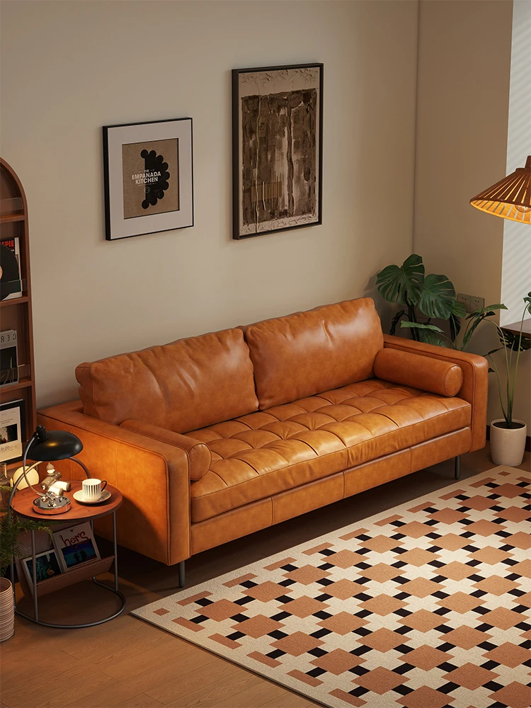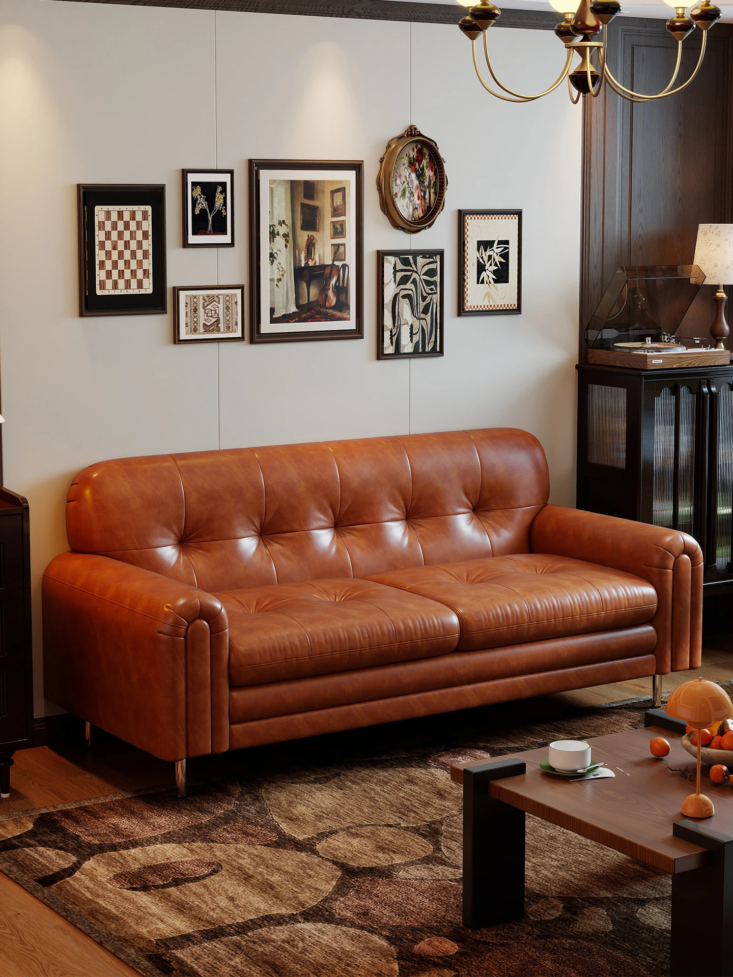 Vintage Luxury Faux Leather Sofa for Small Apartments and Offices – Stylish Two-Three Seater for Cozy Living Rooms, Featuring Retro Waxed Leather Design