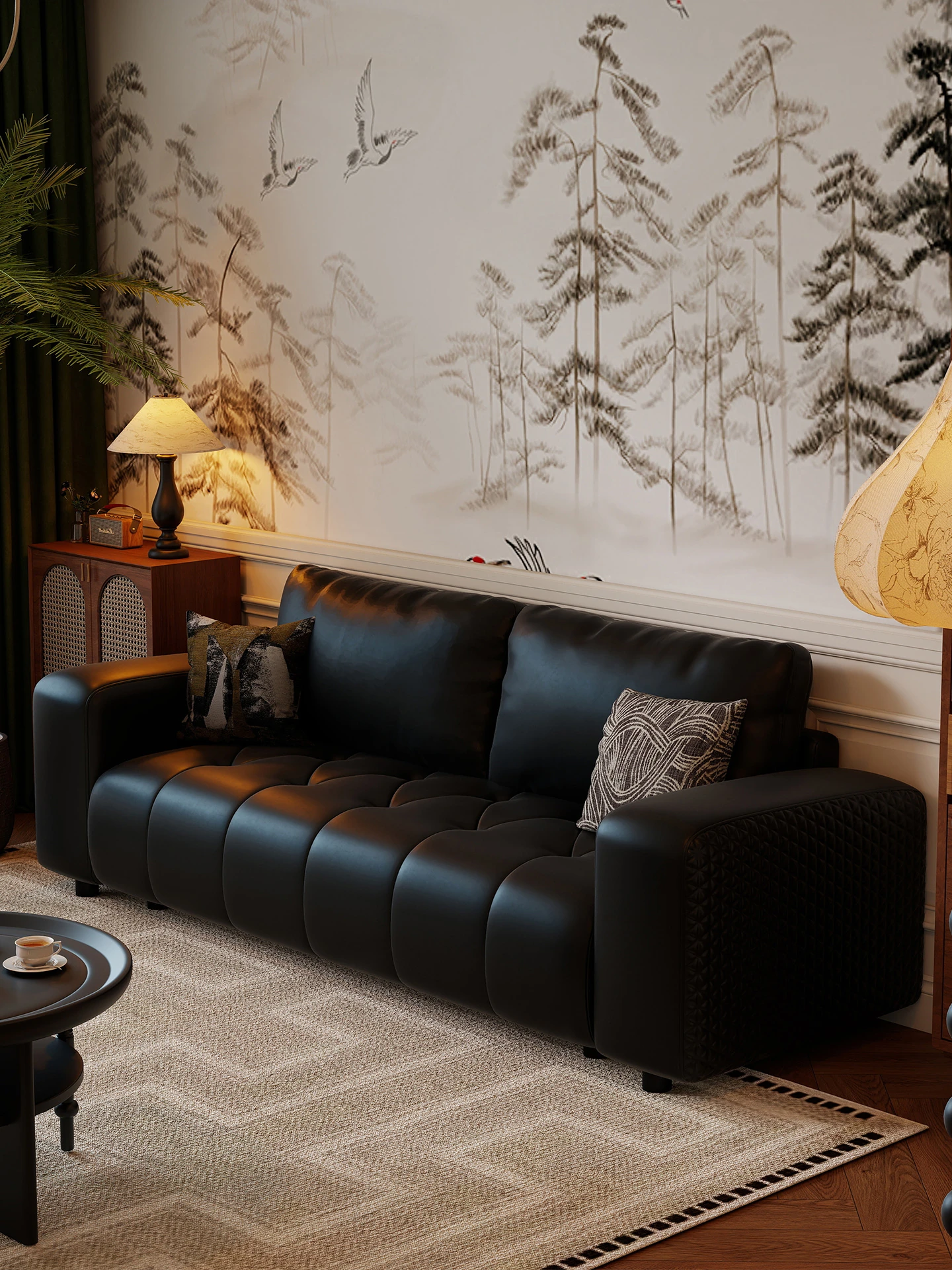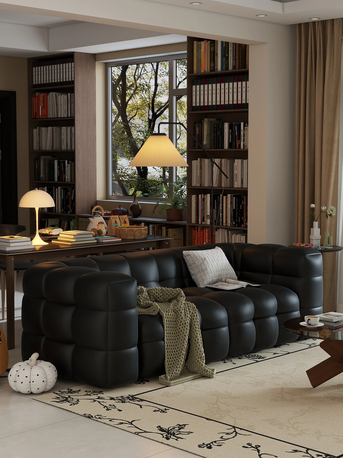Retro Italian Leather Sofa for Small Spaces - Minimalist Design for Apartments, Double and Triple Seat Options in Stylish Black
