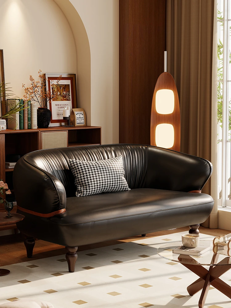 Vintage Style Black Sofa for Small Apartments - Retro Brown Leather Loveseat with Waxed Leather Finish, Perfect for Cozy Living Rooms