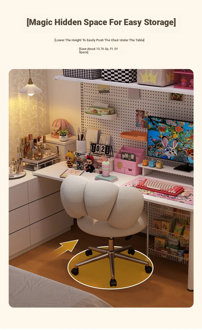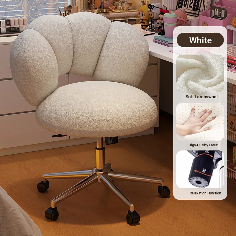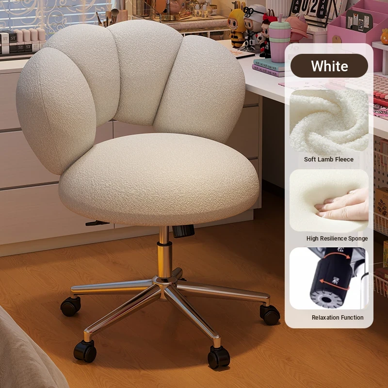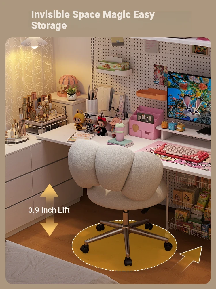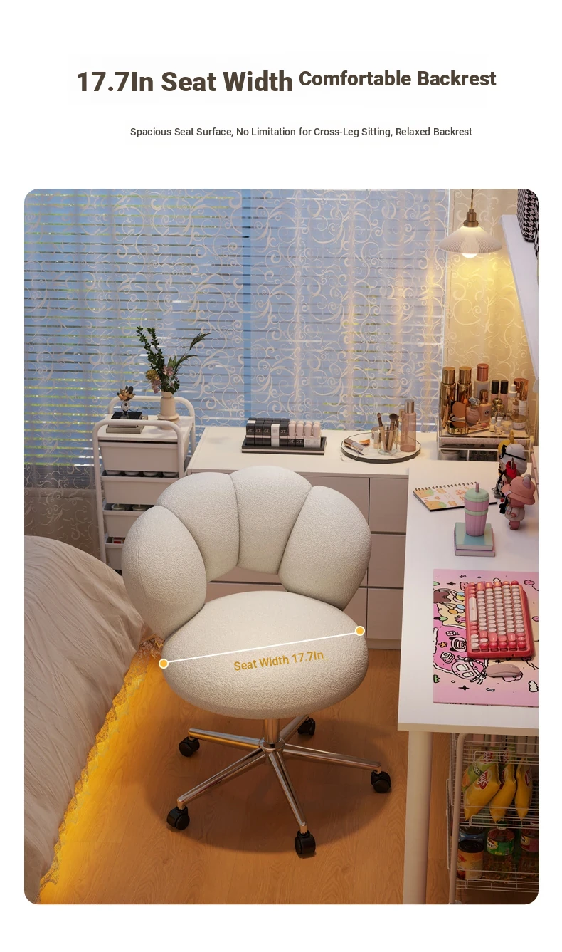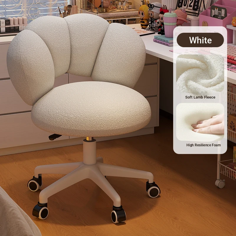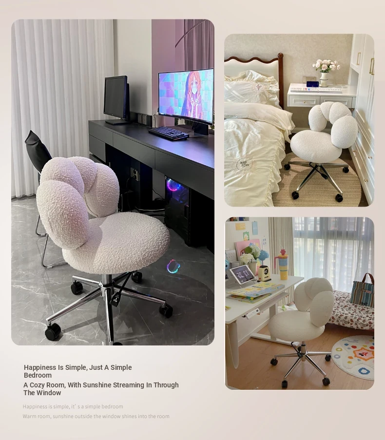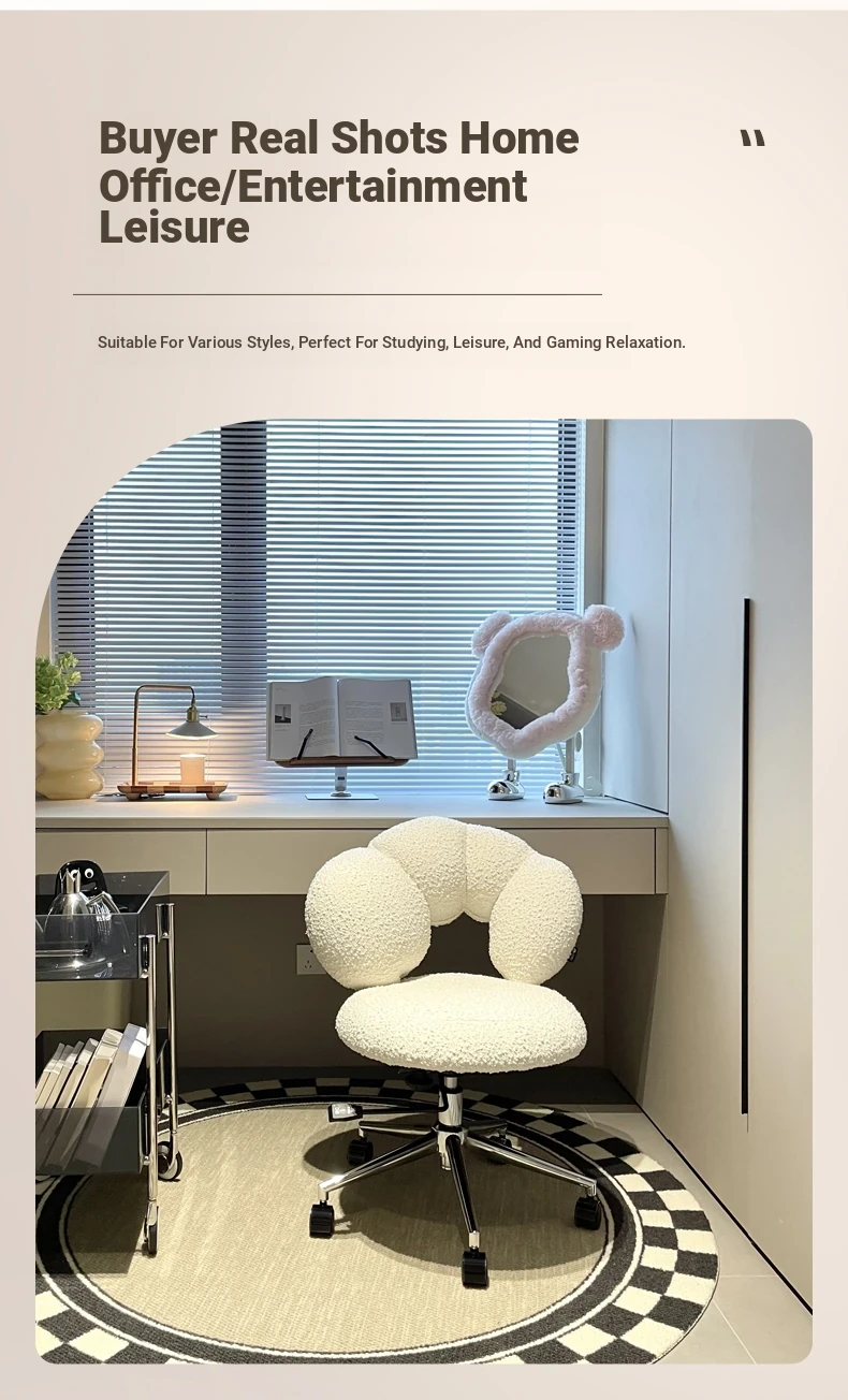 Creamy Rotating Makeup Stool - Stylish Lambswool Vanity Chair for Small Bedrooms, Perfect for Young Women, Ideal for Desks and Computer Use