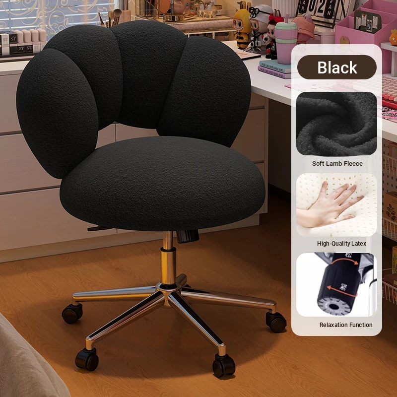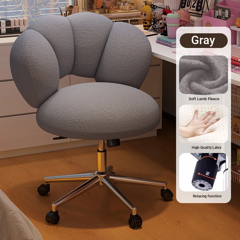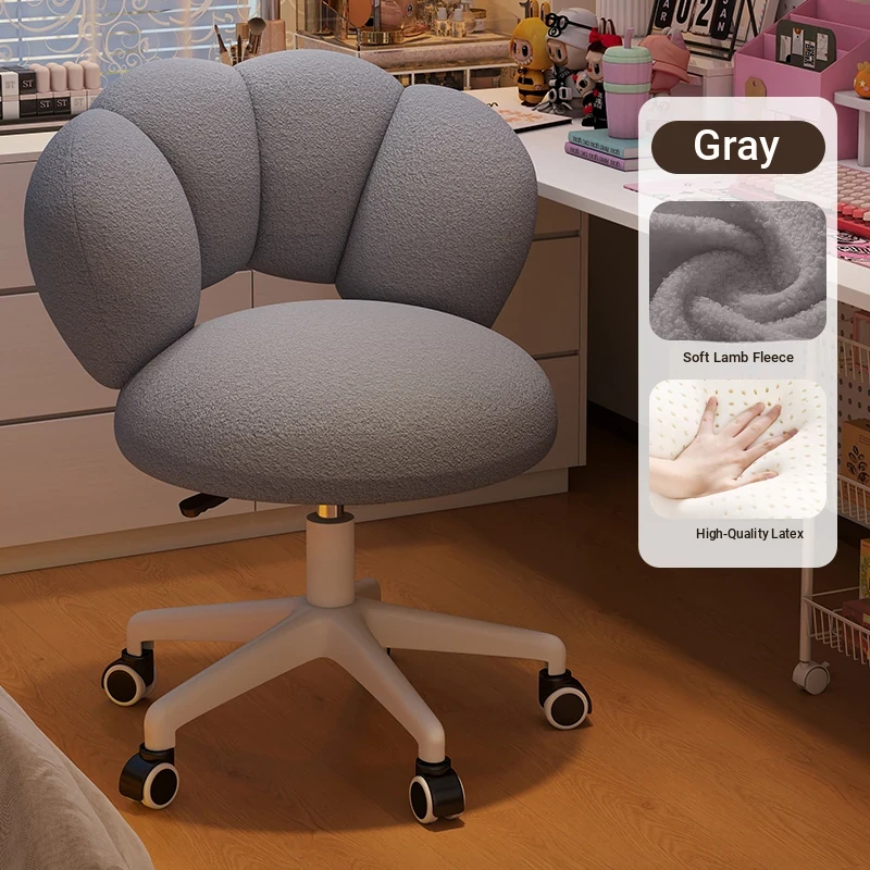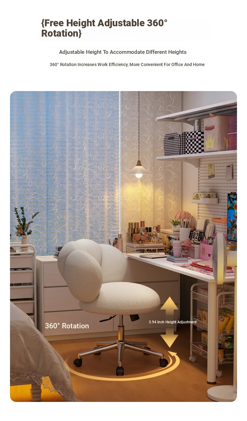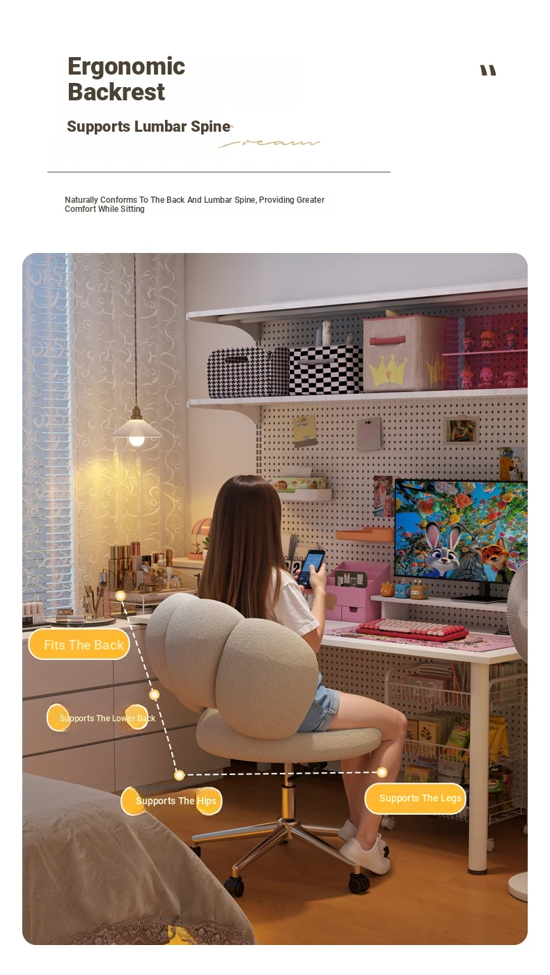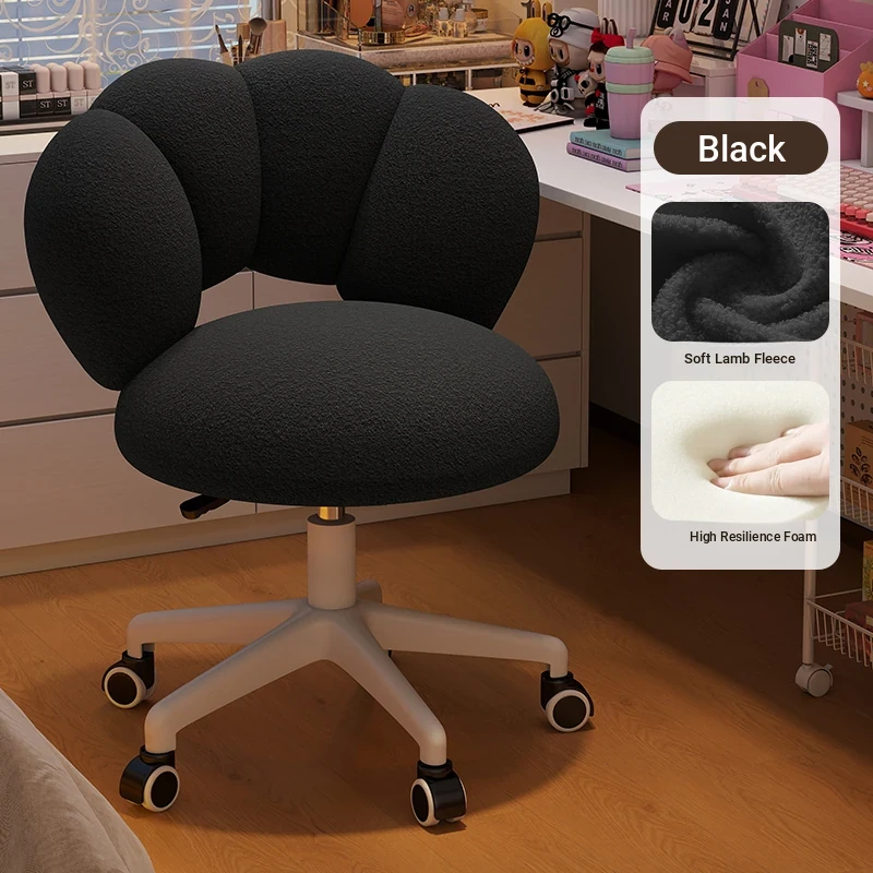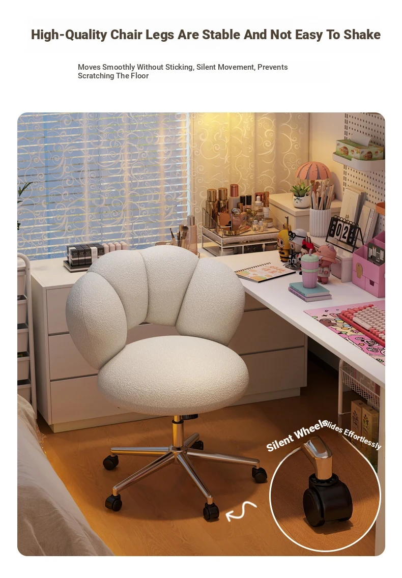 Creamy Rotating Makeup Stool - Stylish Lambswool Vanity Chair for Small Bedrooms, Perfect for Young Women, Ideal for Desks and Computer Use