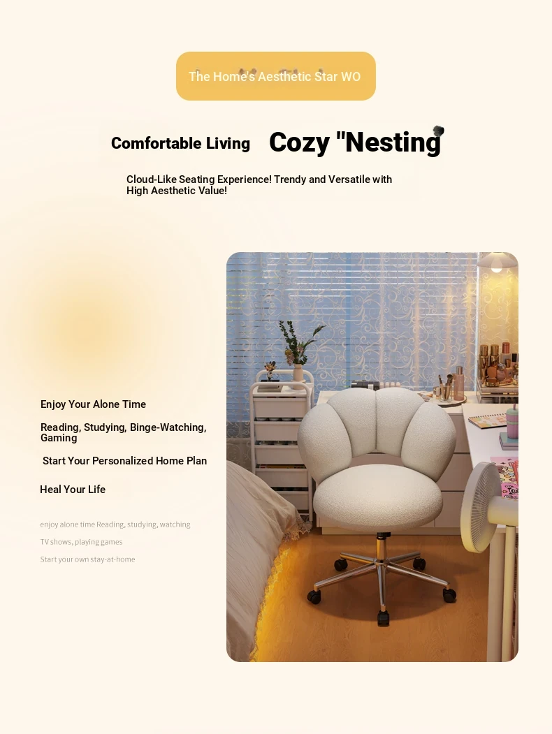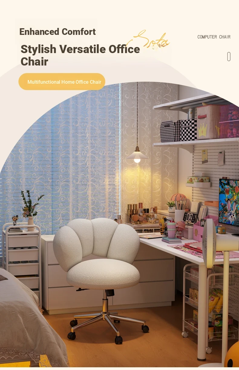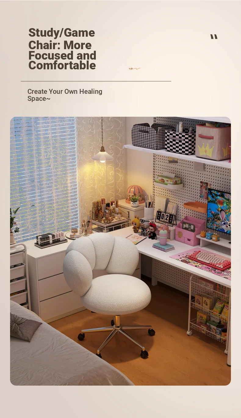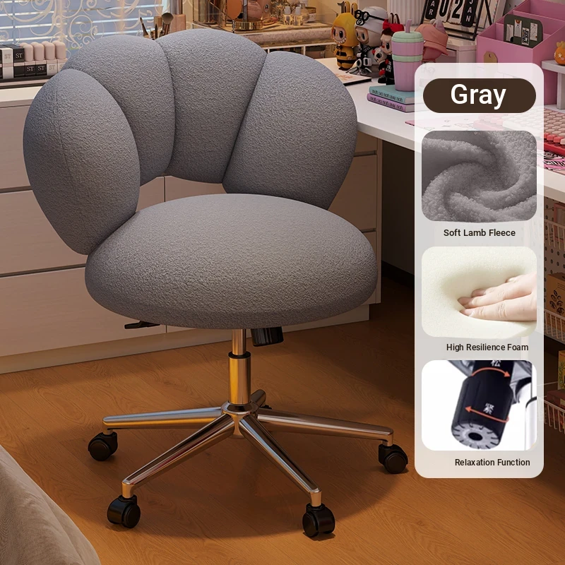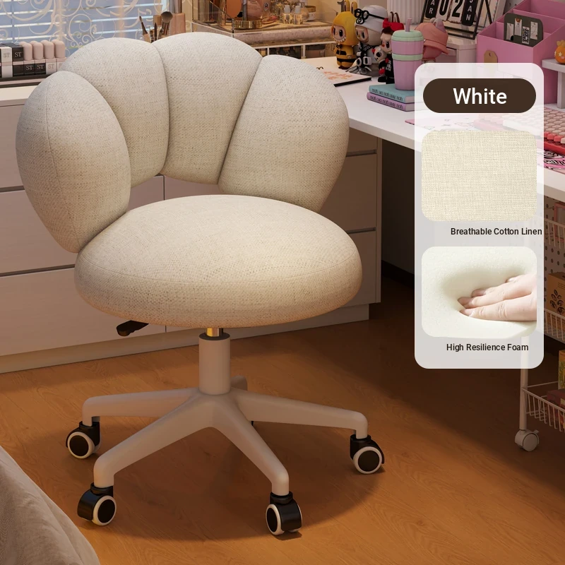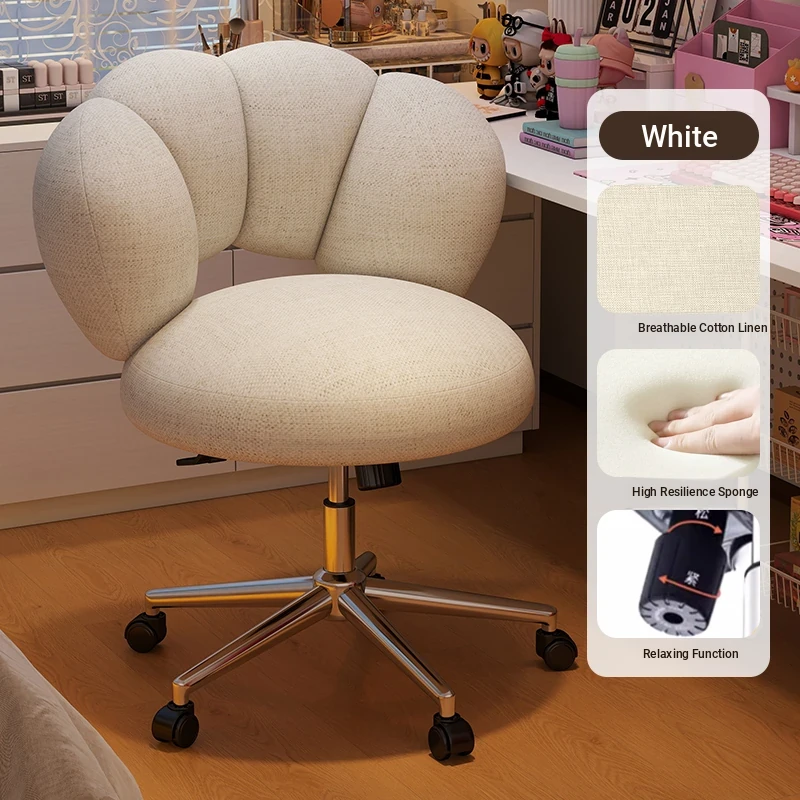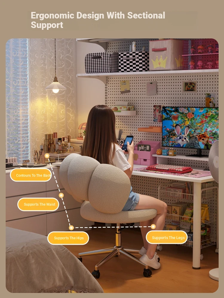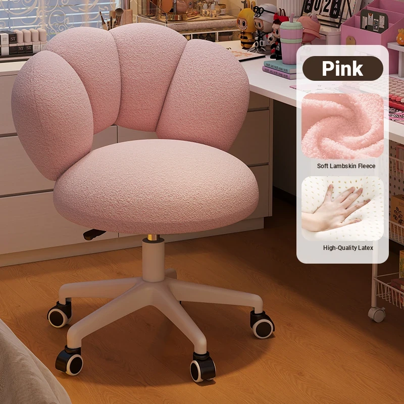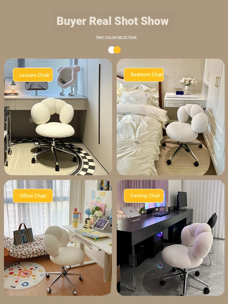 Creamy Rotating Makeup Stool - Stylish Lambswool Vanity Chair for Small Bedrooms, Perfect for Young Women, Ideal for Desks and Computer Use