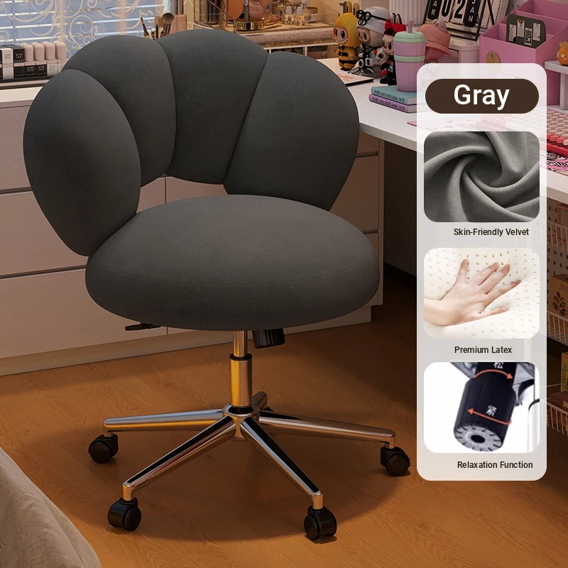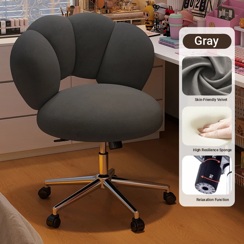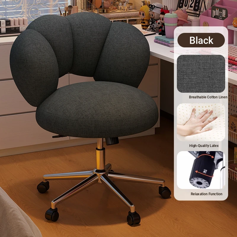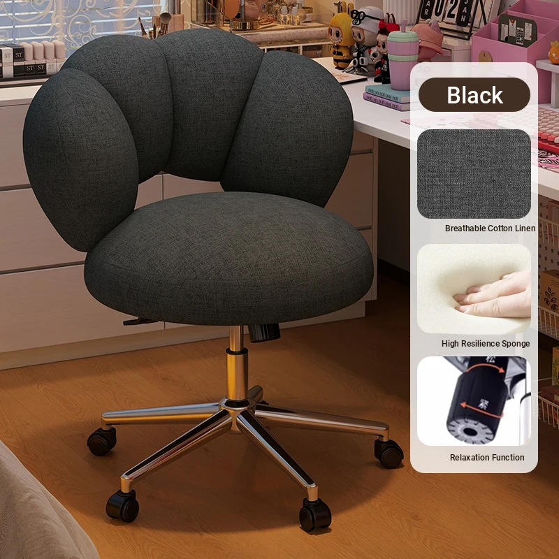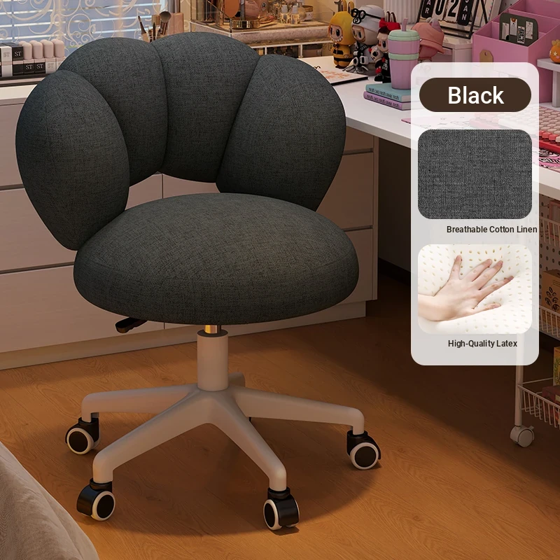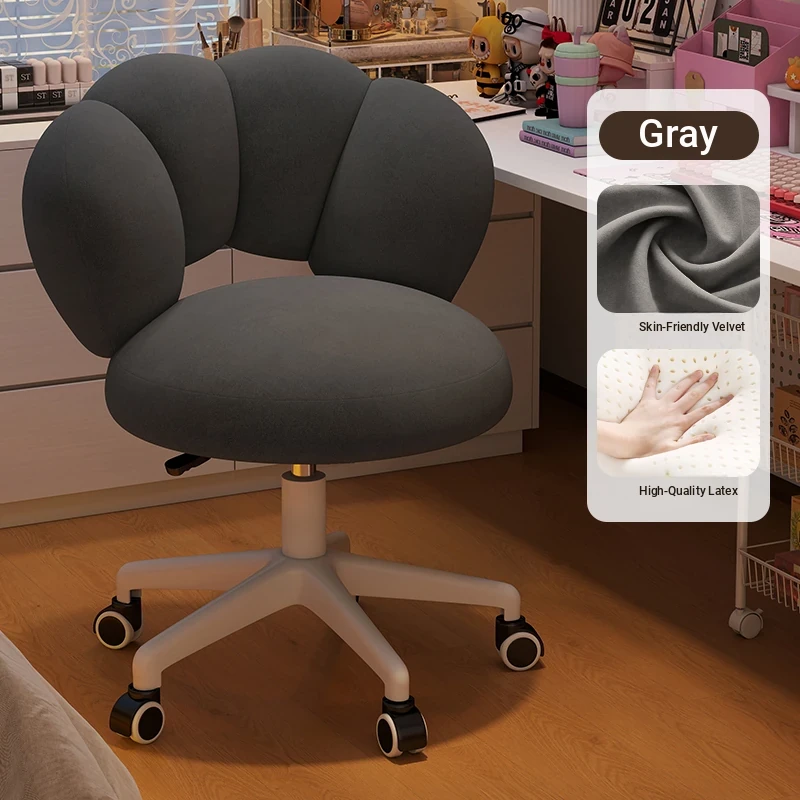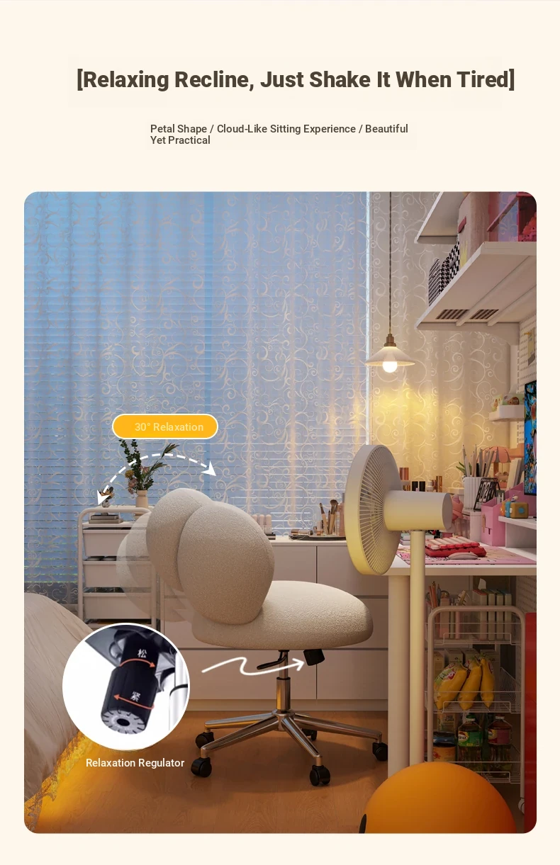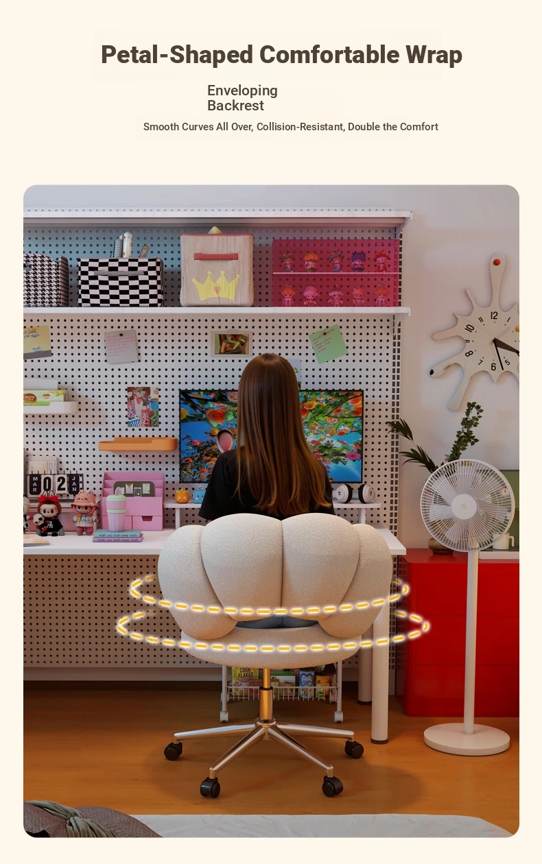 Creamy Rotating Makeup Stool - Stylish Lambswool Vanity Chair for Small Bedrooms, Perfect for Young Women, Ideal for Desks and Computer Use