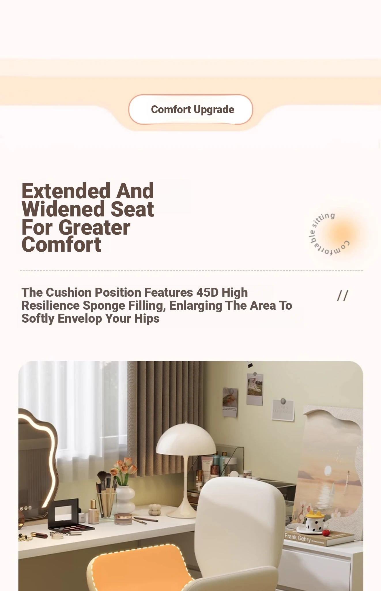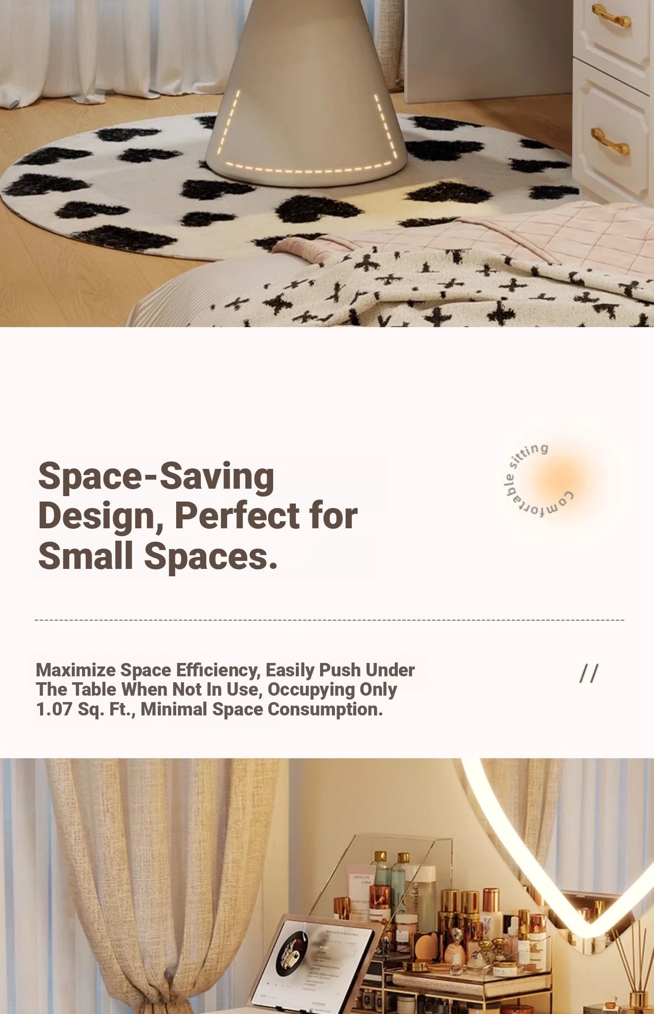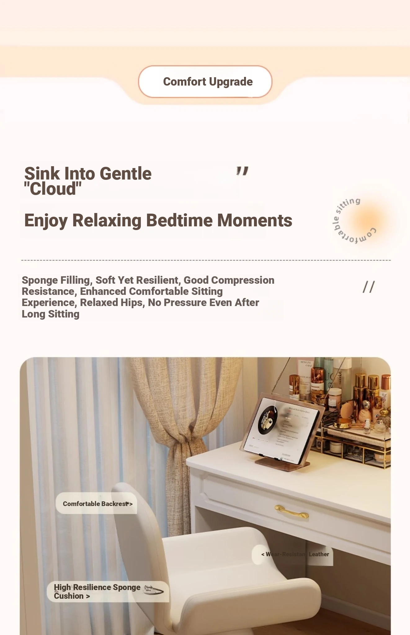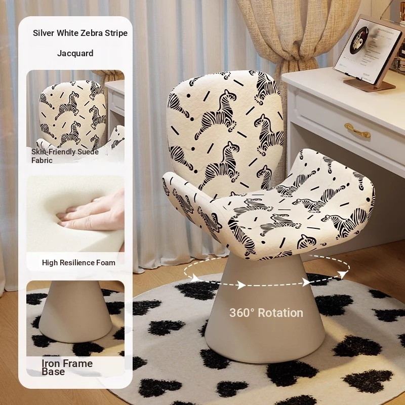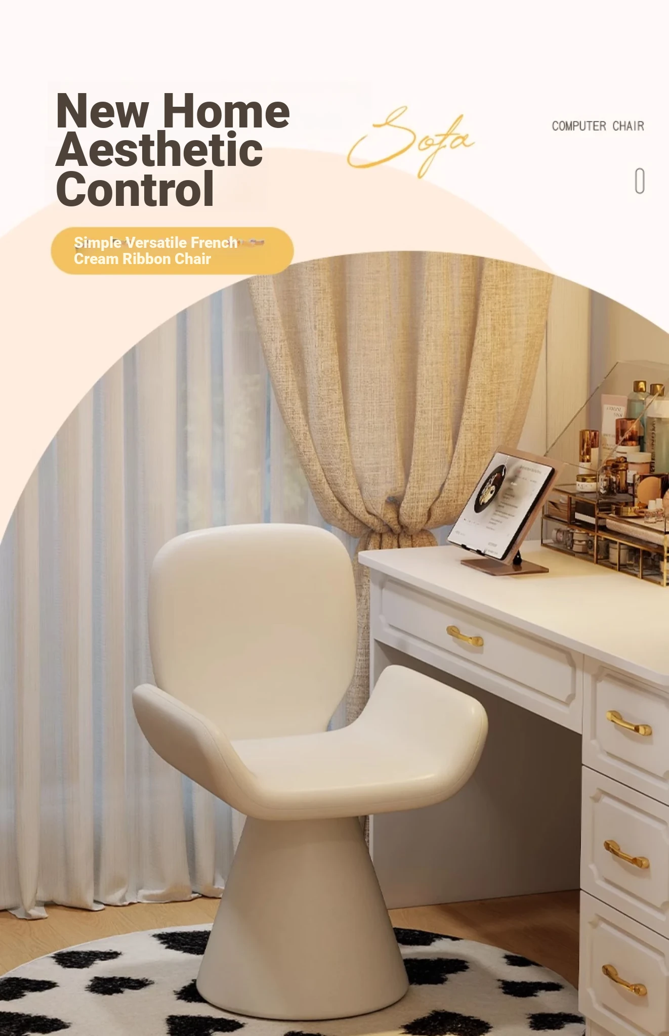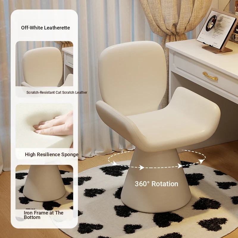 Elegant Cream Vanity Stool for Women - Rotating Makeup Chair Perfect for Bedrooms and Nail Art, Combining Luxury with Modern Design