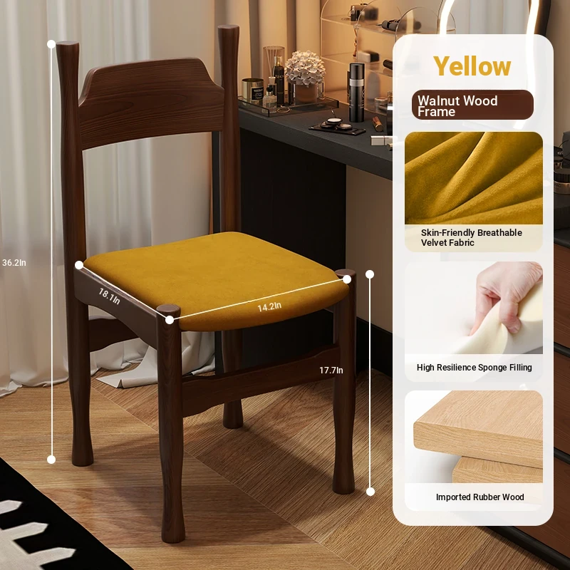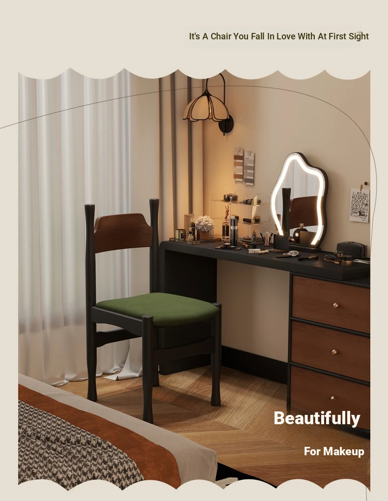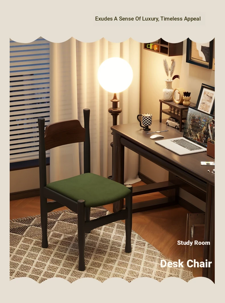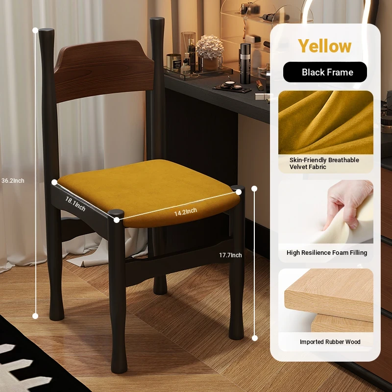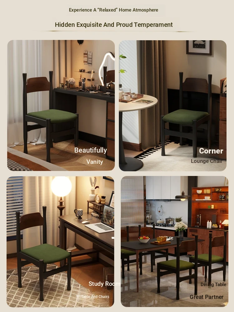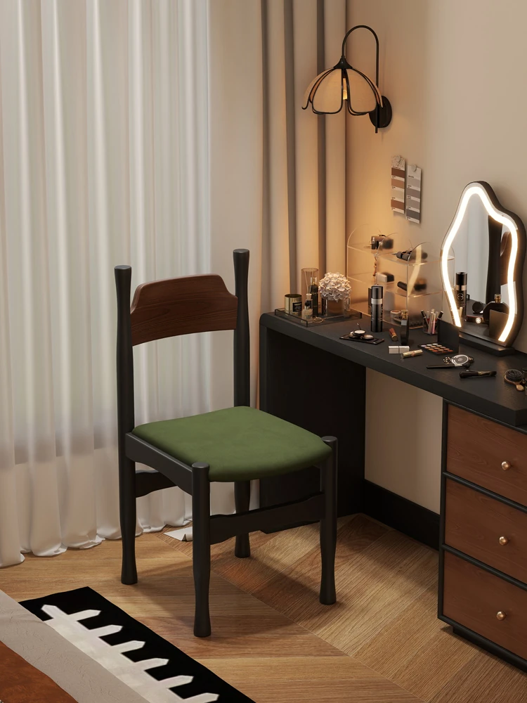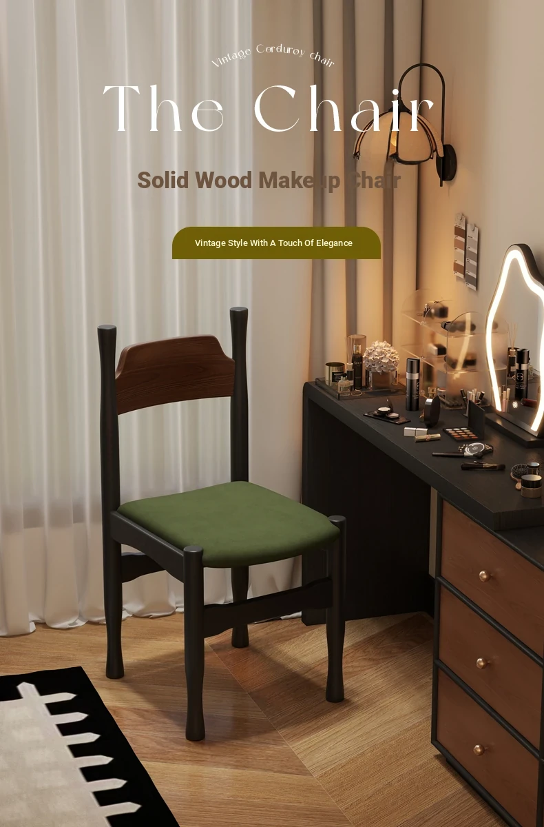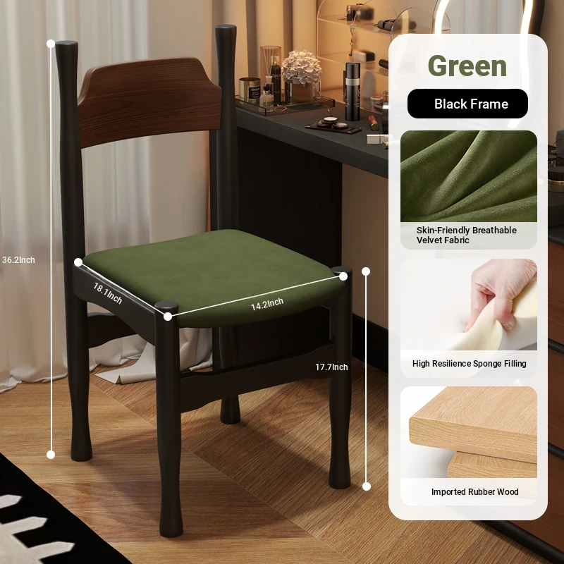 Elegant French Vintage Solid Wood Vanity Stool and Desk Chair with High Backrest - Stylish Green Upholstered Furniture Perfect for Makeup and Study
