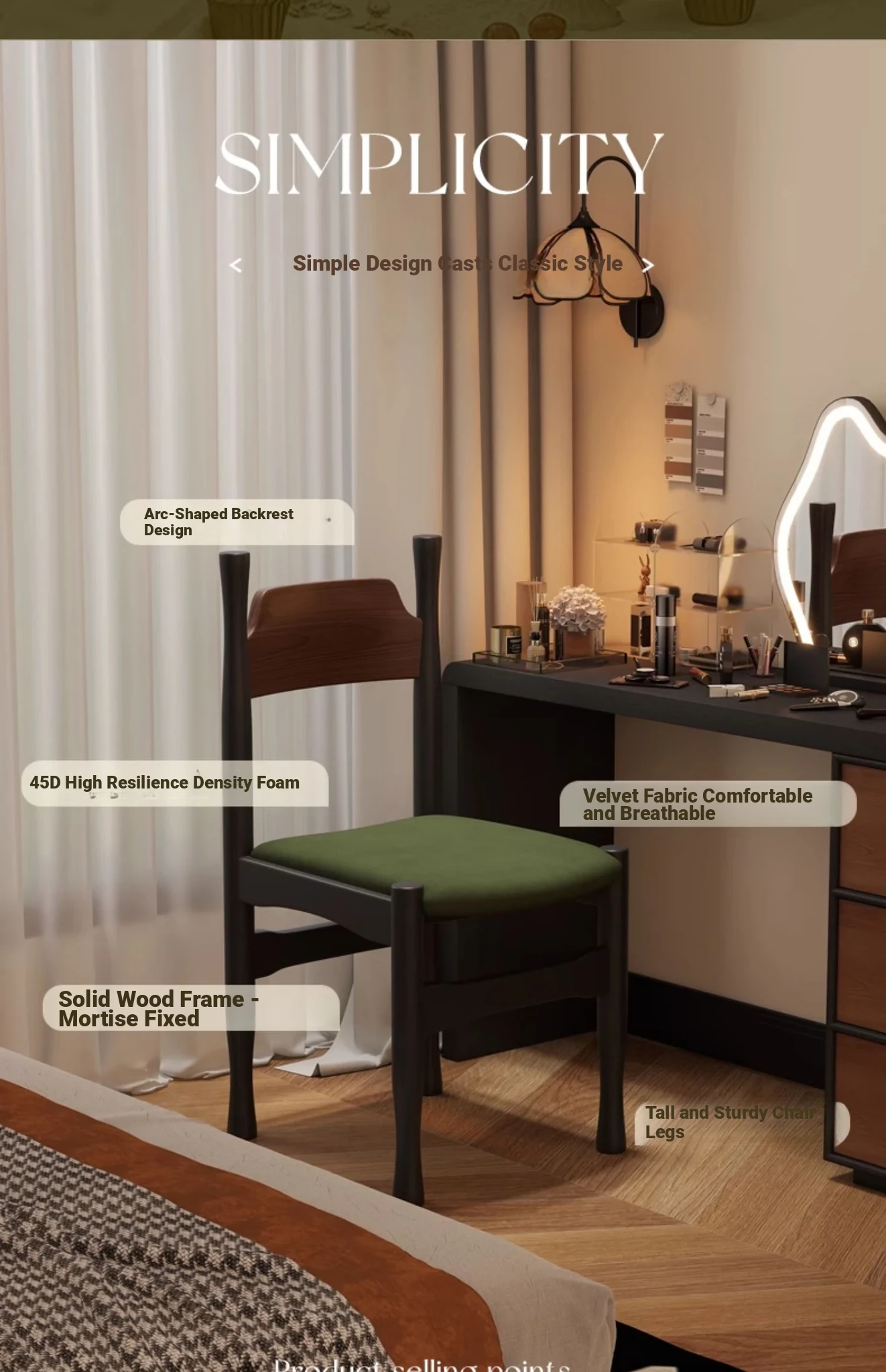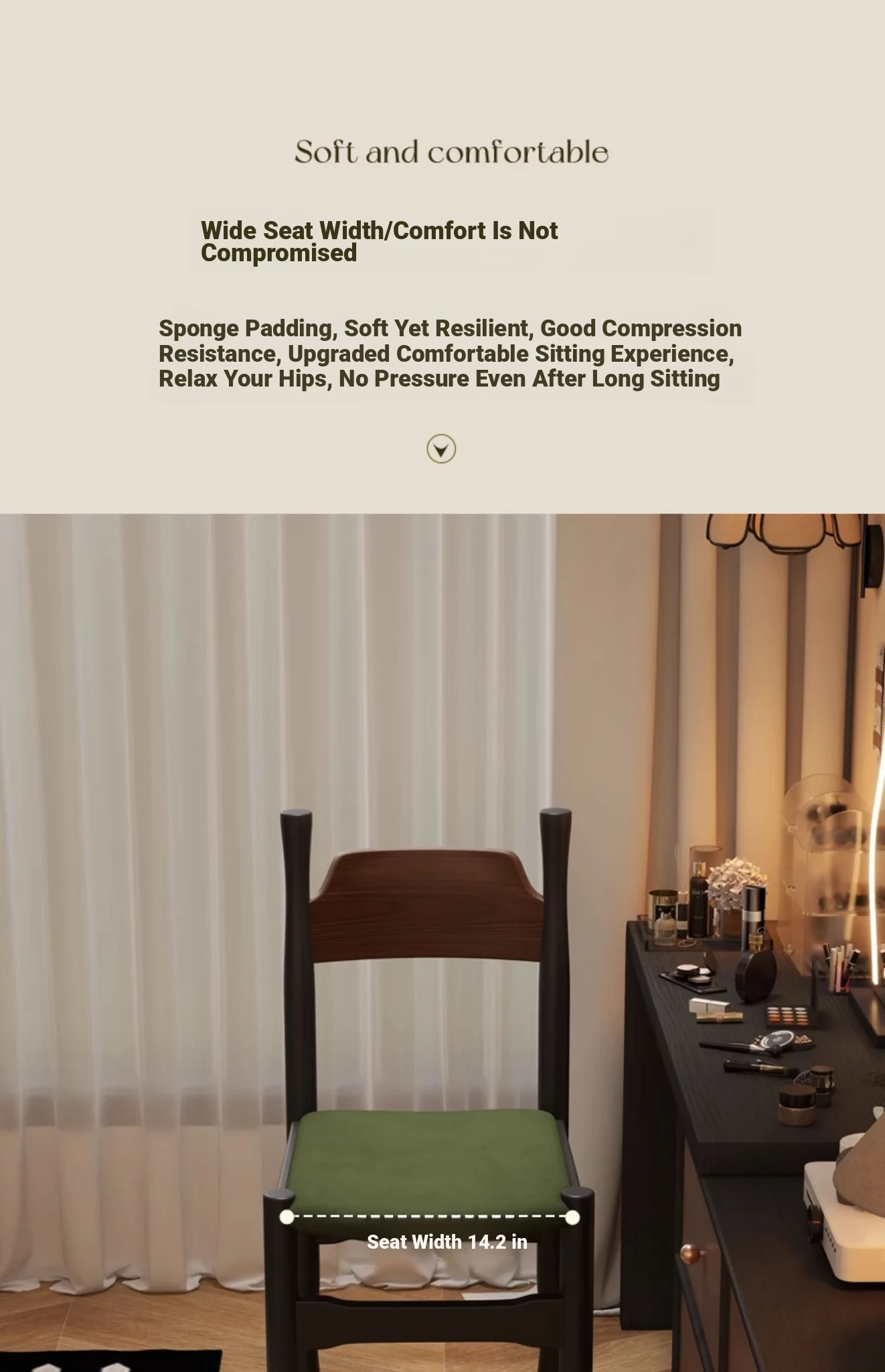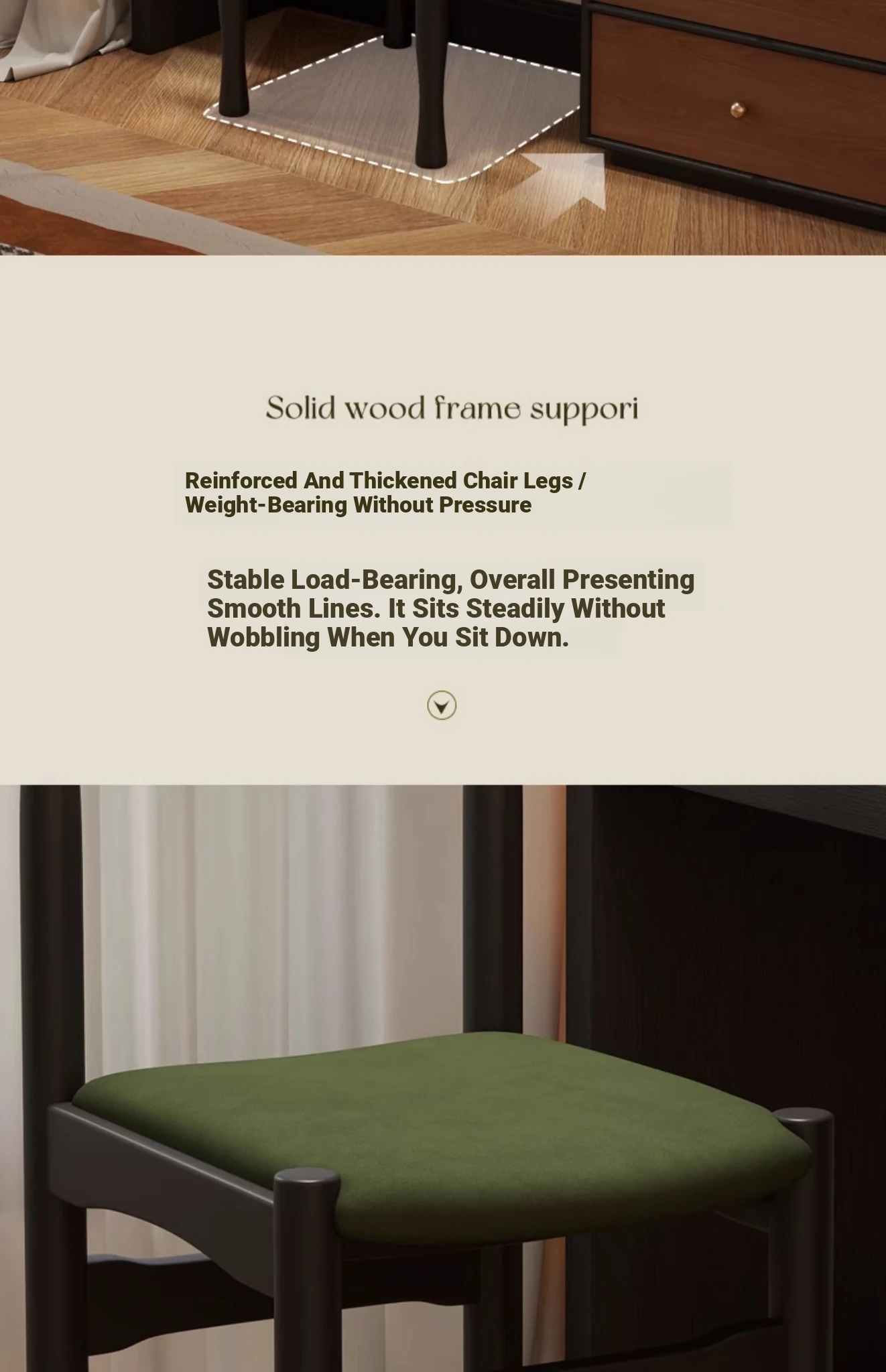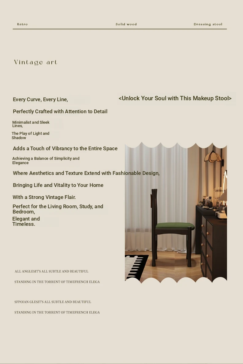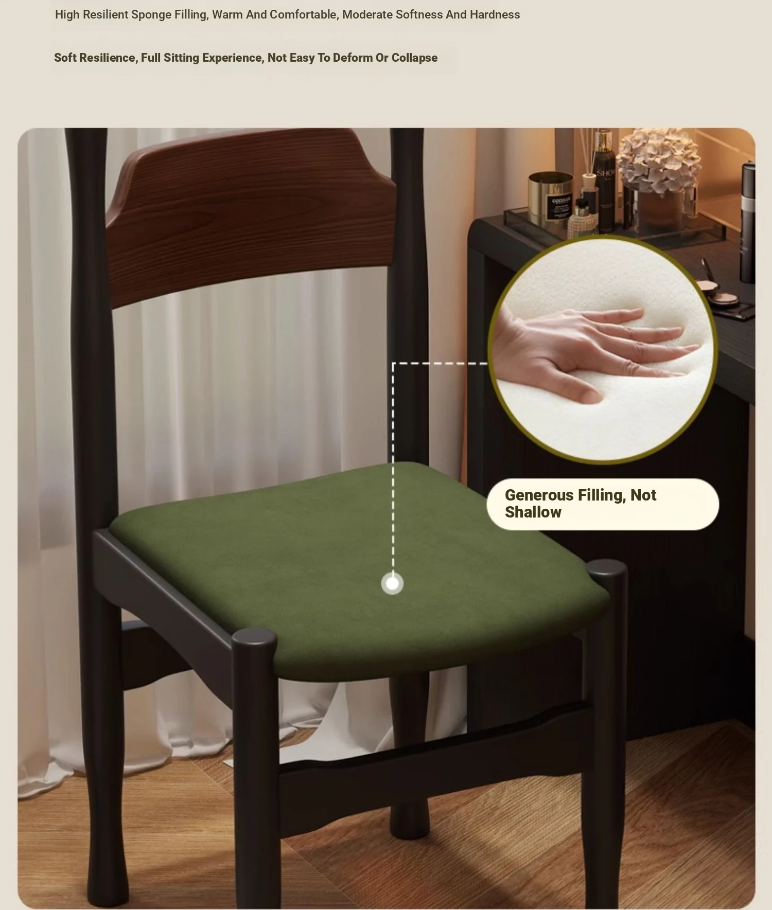 Elegant French Vintage Solid Wood Vanity Stool and Desk Chair with High Backrest - Stylish Green Upholstered Furniture Perfect for Makeup and Study