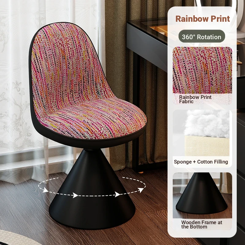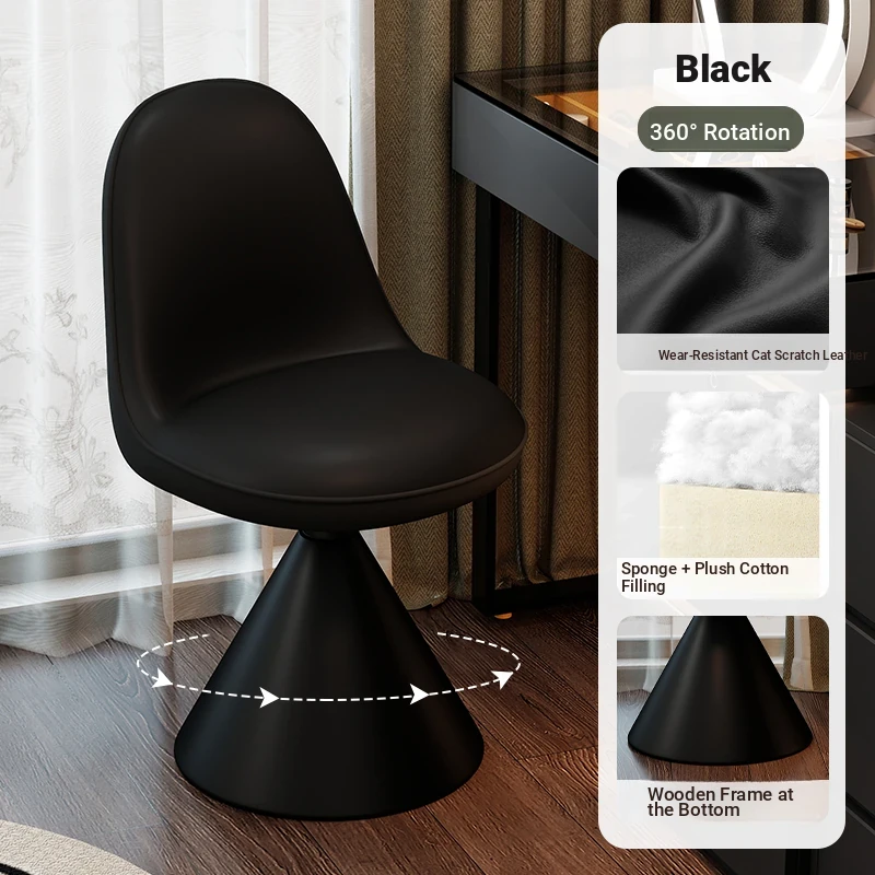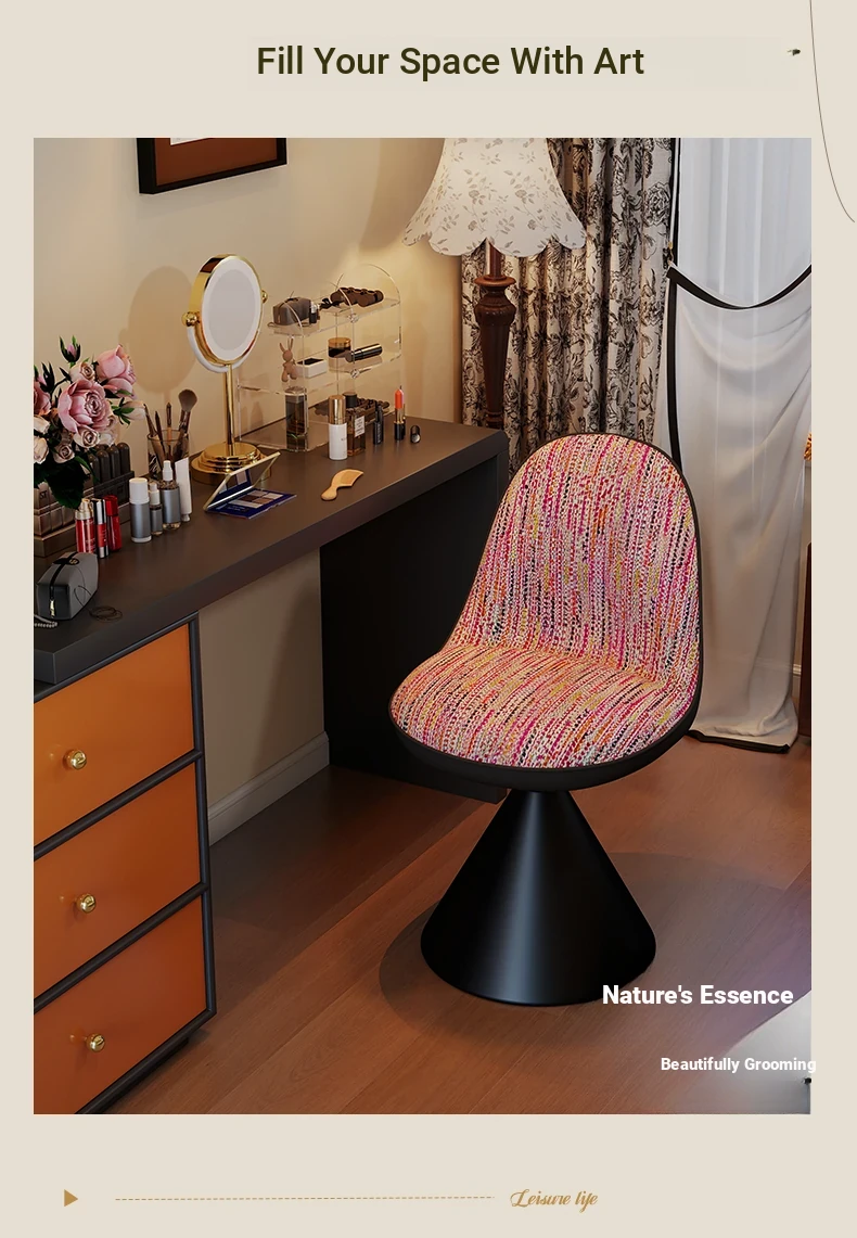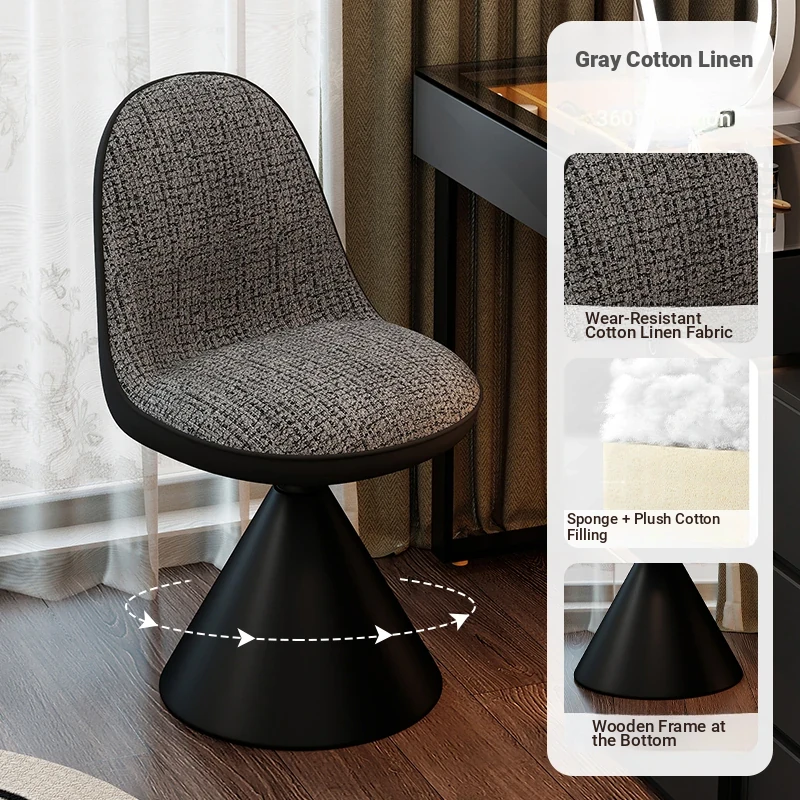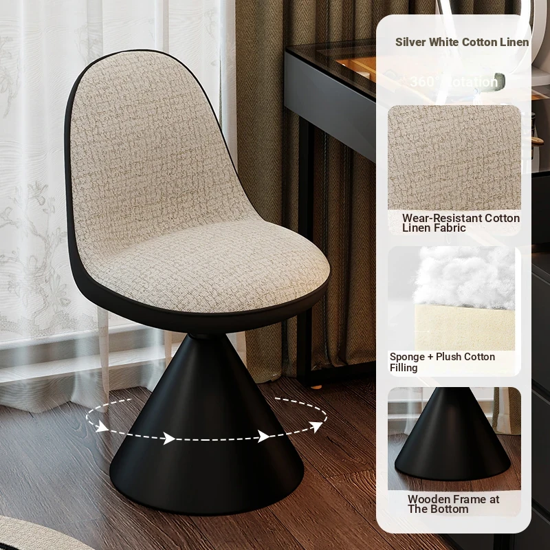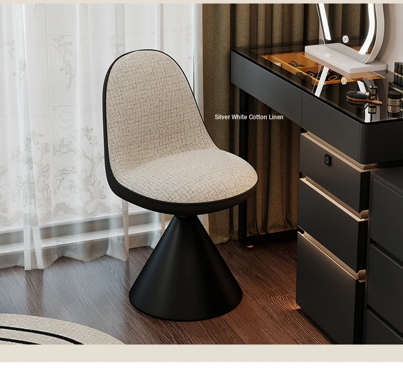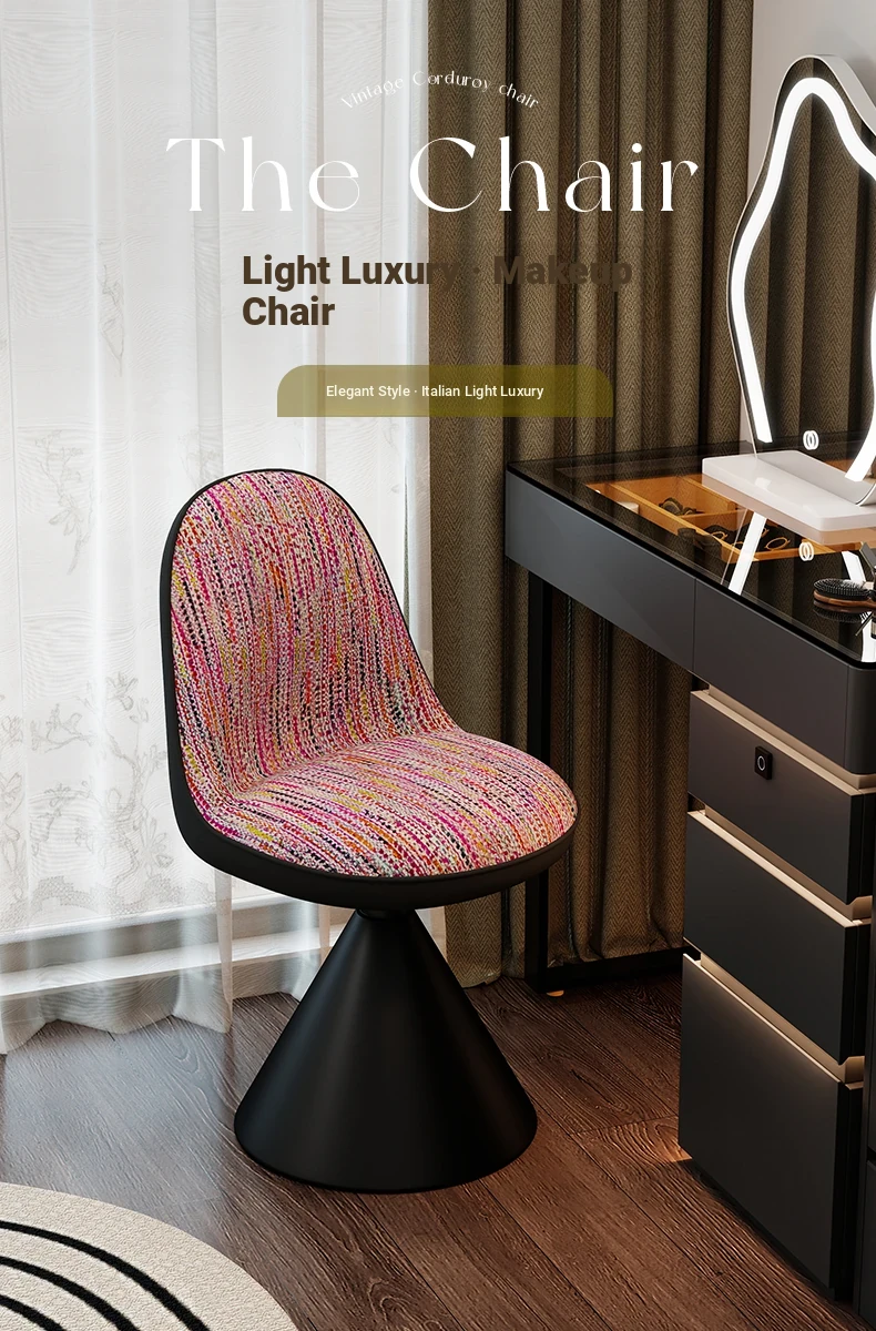 Elegant Italian-Style Makeup Chair for Bedroom – Luxurious Rotatable Vanity Stool with Backrest, Chic Small-Style Robi Chair for Glamorous Makeup Experience