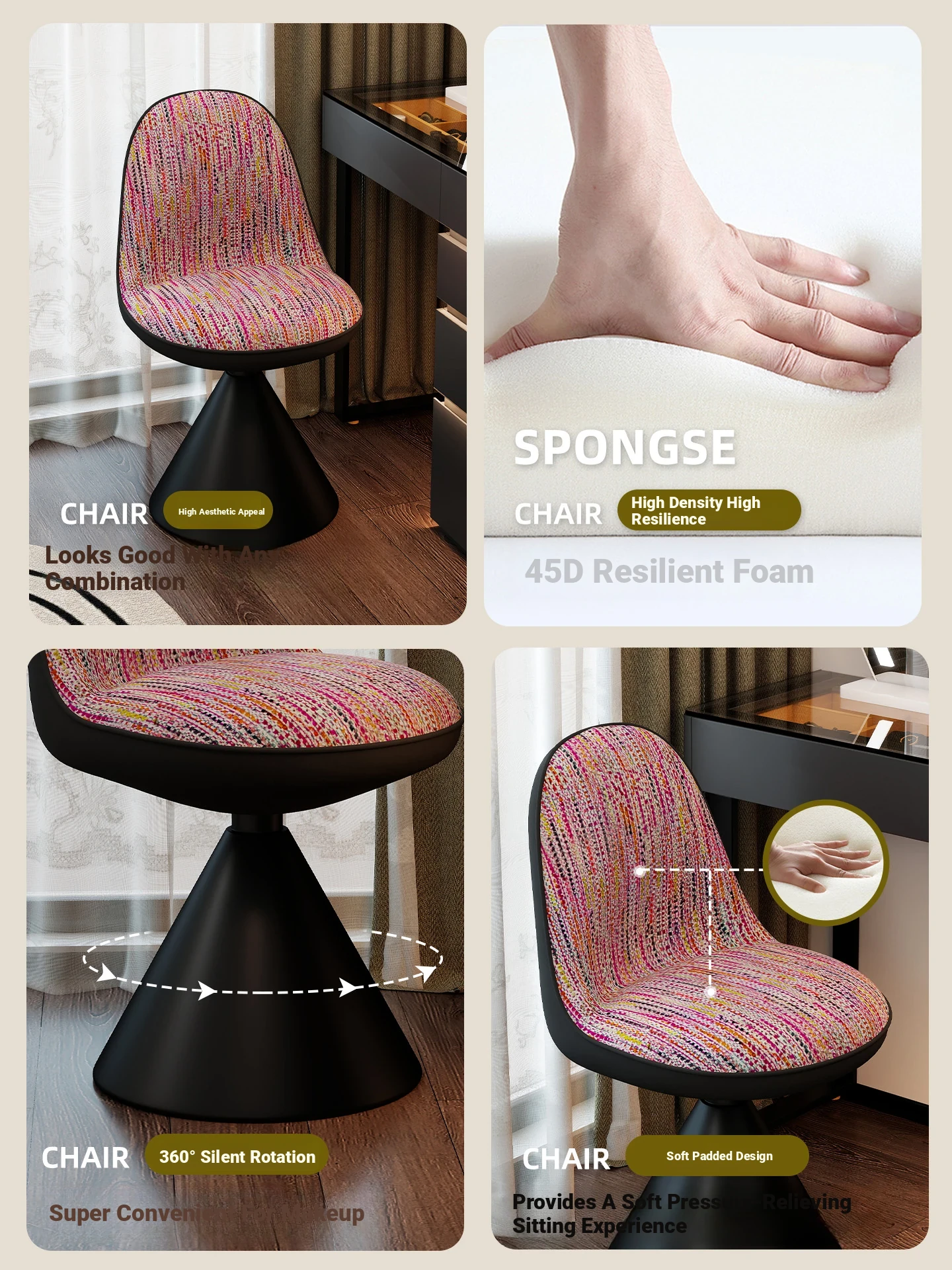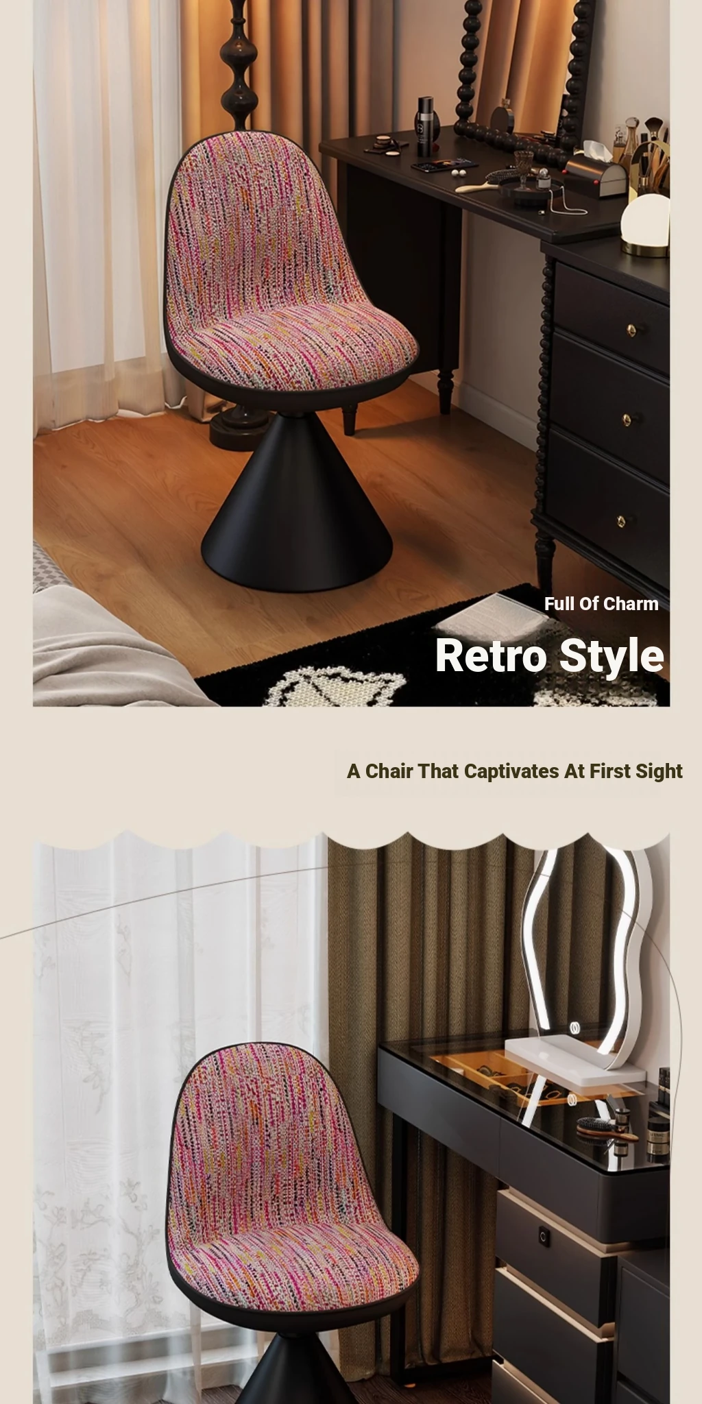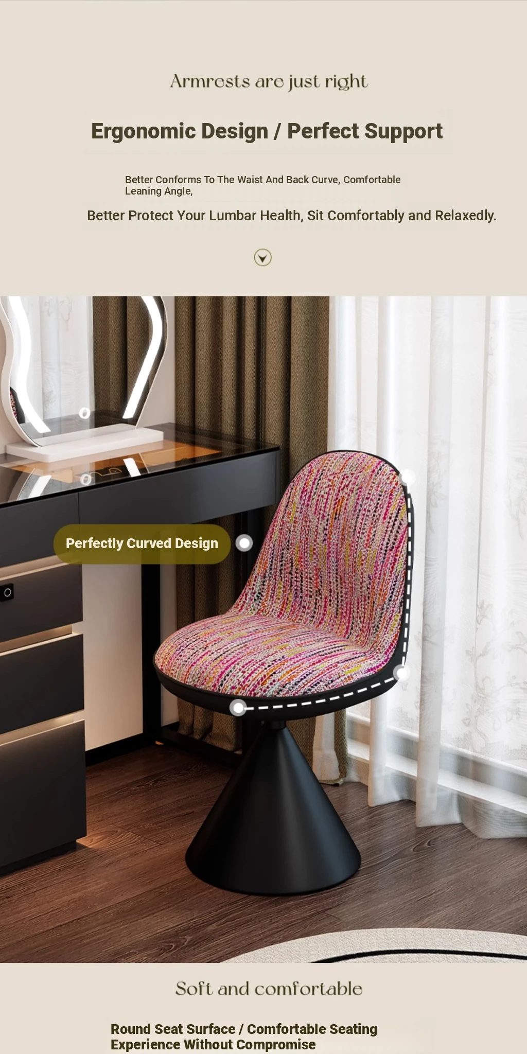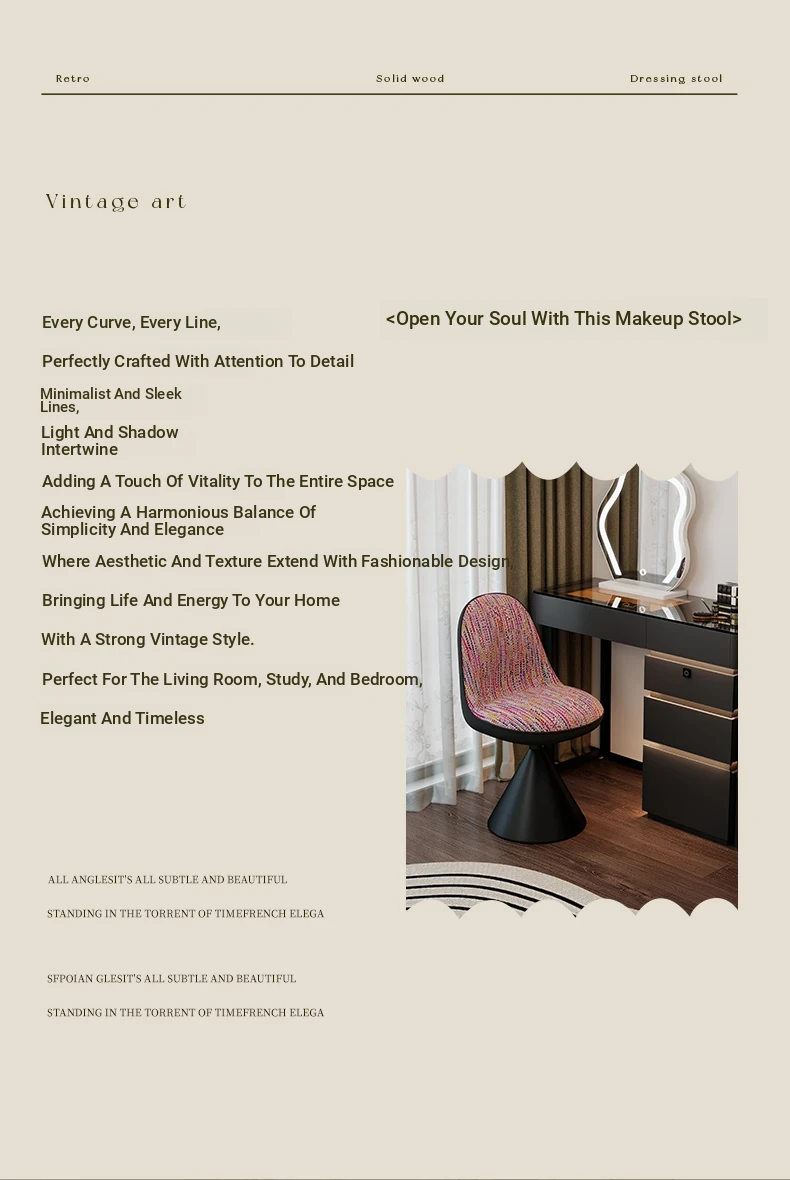 Elegant Italian-Style Makeup Chair for Bedroom – Luxurious Rotatable Vanity Stool with Backrest, Chic Small-Style Robi Chair for Glamorous Makeup Experience