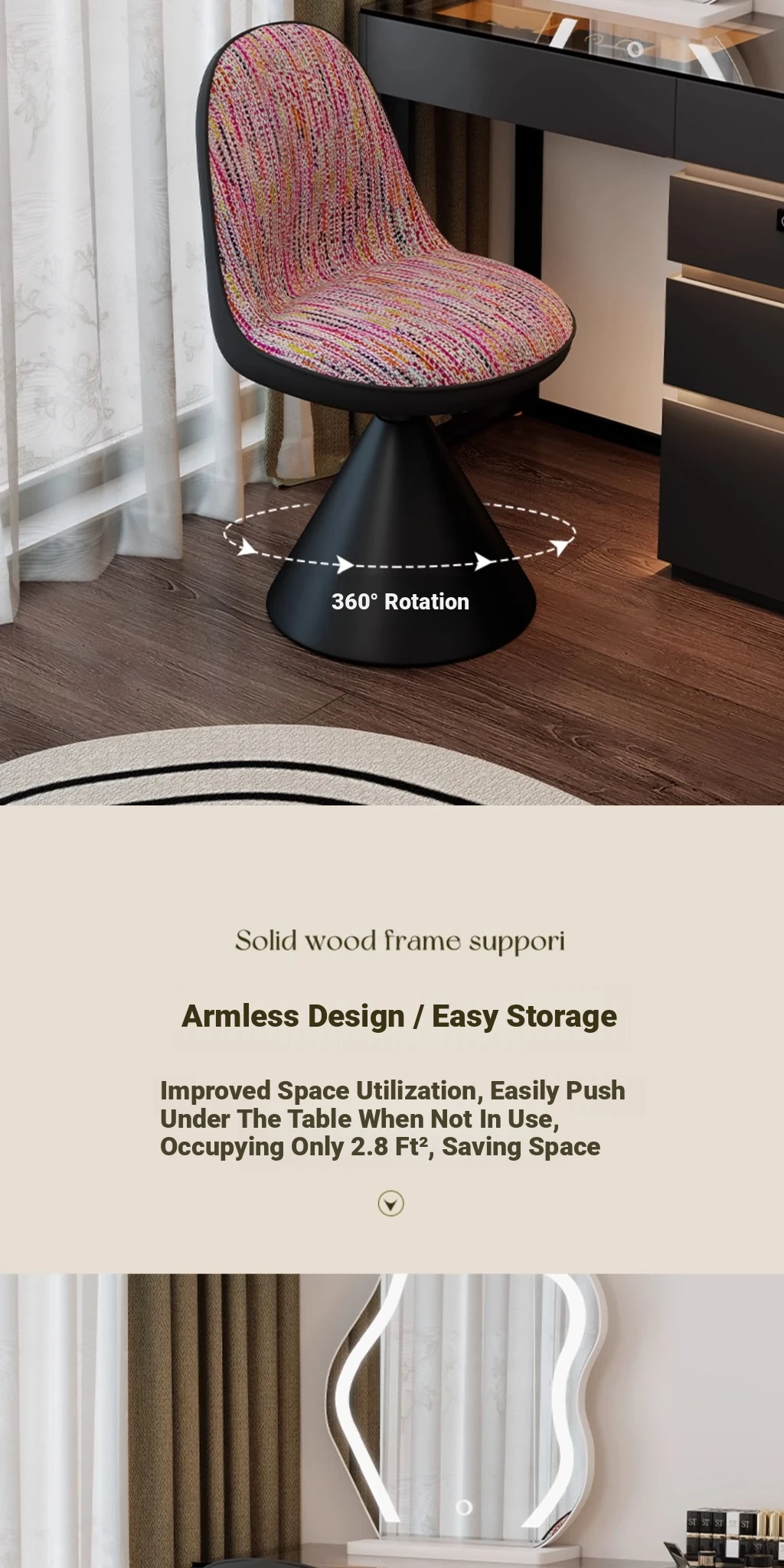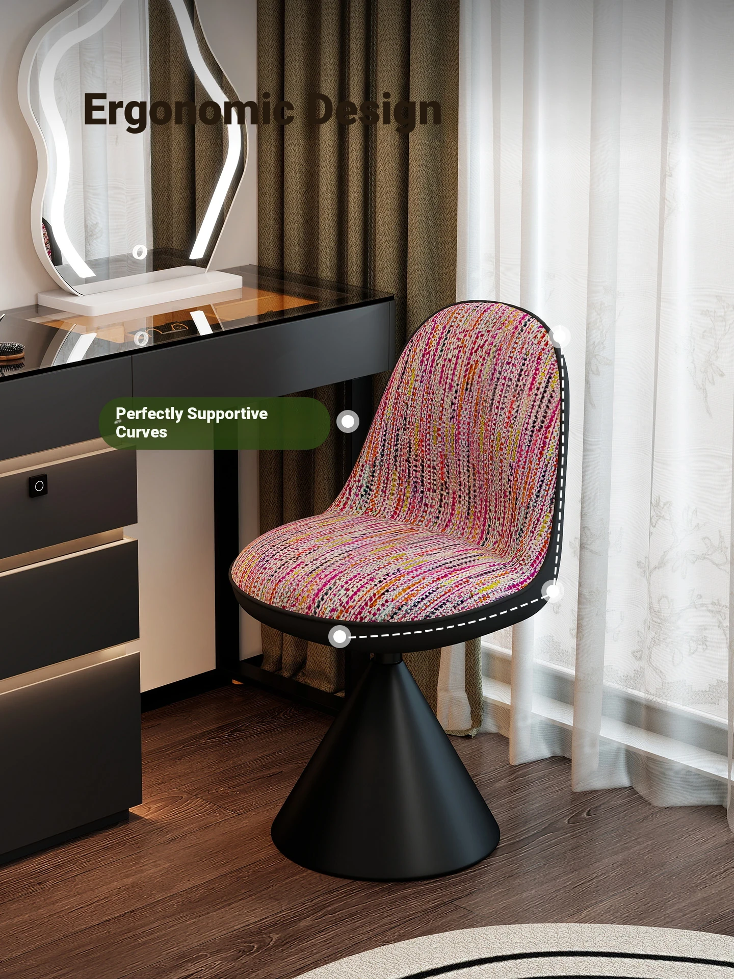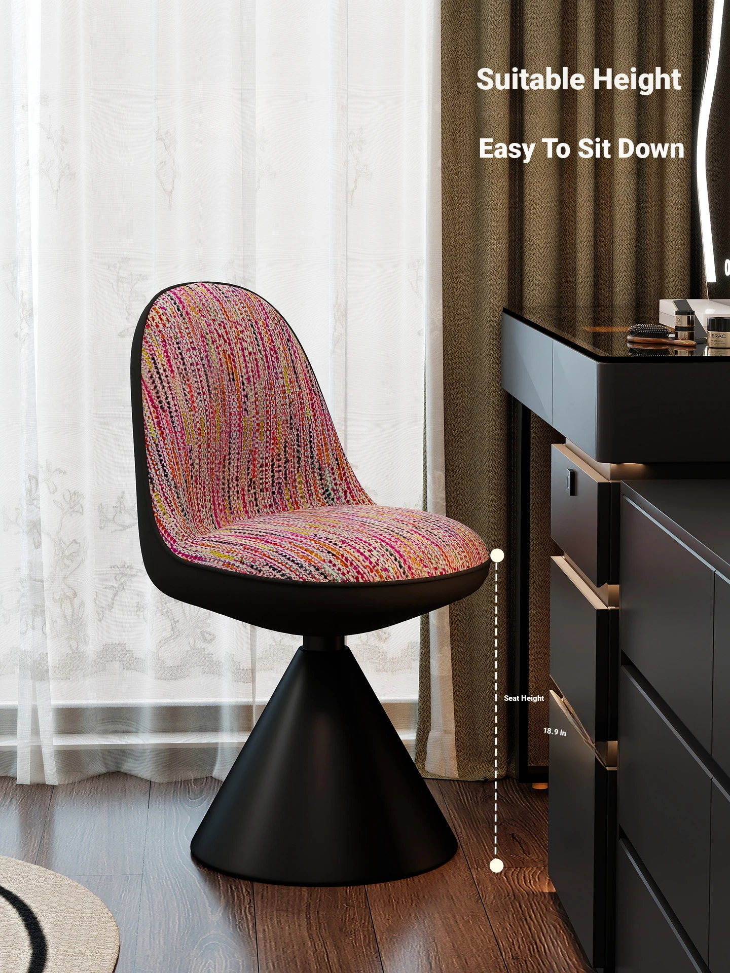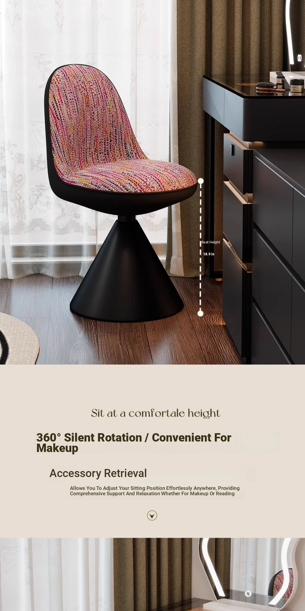 Elegant Italian-Style Makeup Chair for Bedroom – Luxurious Rotatable Vanity Stool with Backrest, Chic Small-Style Robi Chair for Glamorous Makeup Experience
