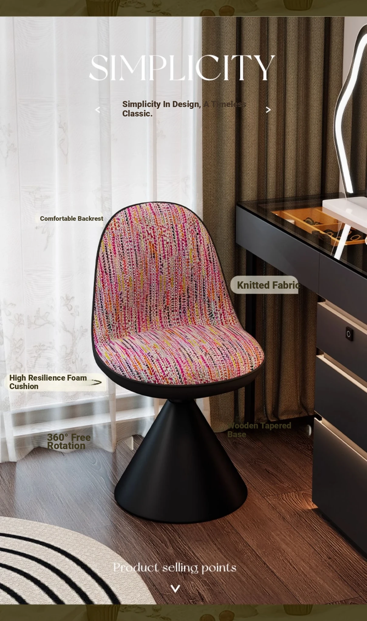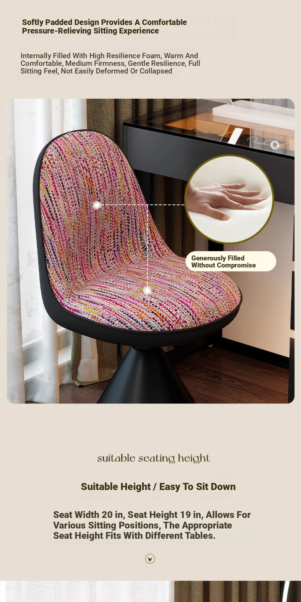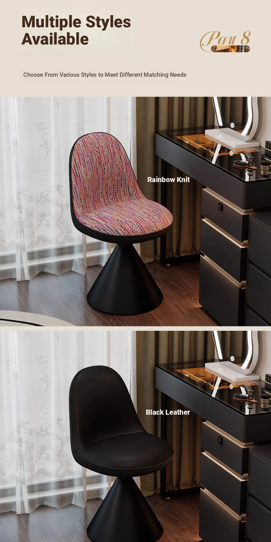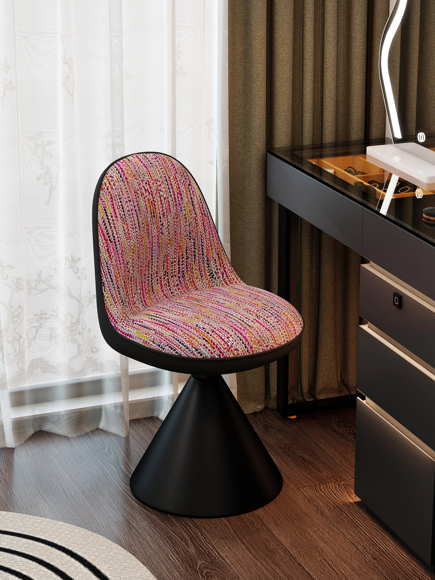 Elegant Italian-Style Makeup Chair for Bedroom – Luxurious Rotatable Vanity Stool with Backrest, Chic Small-Style Robi Chair for Glamorous Makeup Experience