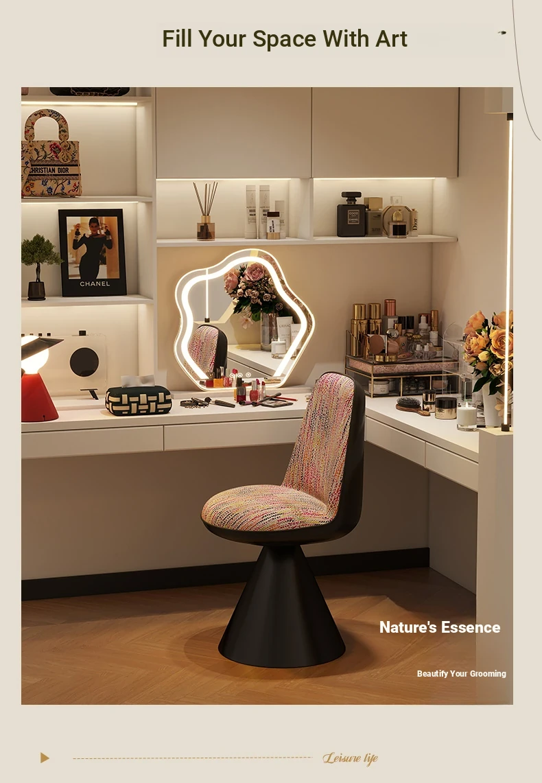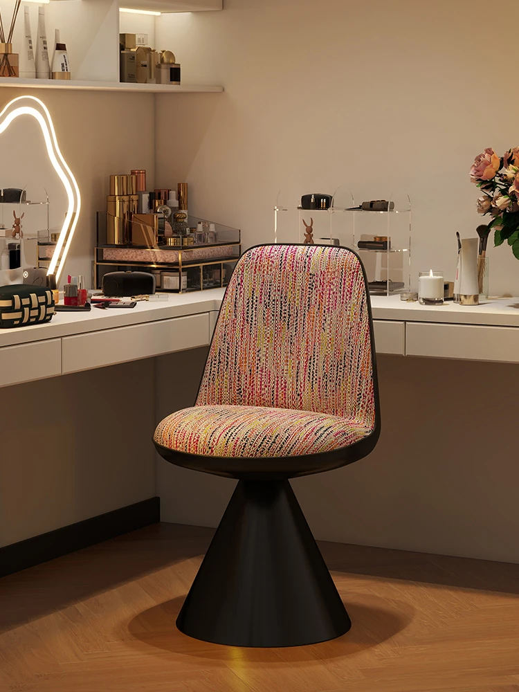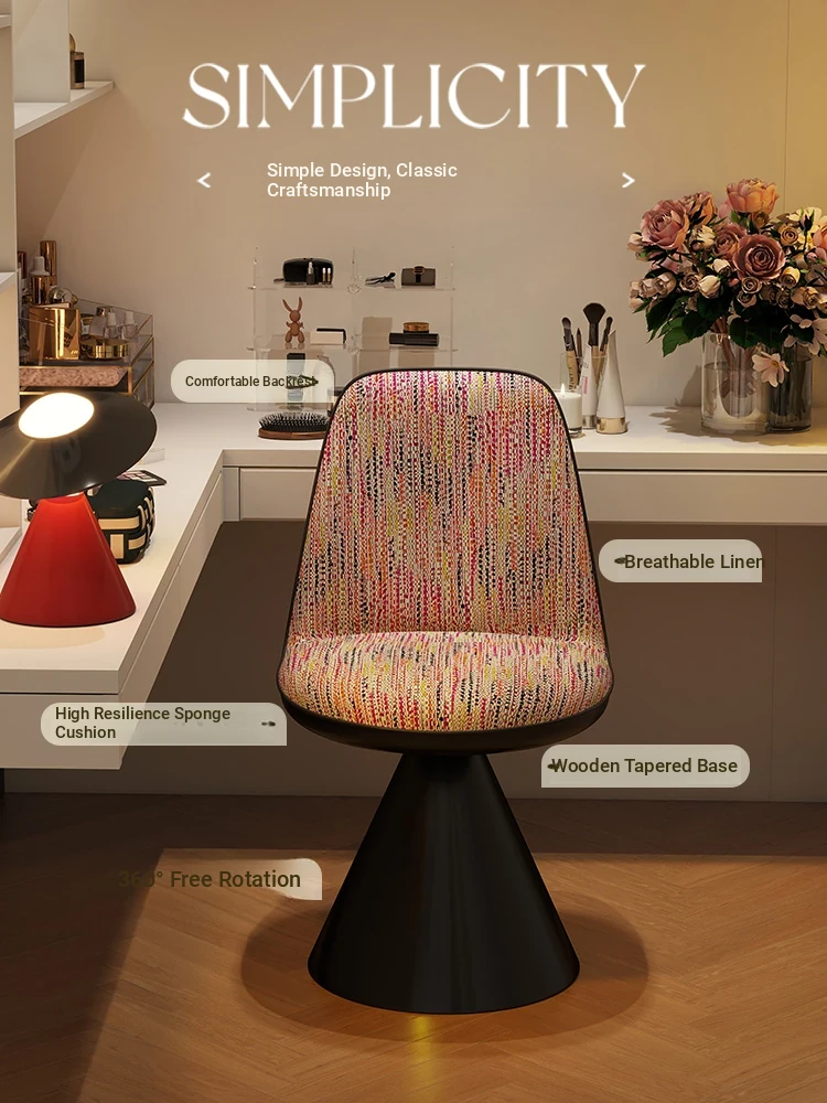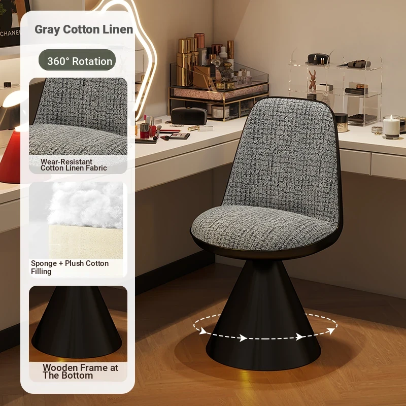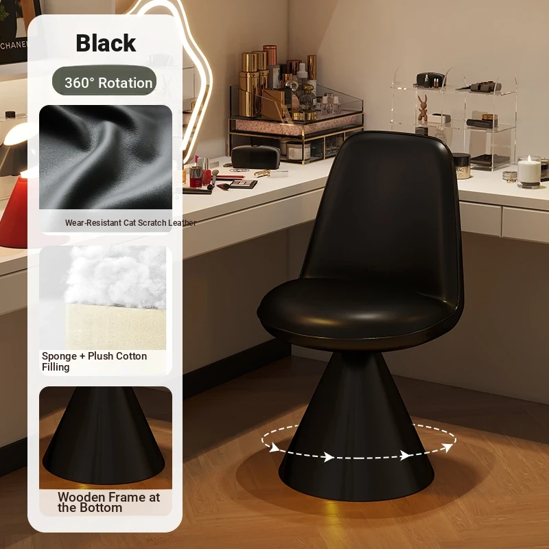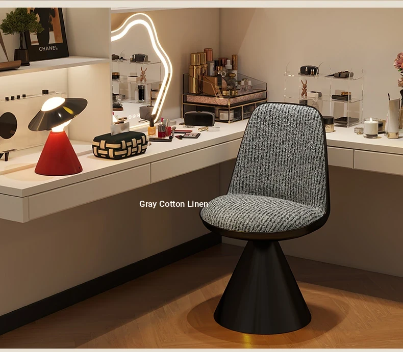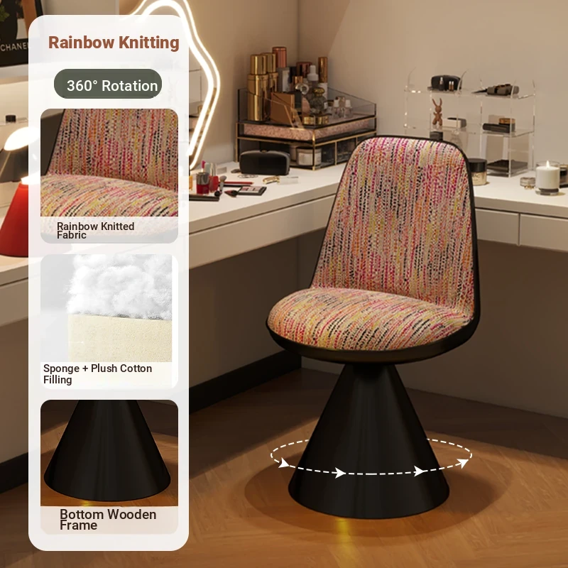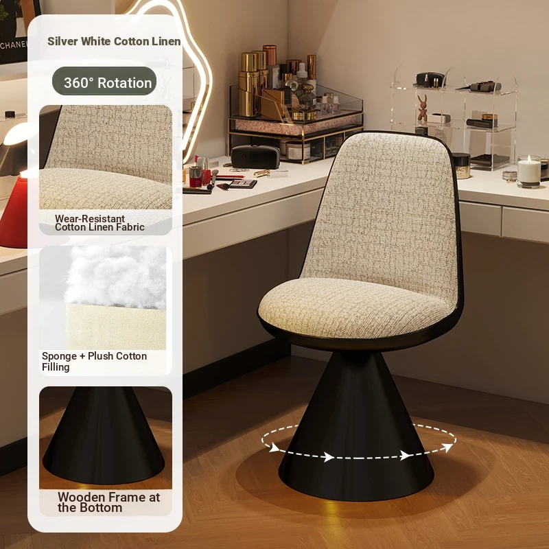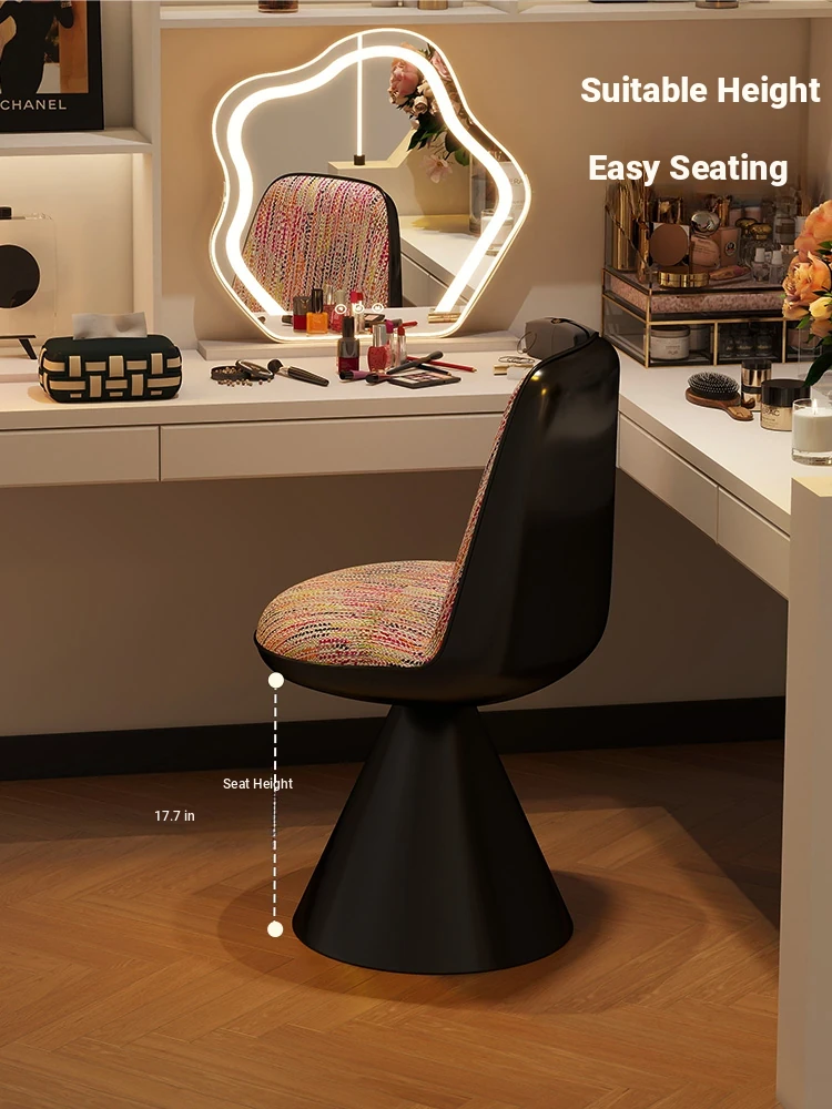 Elegant Italian-Style Makeup Chair with Rotating Backrest – Luxury Bedroom Vanity Stool in Chic Chanel-Inspired Design
