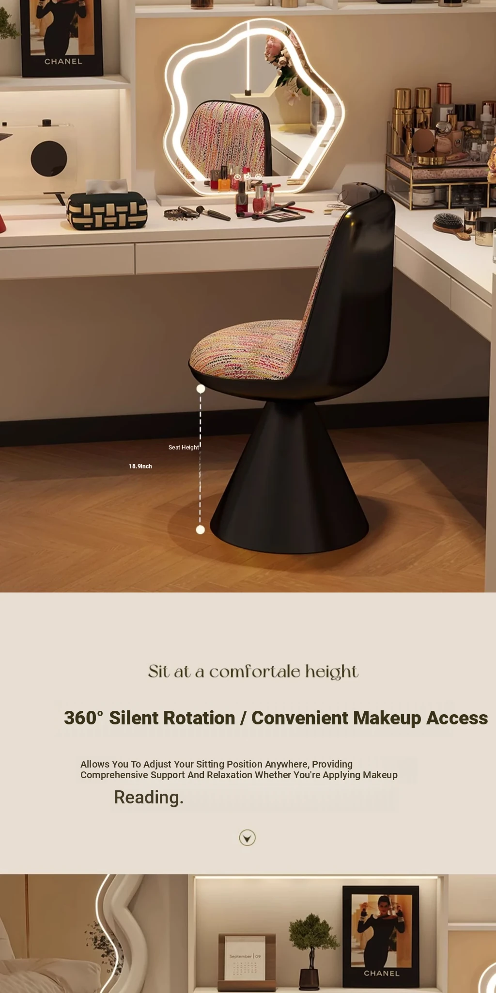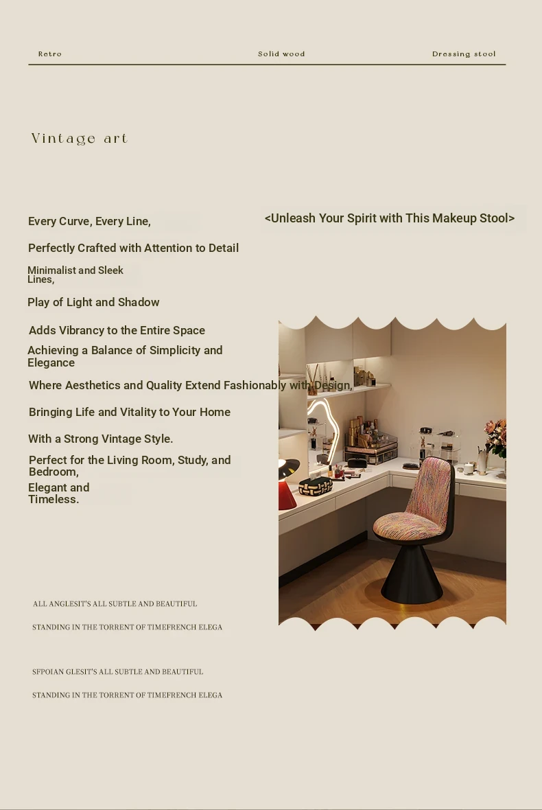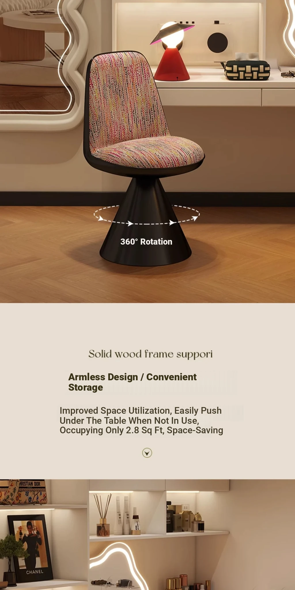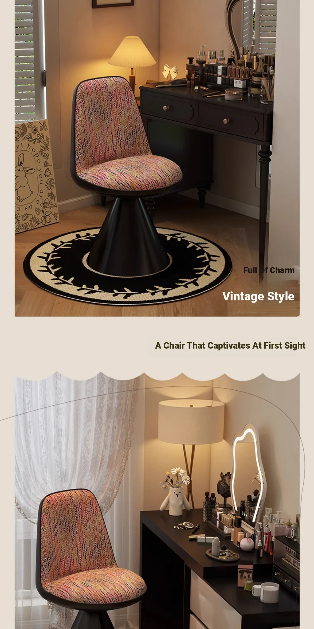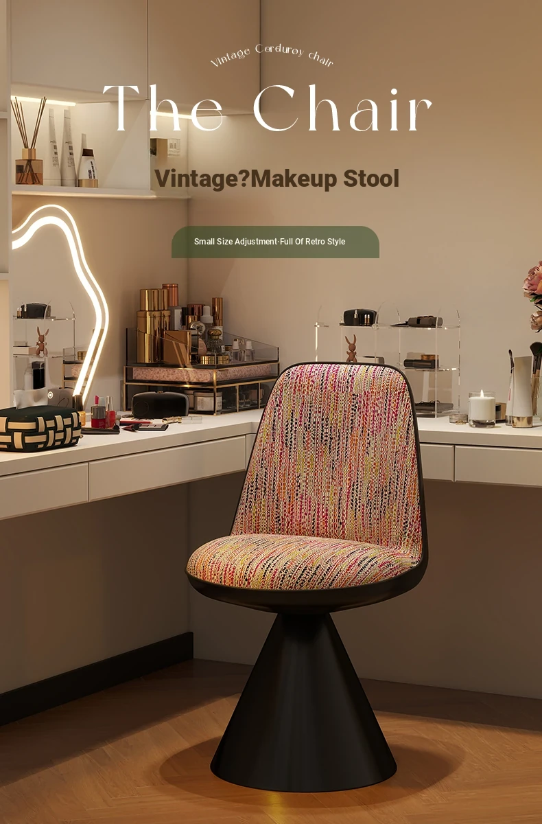 Elegant Italian-Style Makeup Chair with Rotating Backrest – Luxury Bedroom Vanity Stool in Chic Chanel-Inspired Design