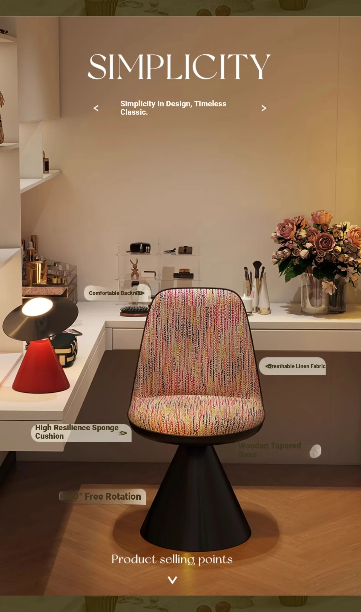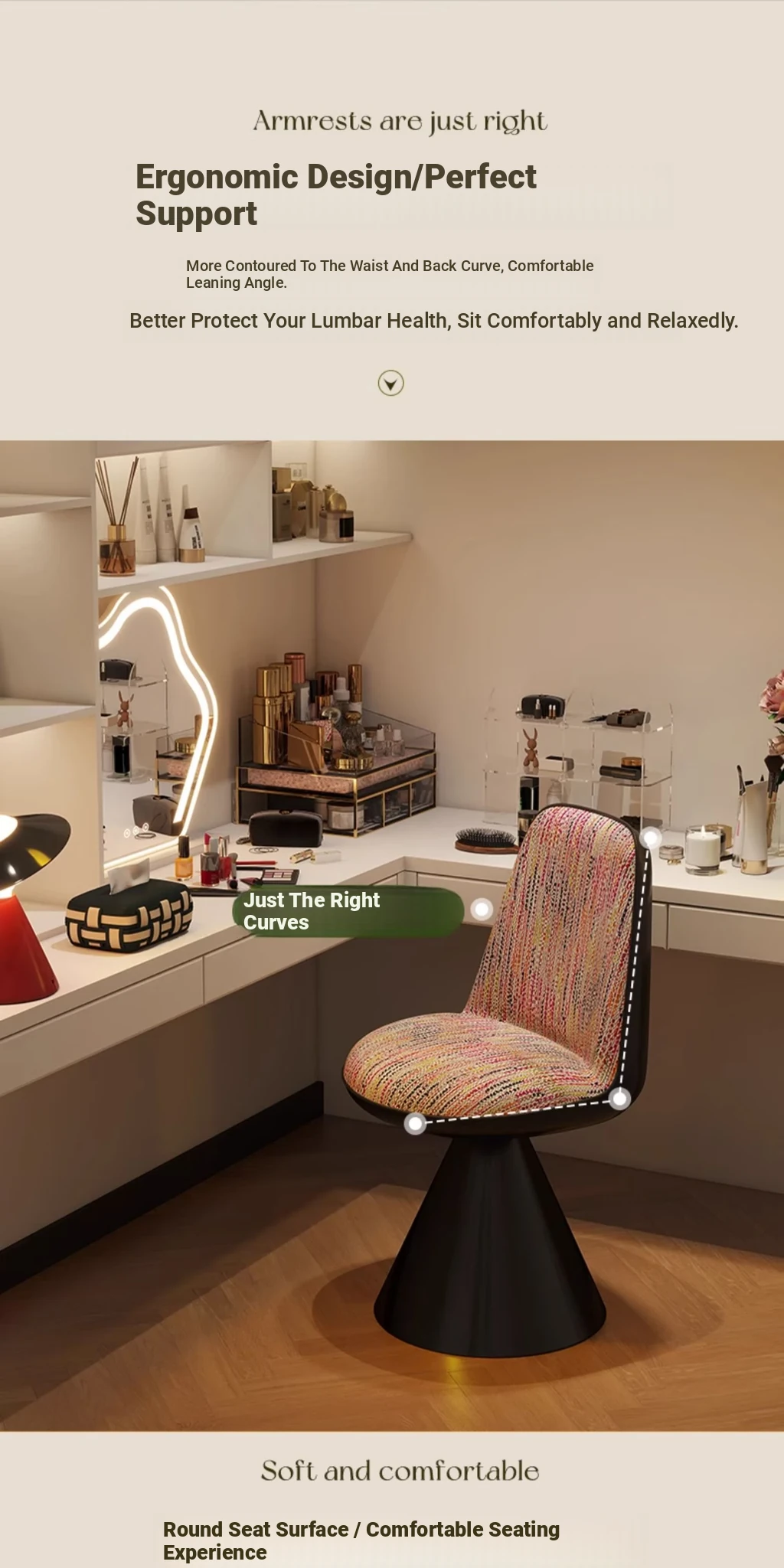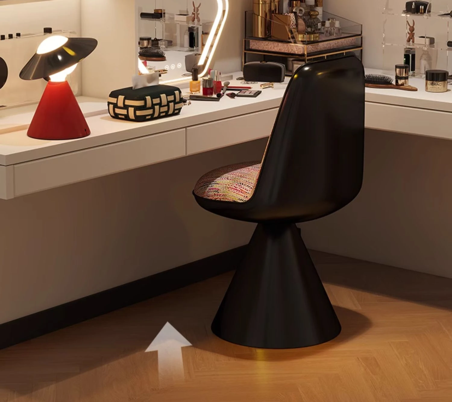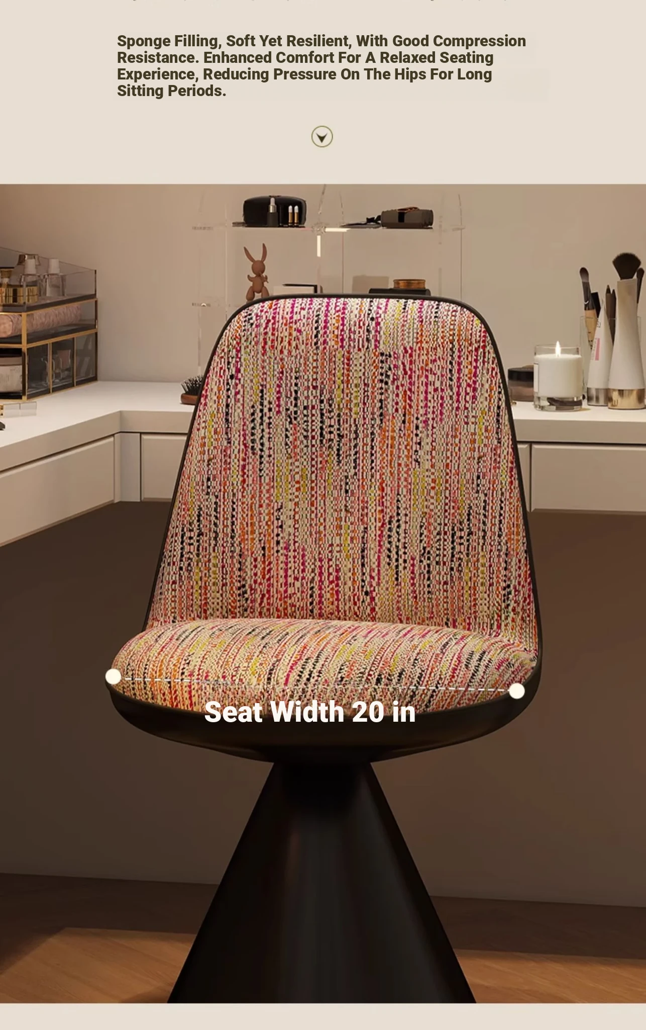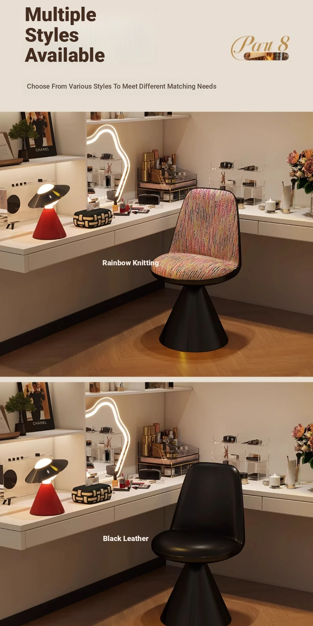 Elegant Italian-Style Makeup Chair with Rotating Backrest – Luxury Bedroom Vanity Stool in Chic Chanel-Inspired Design