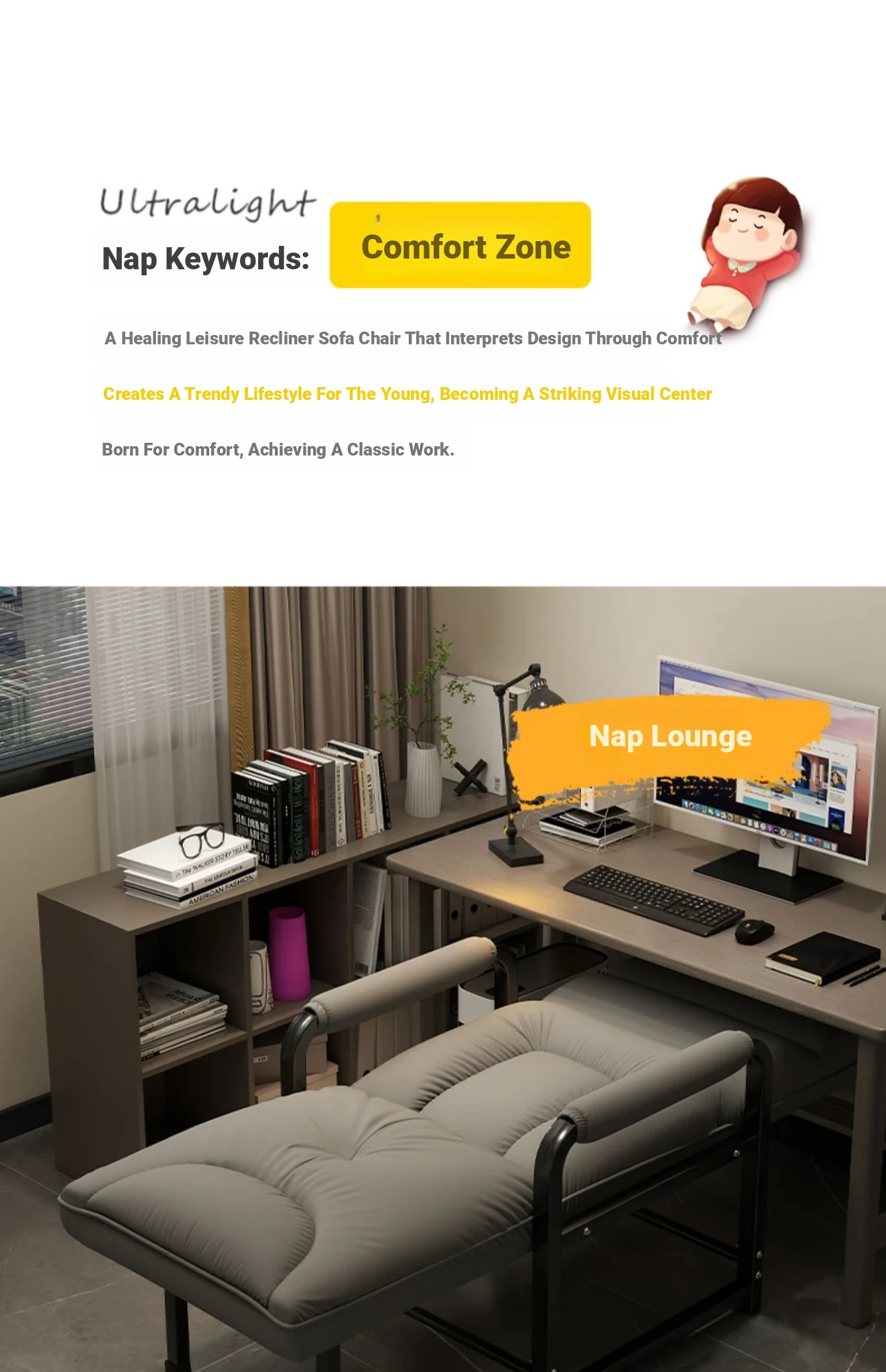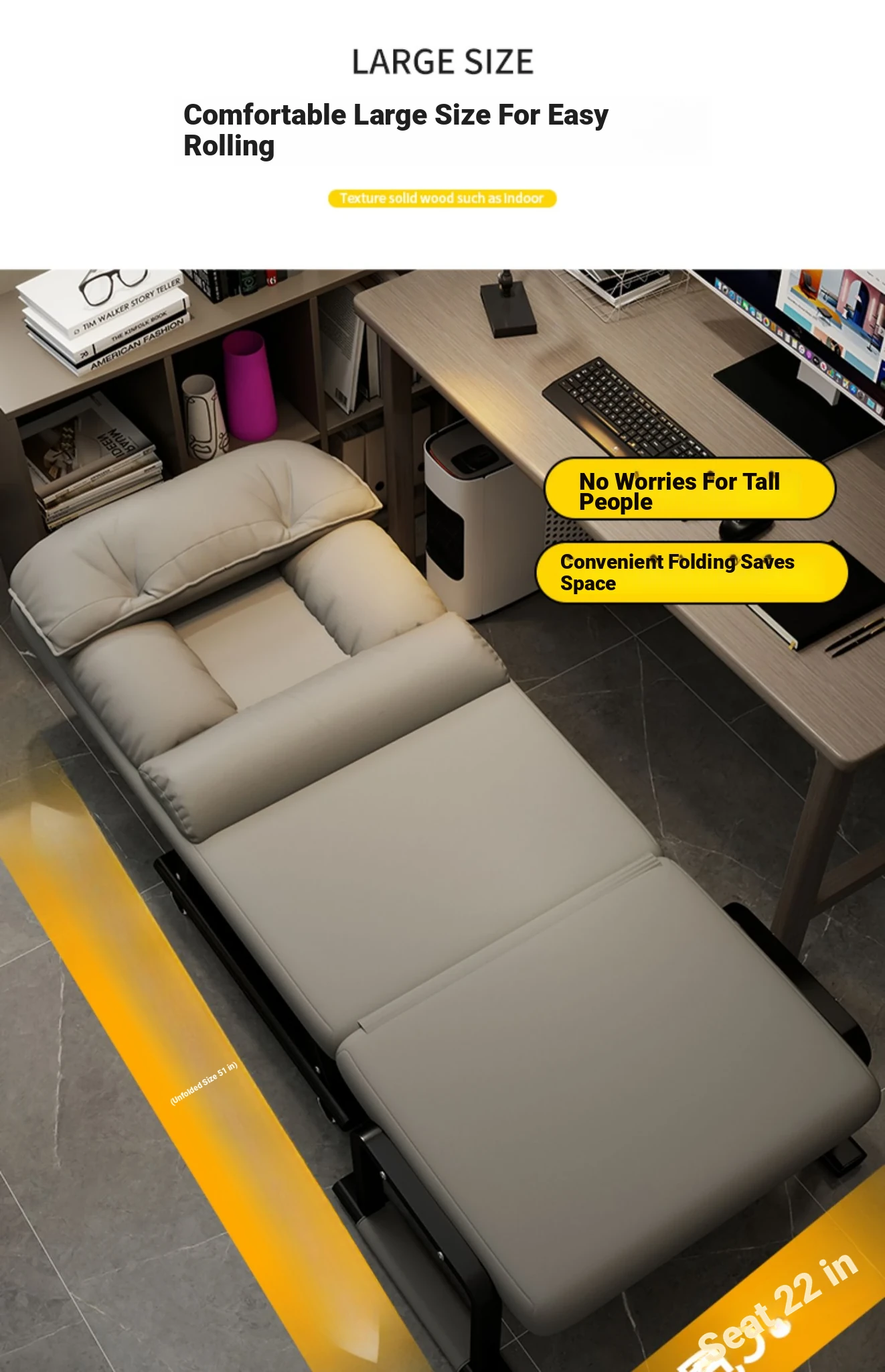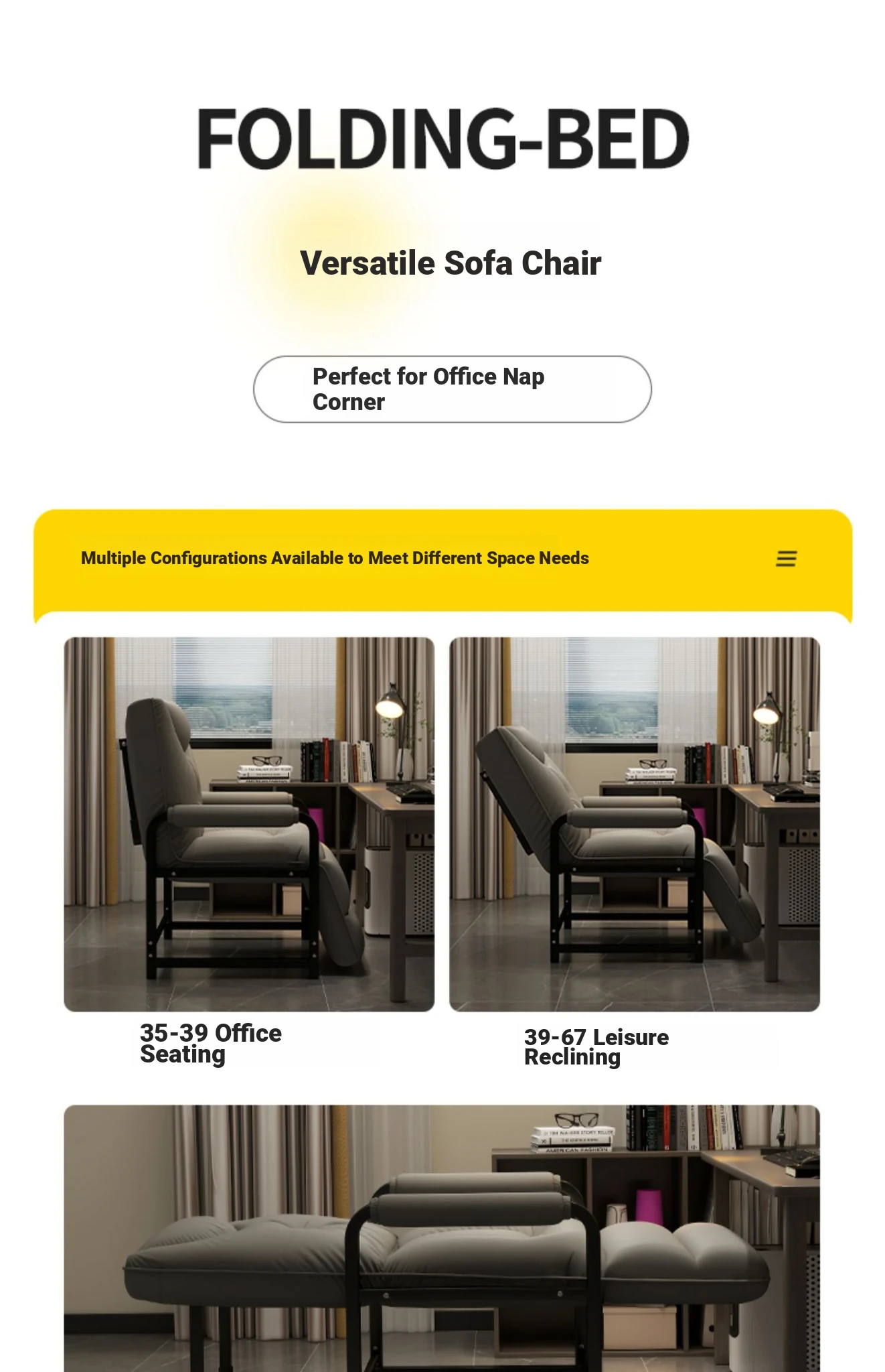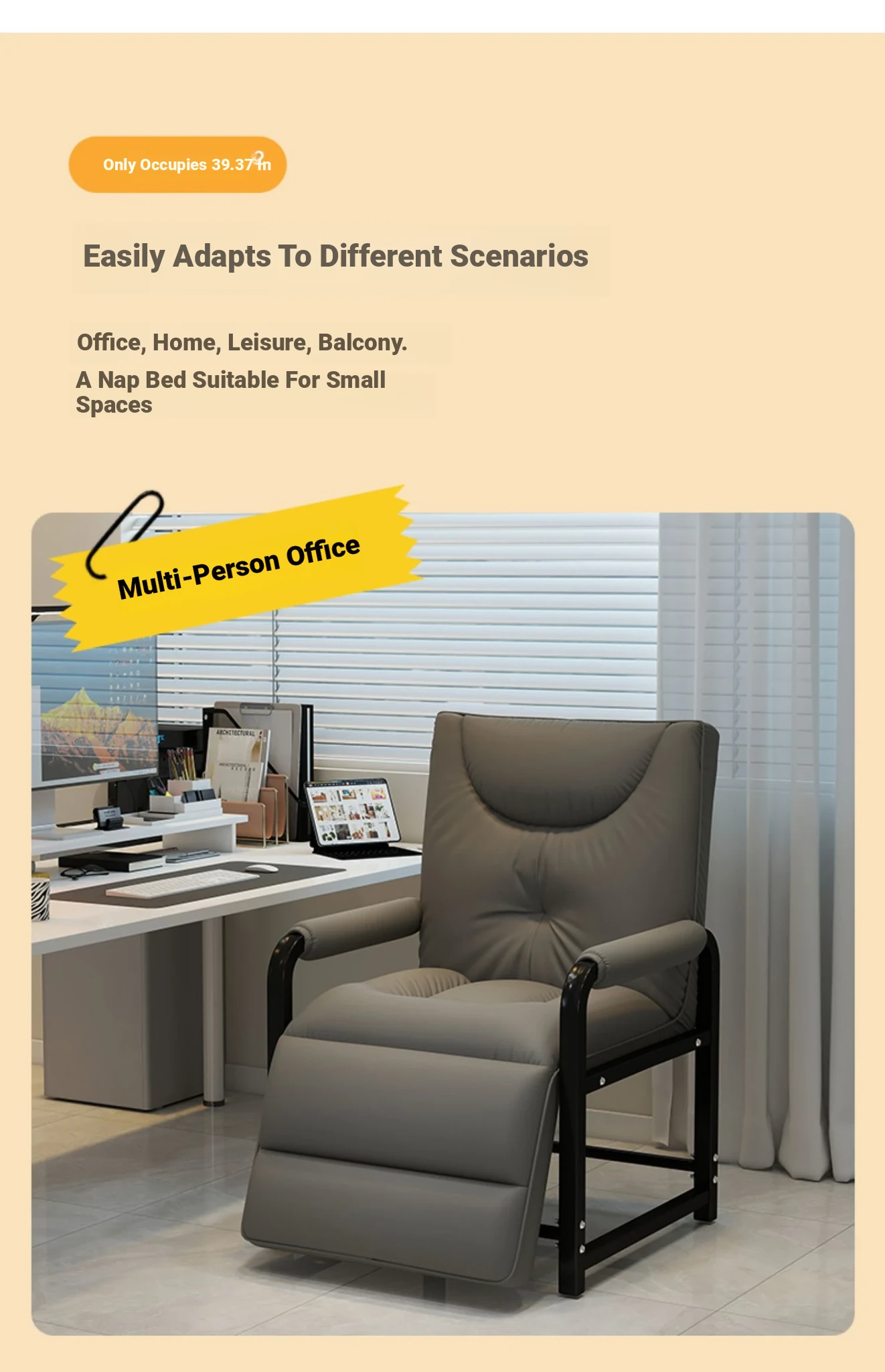 Foldable Office Recliner Chair - Perfect for Napping and Relaxing at Your Desk, Dual-Use as a Comfortable Sofa Chair for Lazy Days, Ideal for Work or Home!