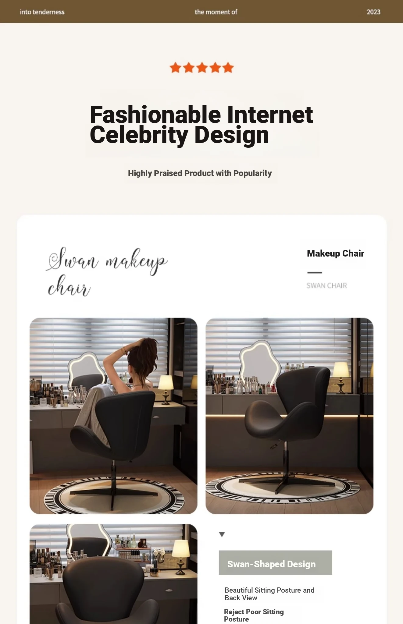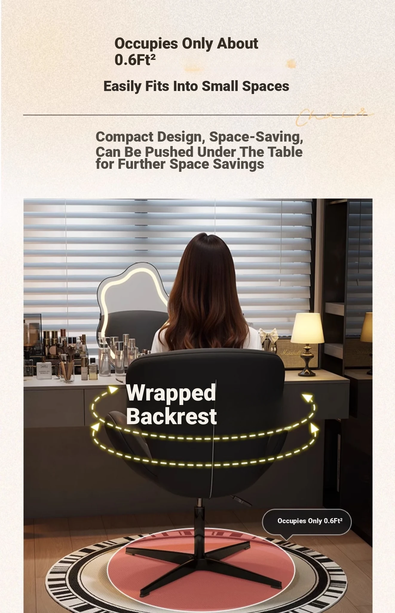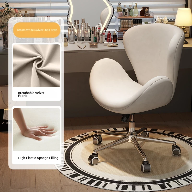 French Minimalist Chic Makeup Stool – Elegant Dressing Table Chair for Bedroom and Closet, Ideal for Nail Salons, Exudes Luxury and Style