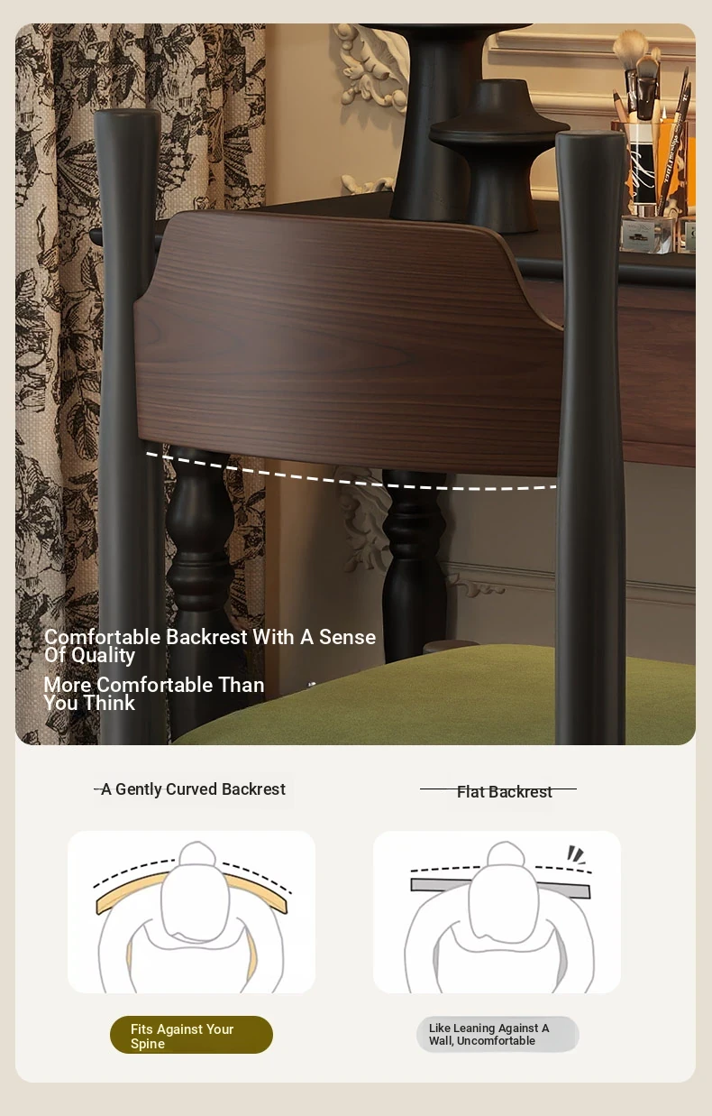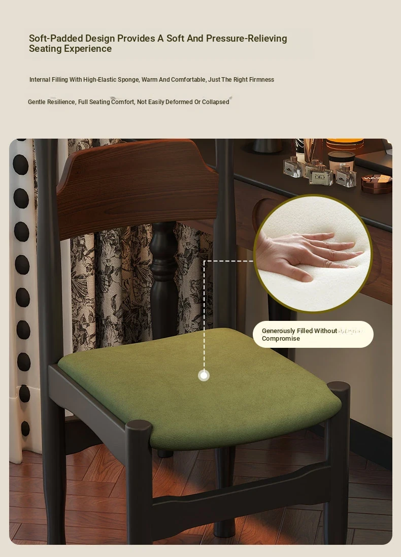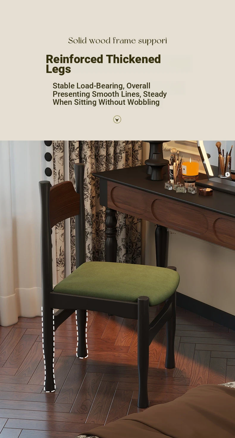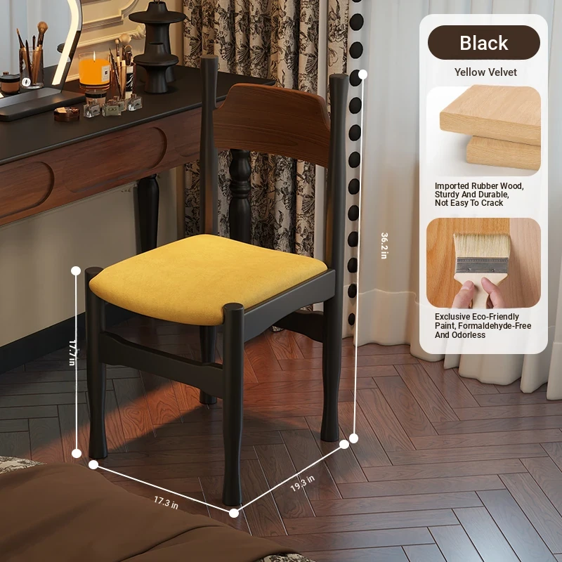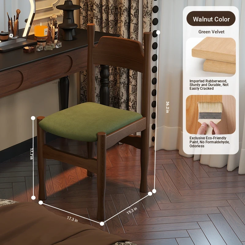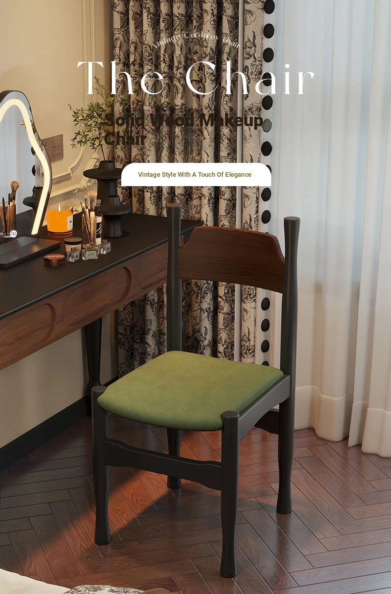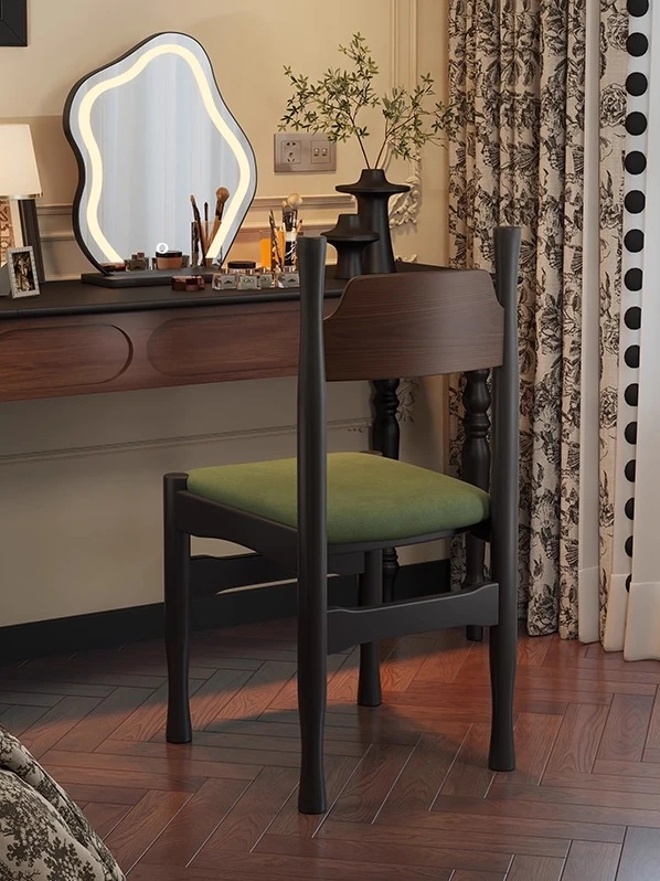 French Solid Wood Vanity Chair - Elegant Makeup Stool for Bedroom, Retro Design for Home Use, Plush Backrest Dining Chair for Dining Room Tables
