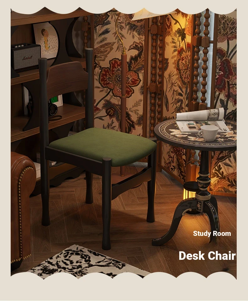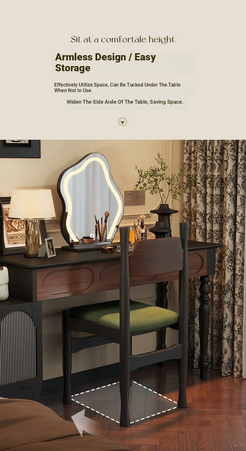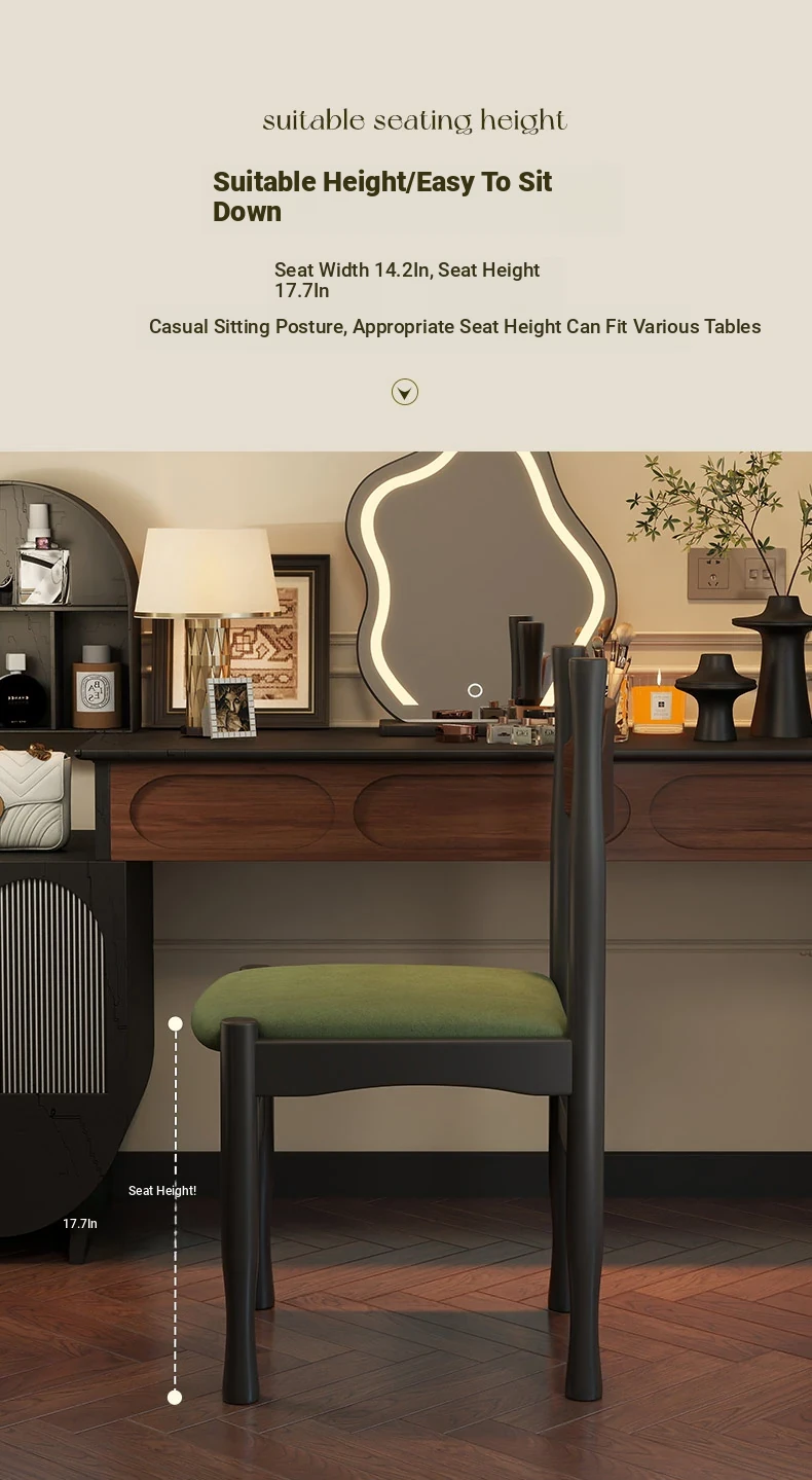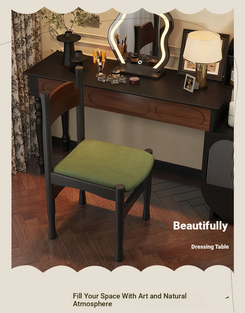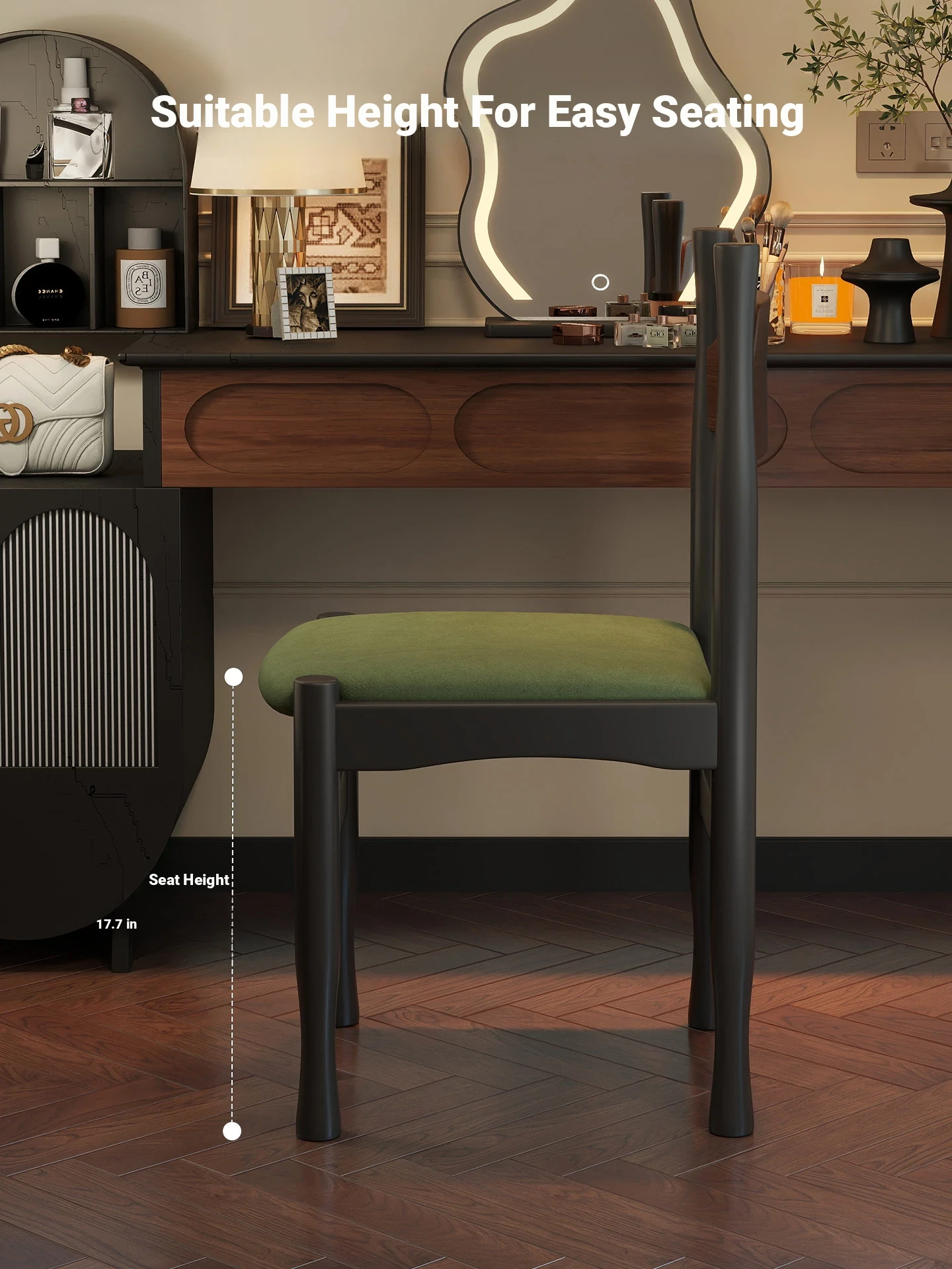 French Solid Wood Vanity Chair - Elegant Makeup Stool for Bedroom, Retro Design for Home Use, Plush Backrest Dining Chair for Dining Room Tables