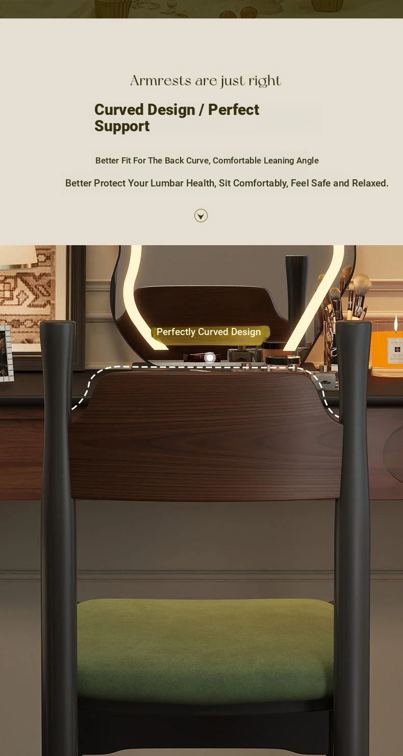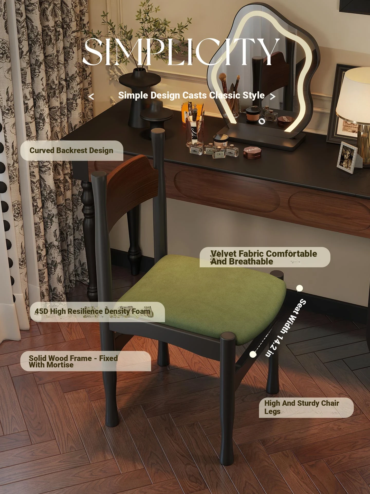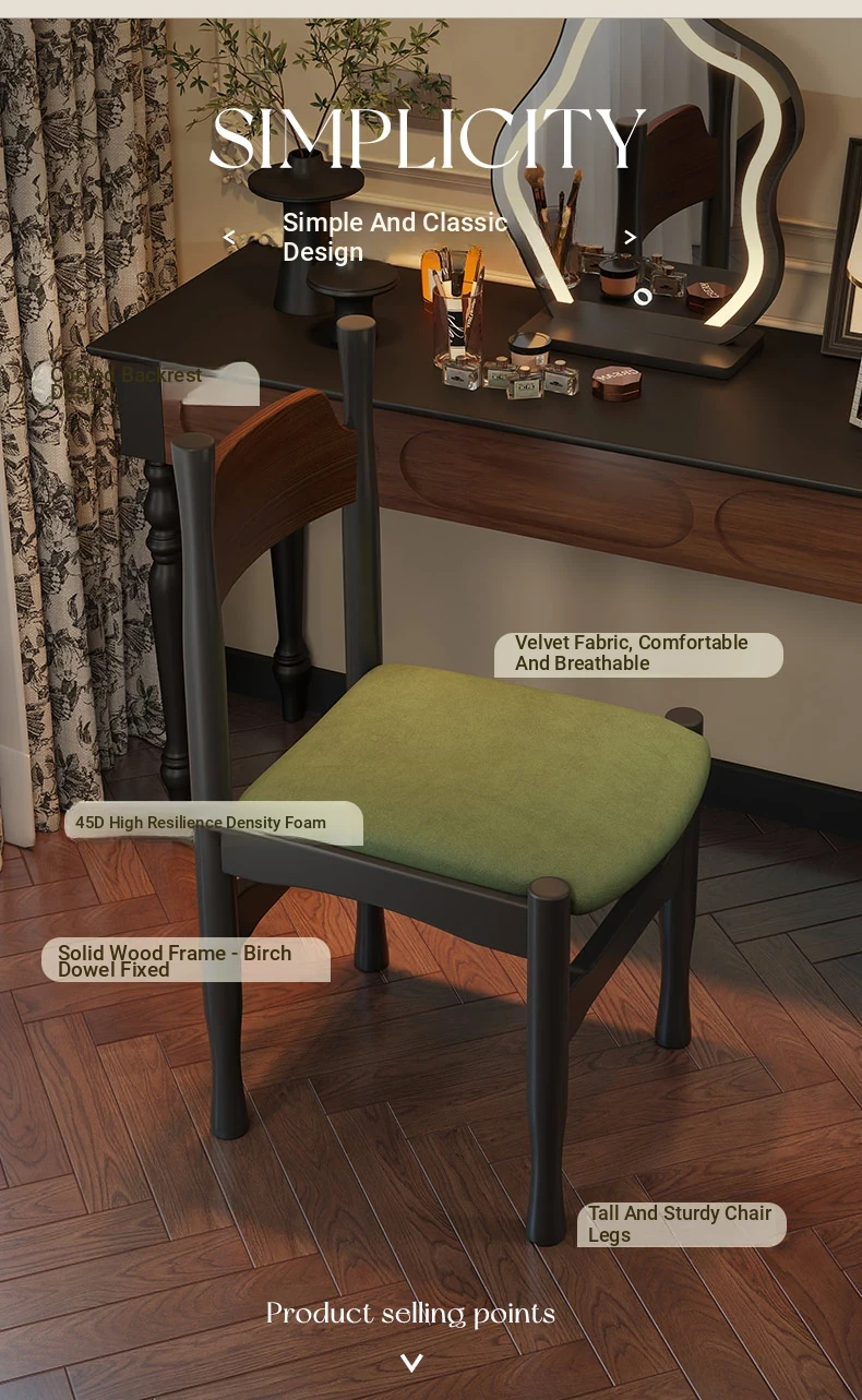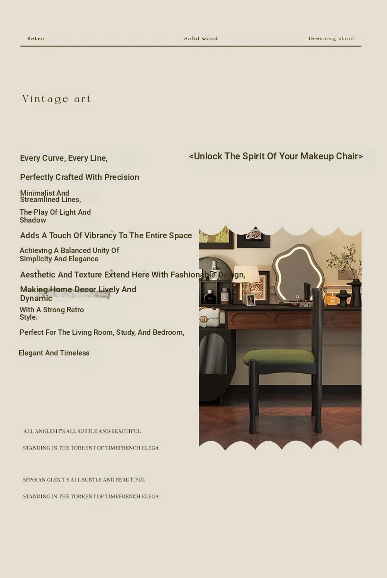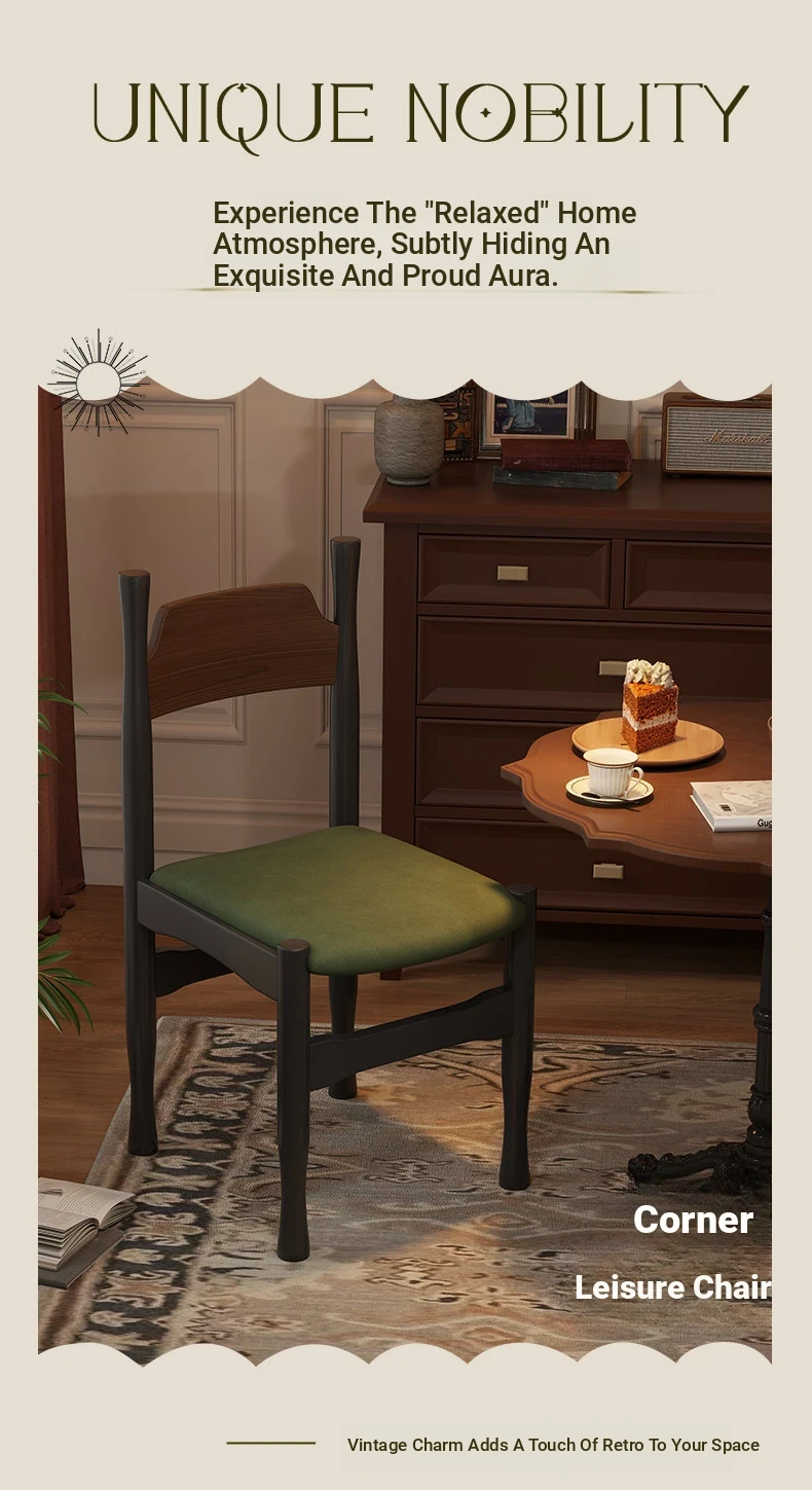 French Solid Wood Vanity Chair - Elegant Makeup Stool for Bedroom, Retro Design for Home Use, Plush Backrest Dining Chair for Dining Room Tables