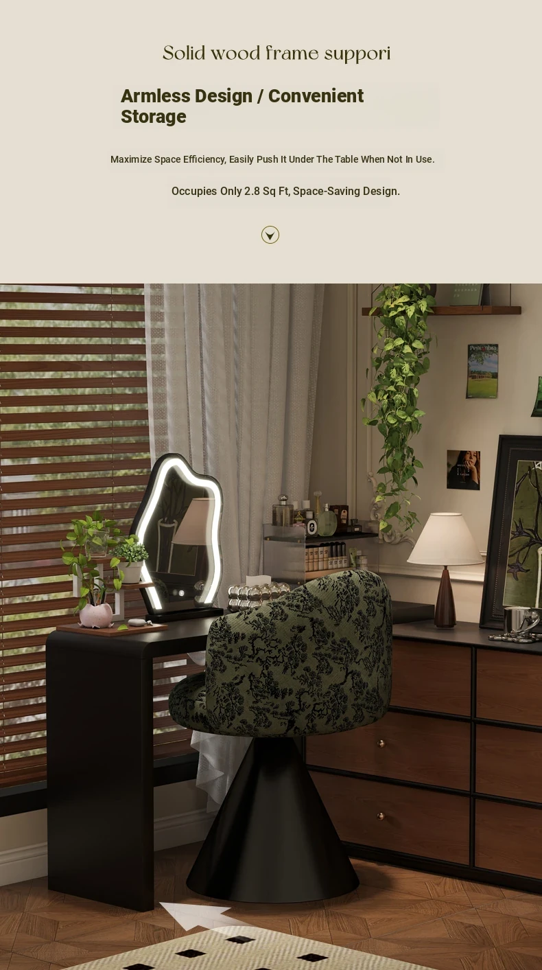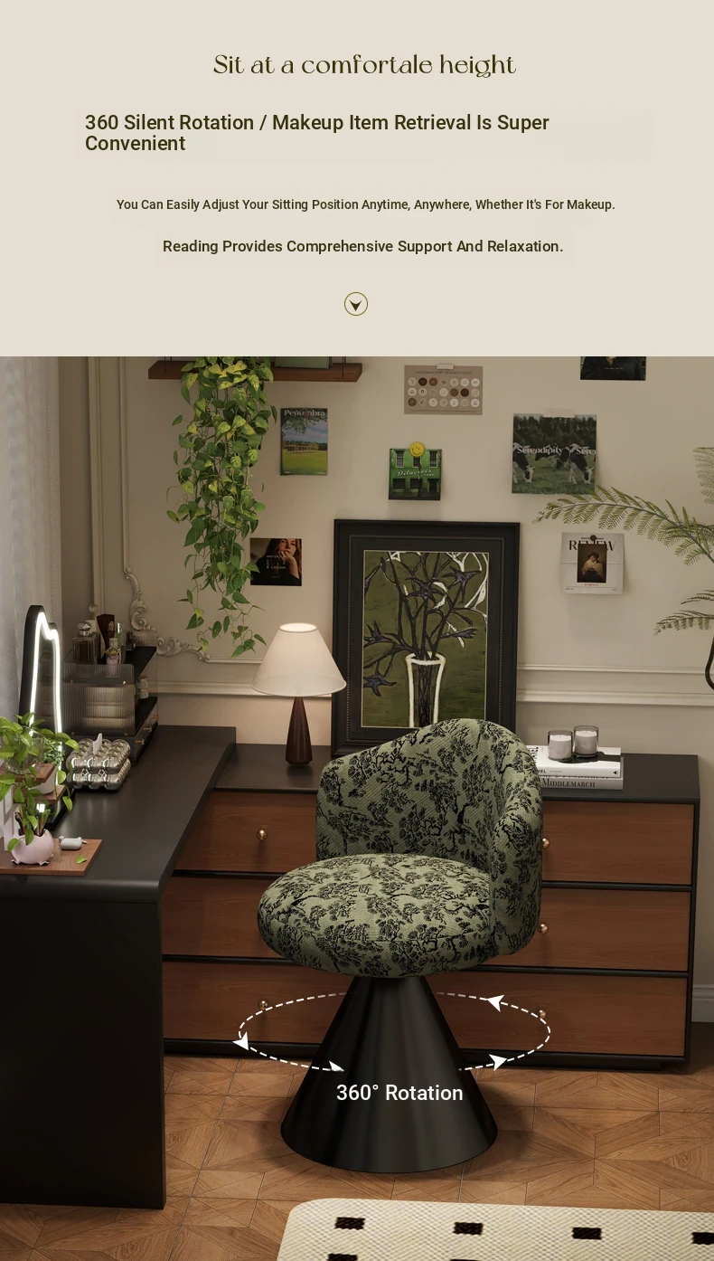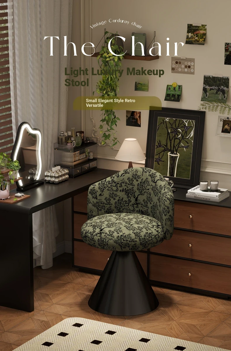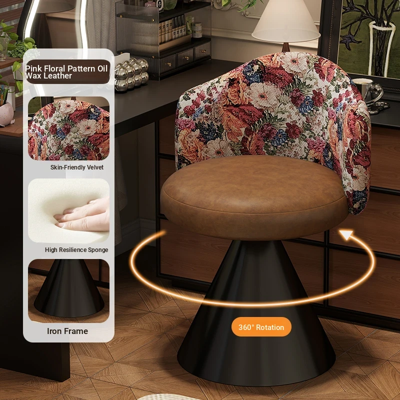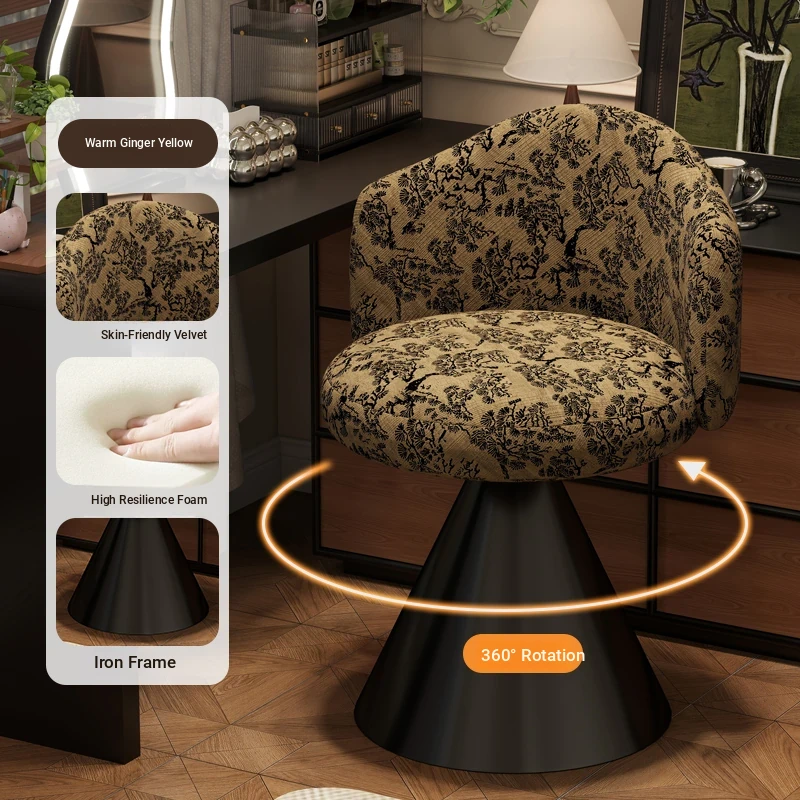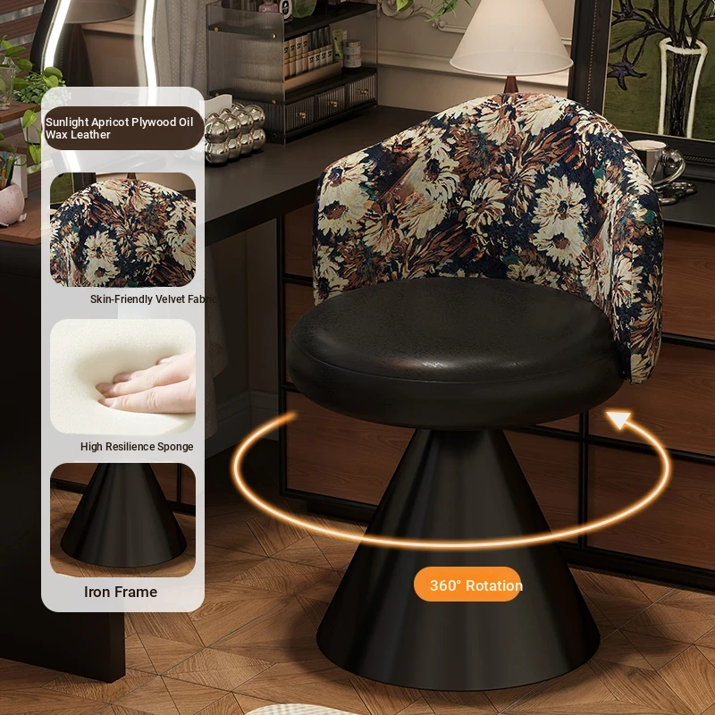 French Vintage Makeup Chair - Luxurious and Elegant Dressing Room Stool for Small Spaces, Rotatable Vanity Chair with Backrest