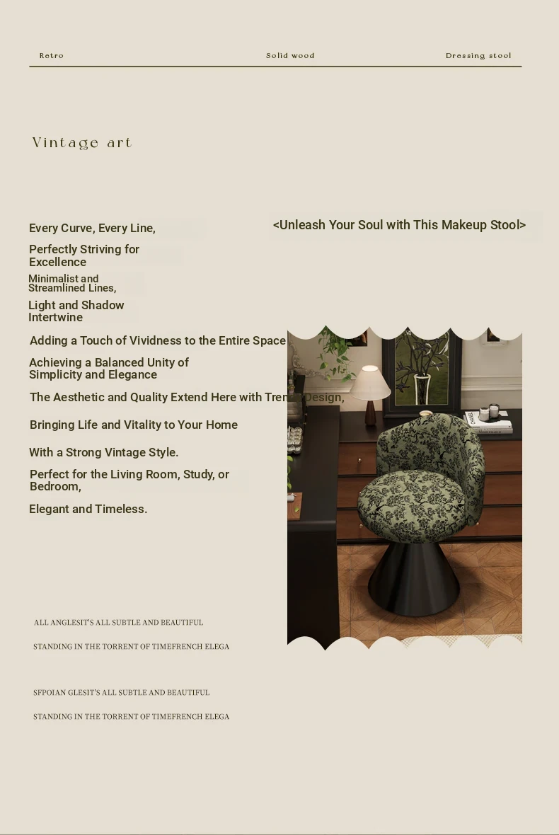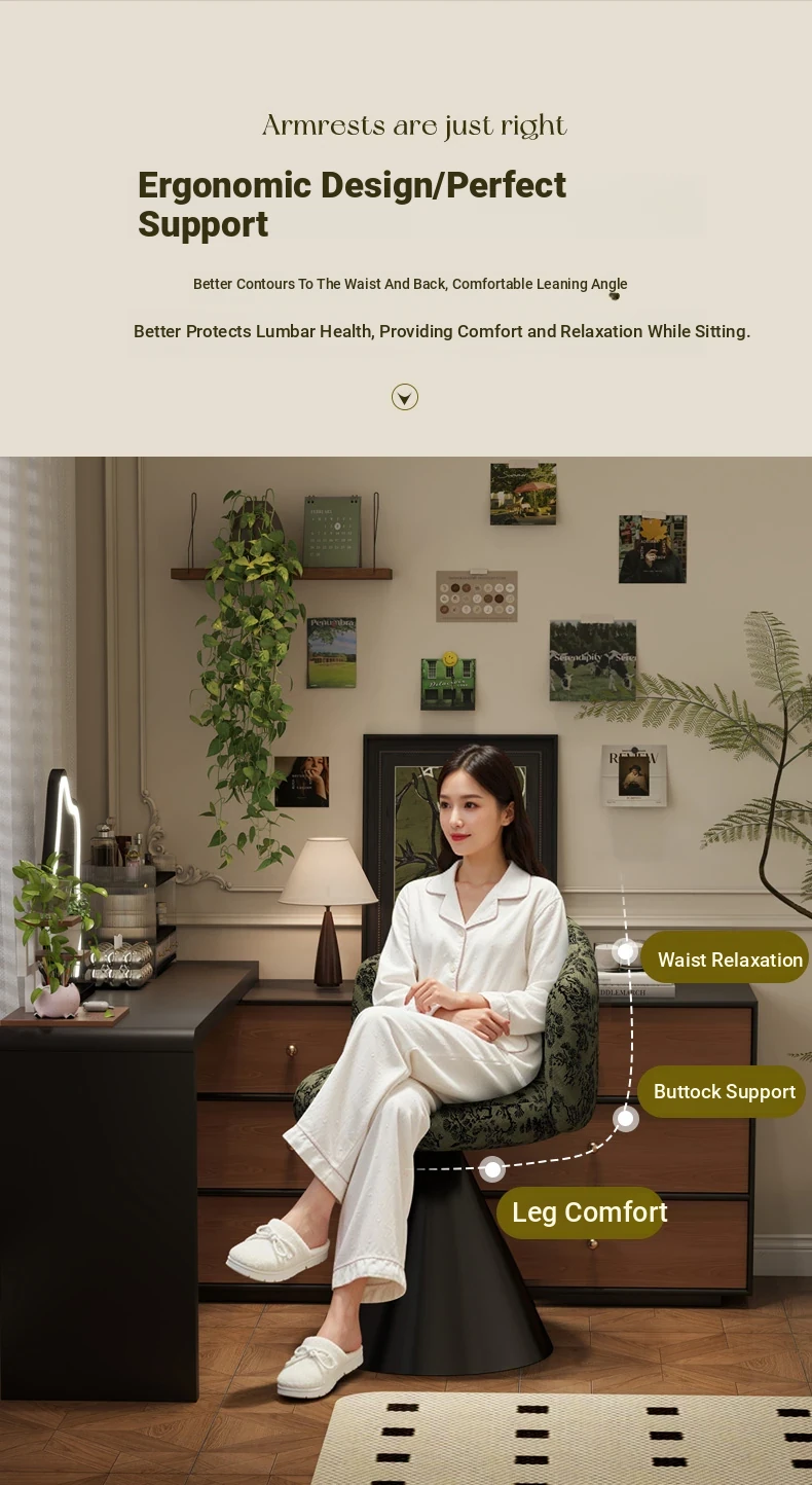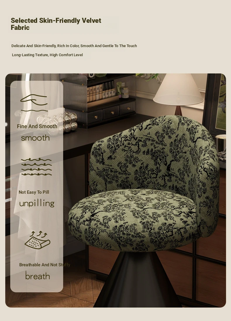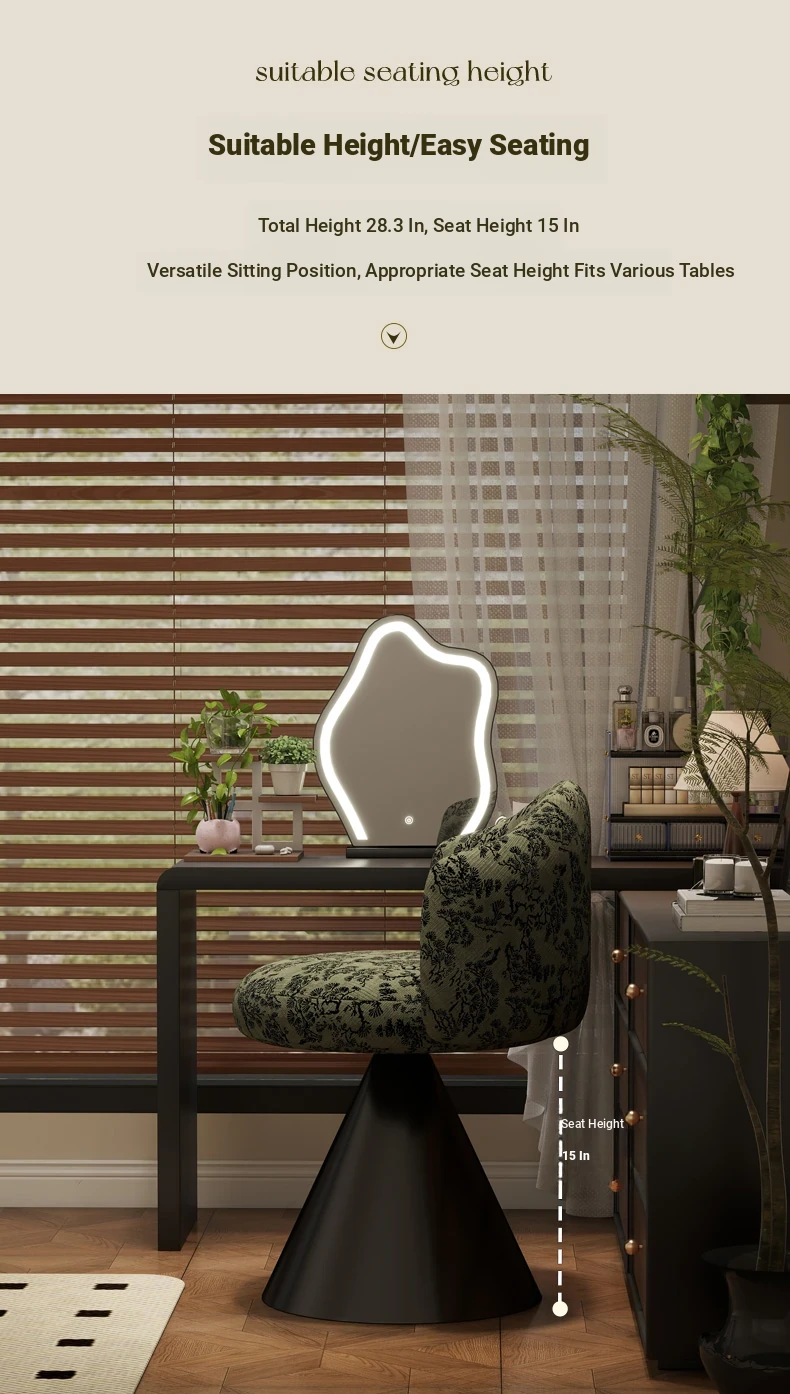 French Vintage Makeup Chair - Luxurious and Elegant Dressing Room Stool for Small Spaces, Rotatable Vanity Chair with Backrest