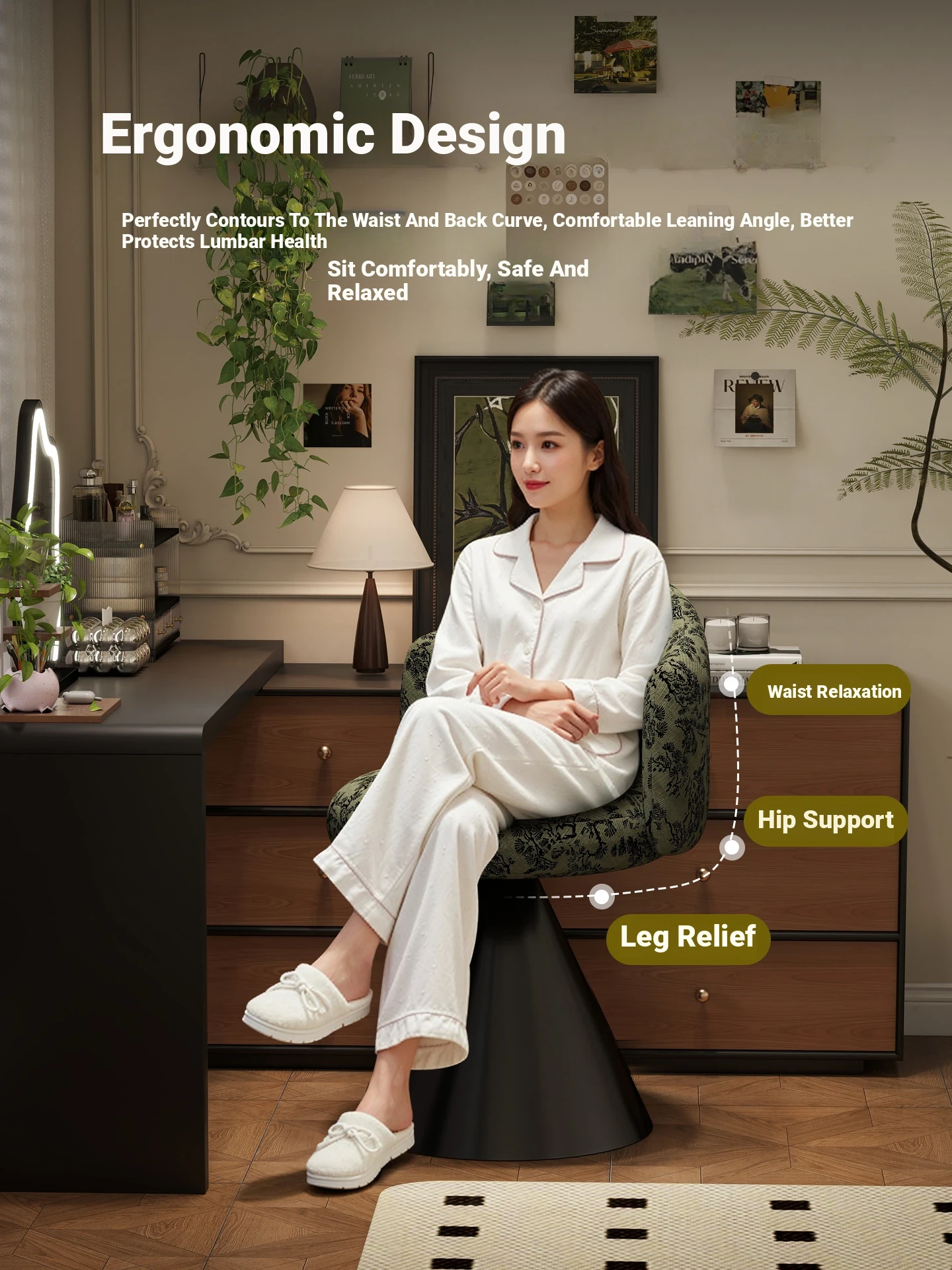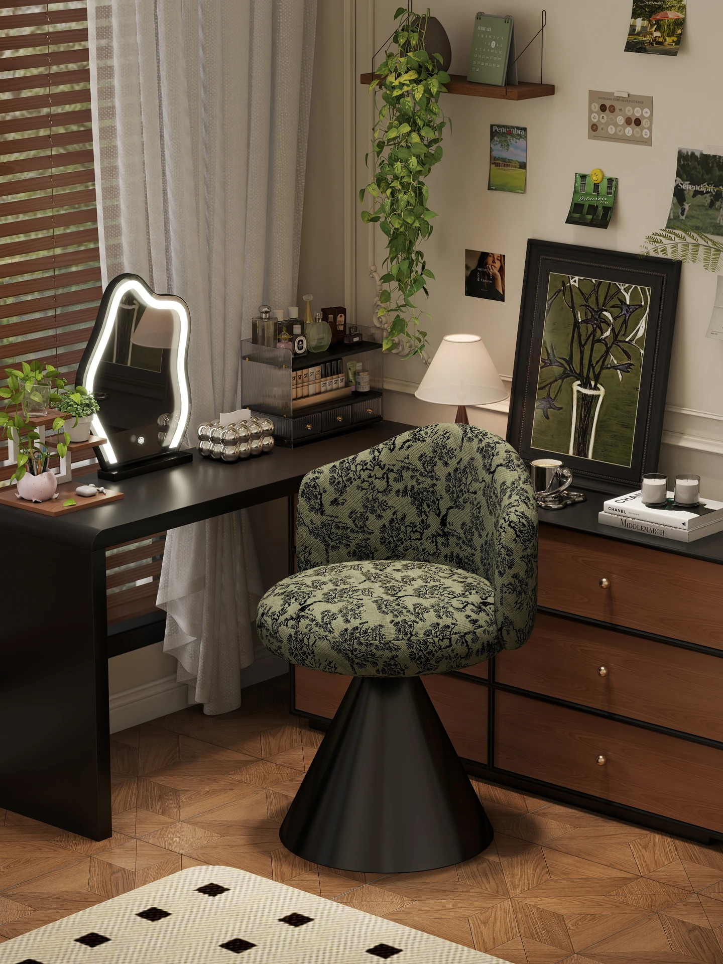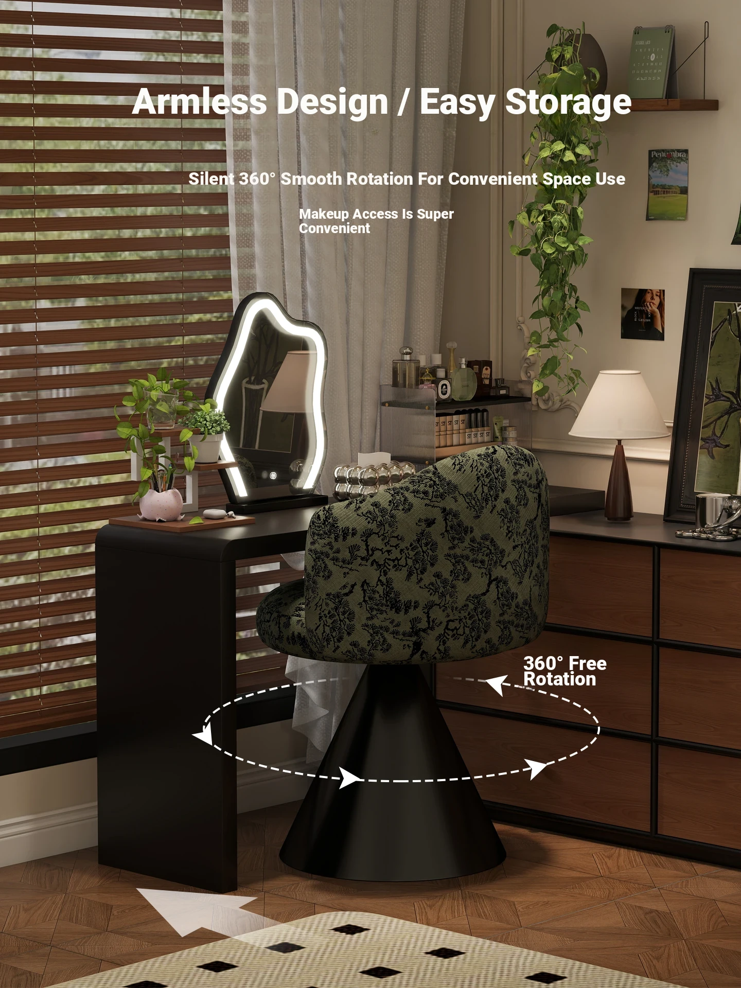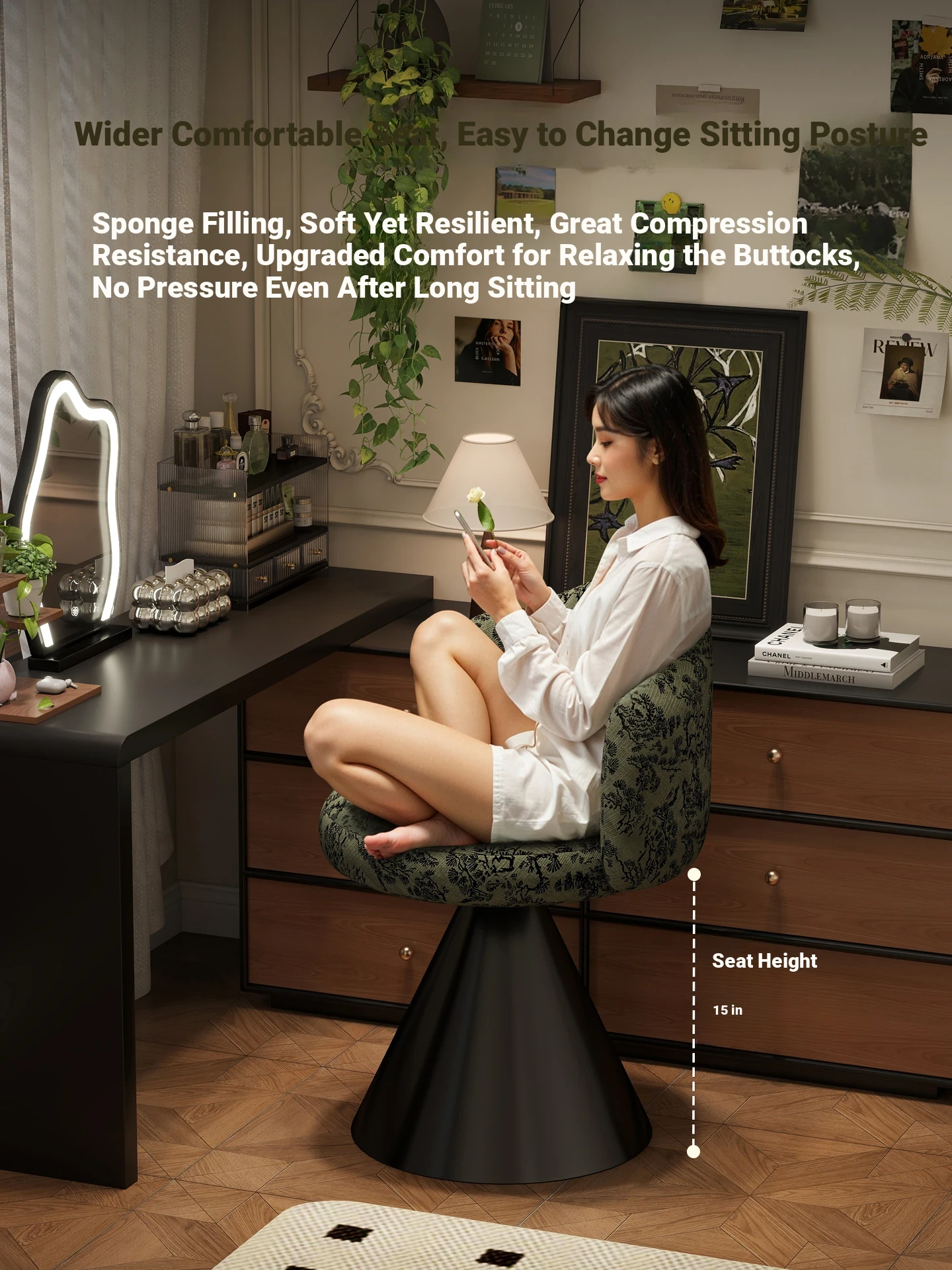 French Vintage Makeup Chair - Luxurious and Elegant Dressing Room Stool for Small Spaces, Rotatable Vanity Chair with Backrest