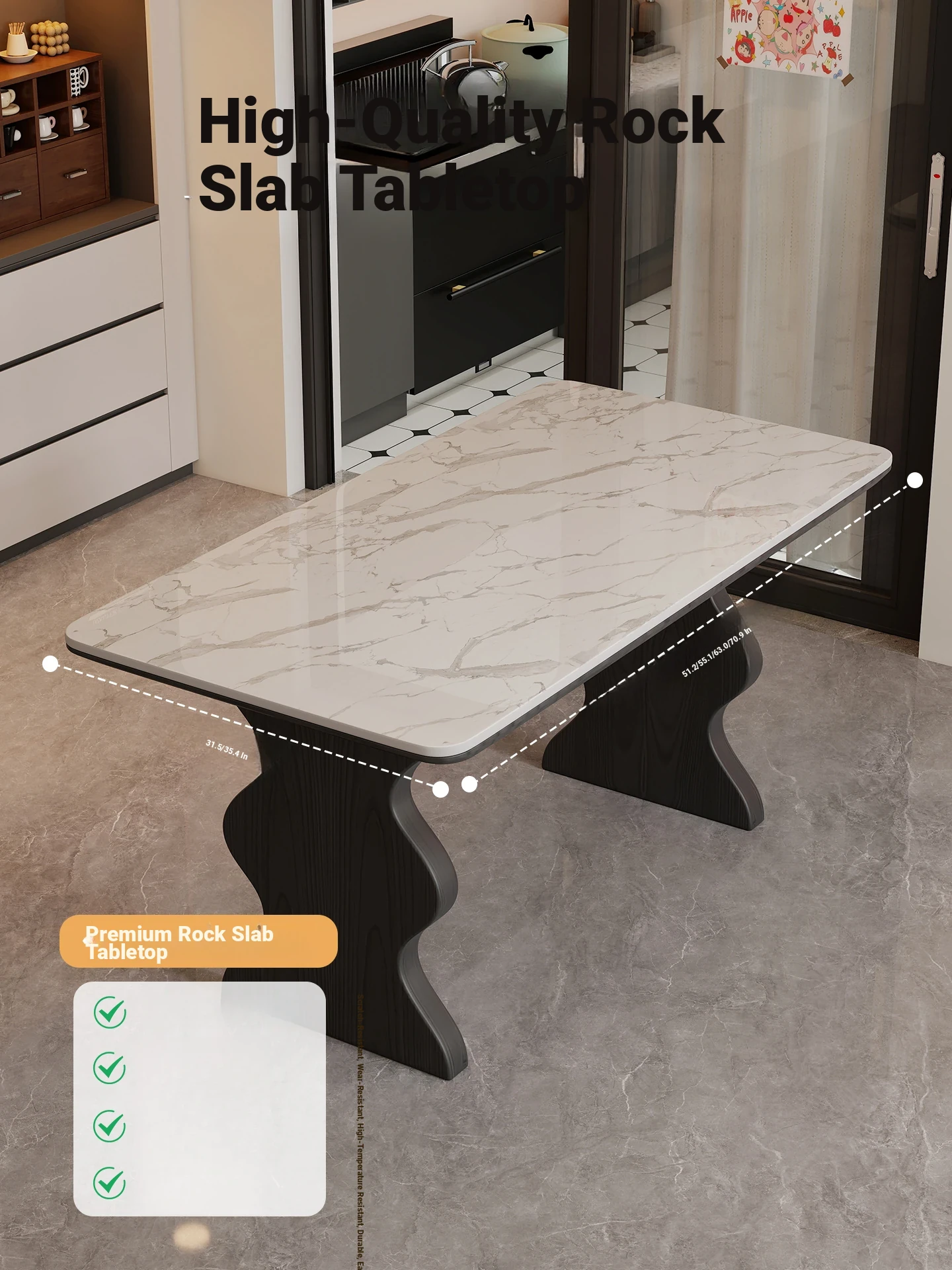 [Package Installation] 51.18in*31.50in [Snow Mountain White]-Rubber Wood Table Legs