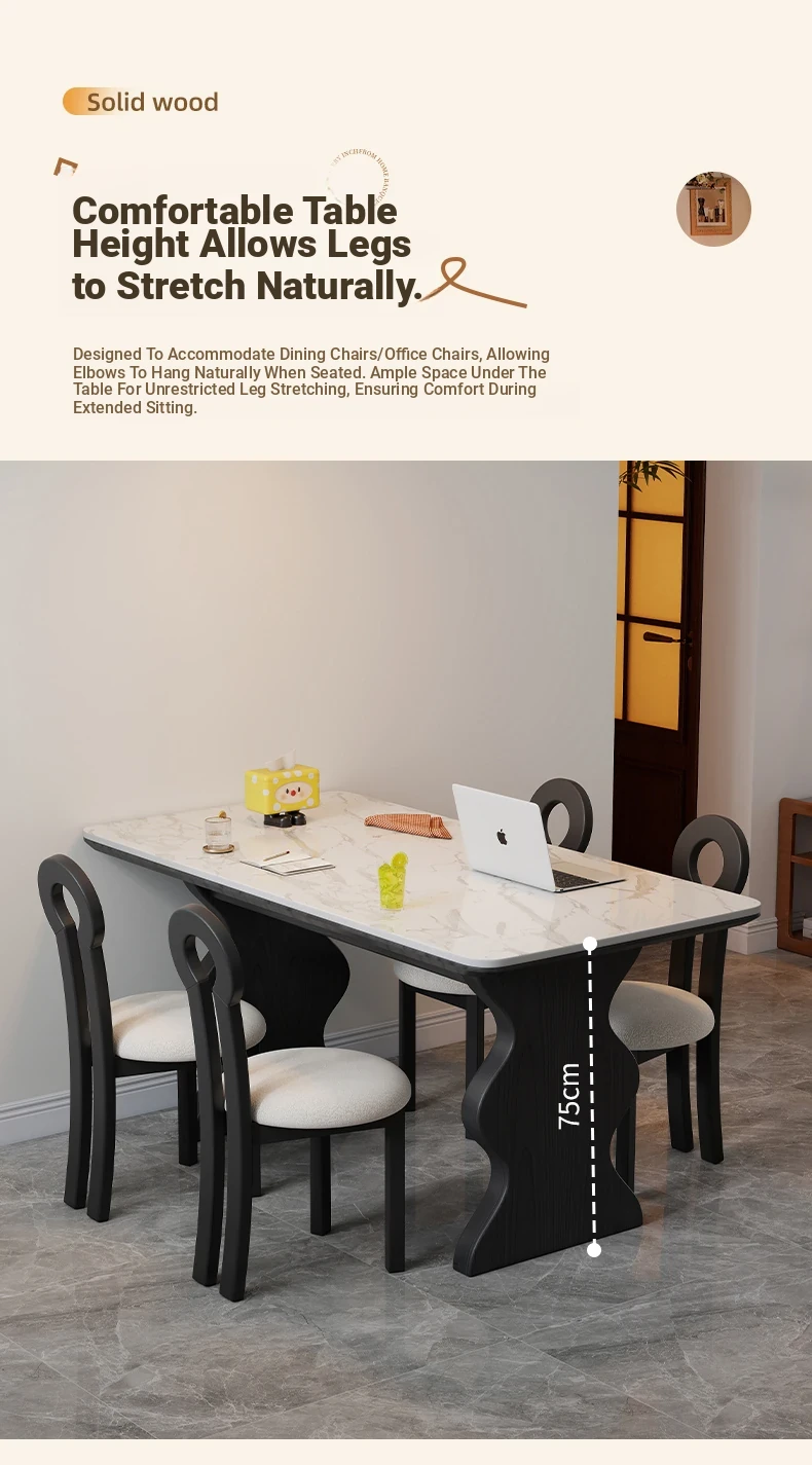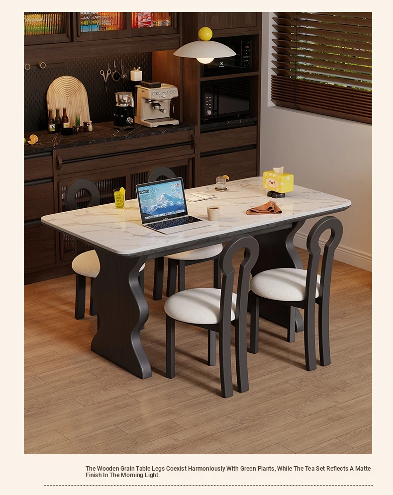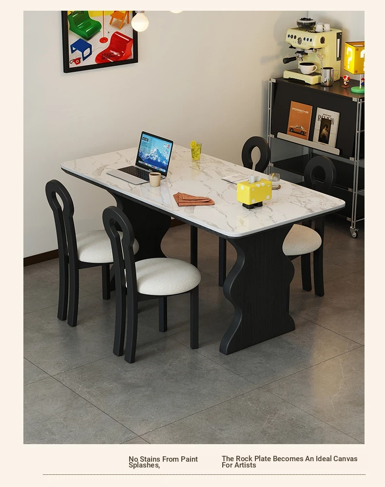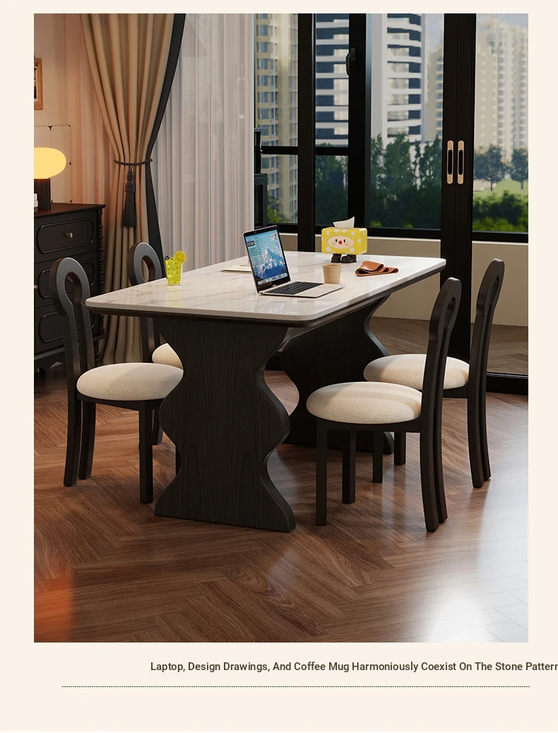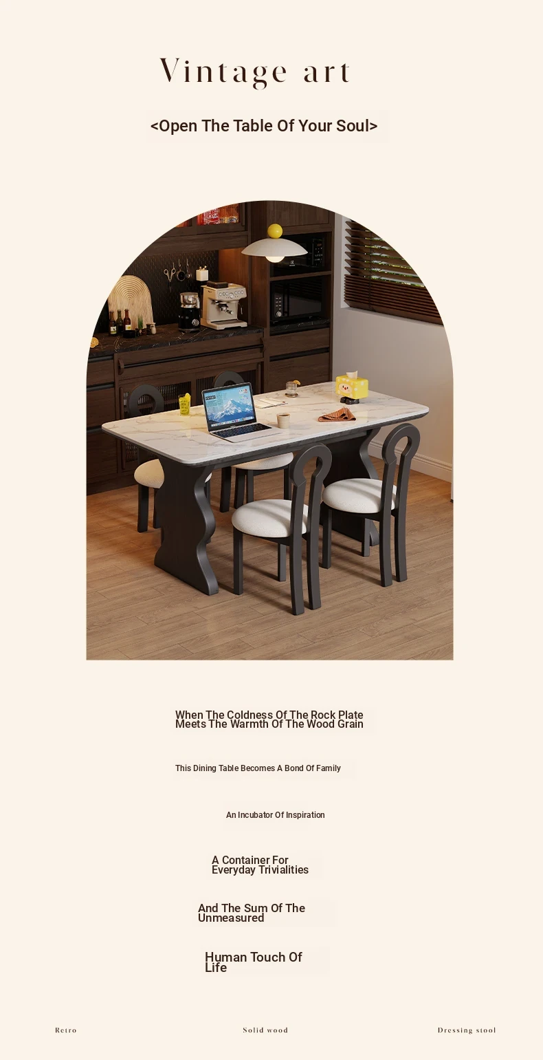 French Vintage Solid Wood Rock Slab Dining Table - Elegant Italian Style High-End Black Table for Small Spaces - American Solid Wood Western Dining Table