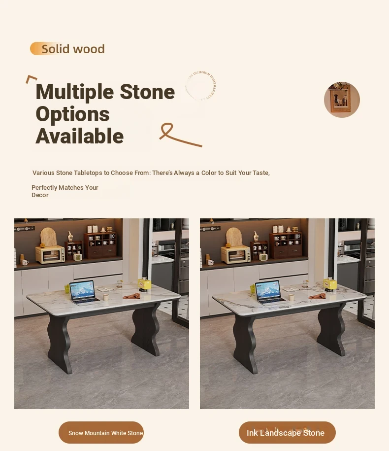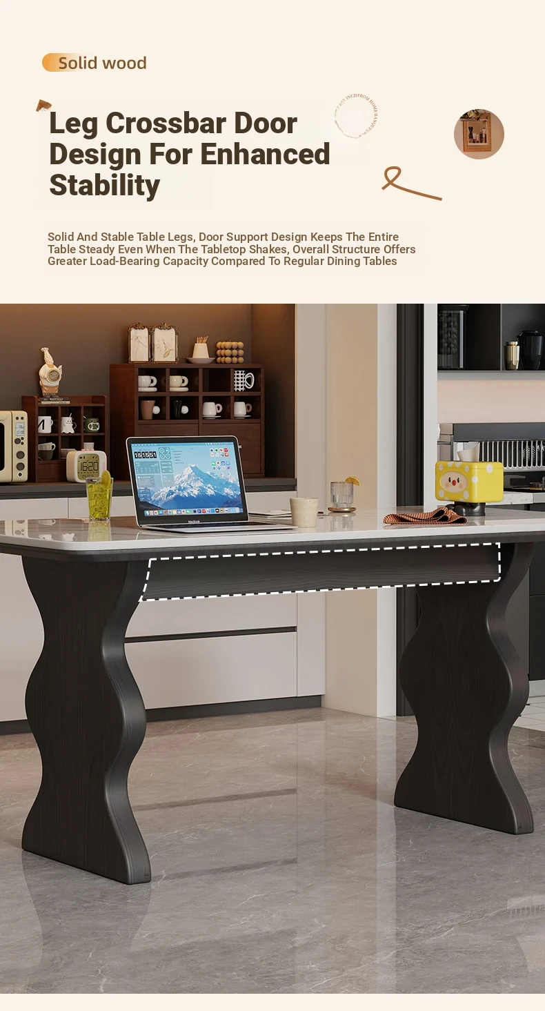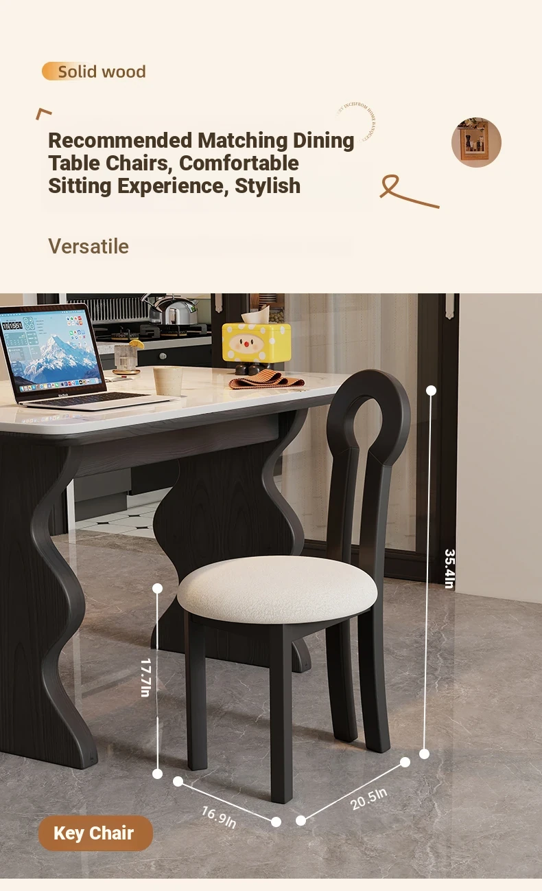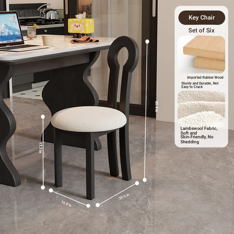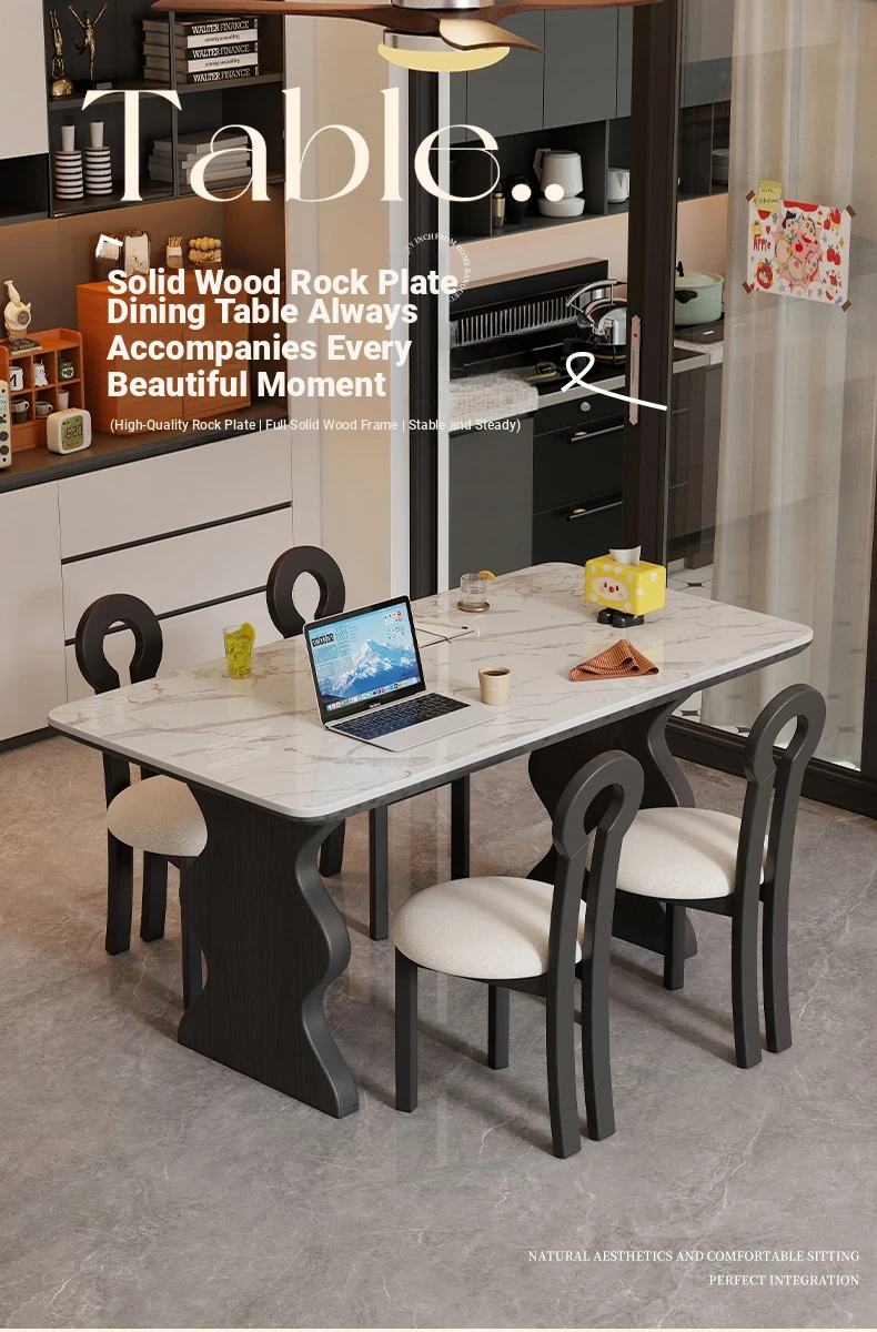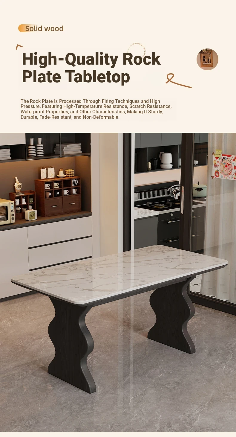 French Vintage Solid Wood Rock Slab Dining Table - Elegant Italian Style High-End Black Table for Small Spaces - American Solid Wood Western Dining Table