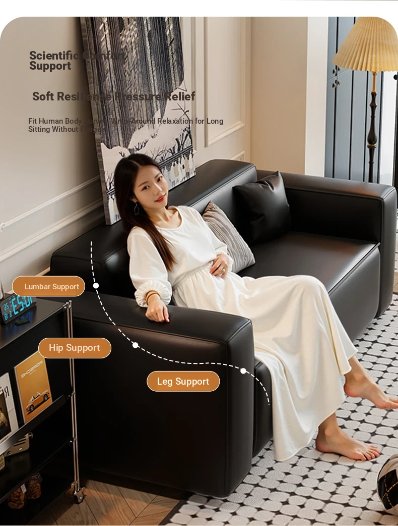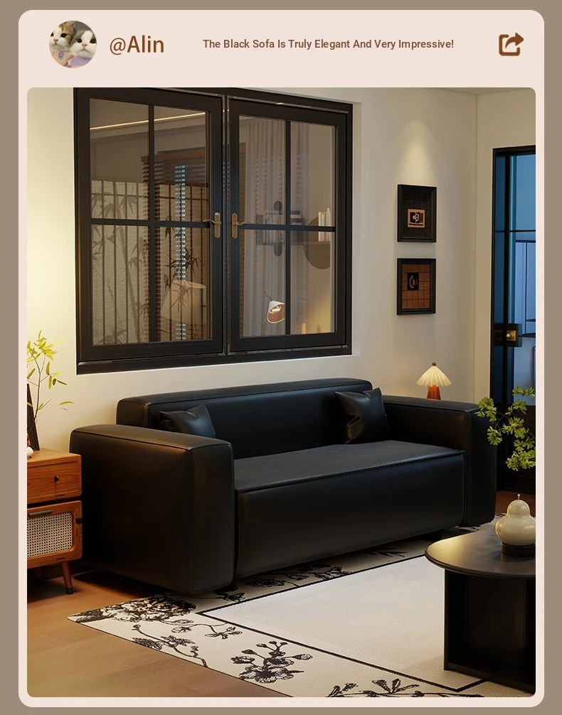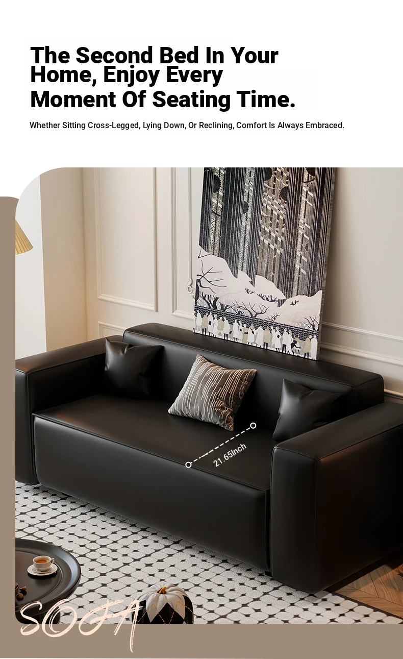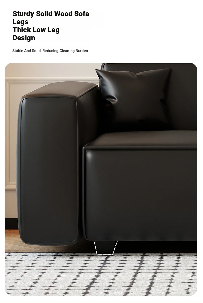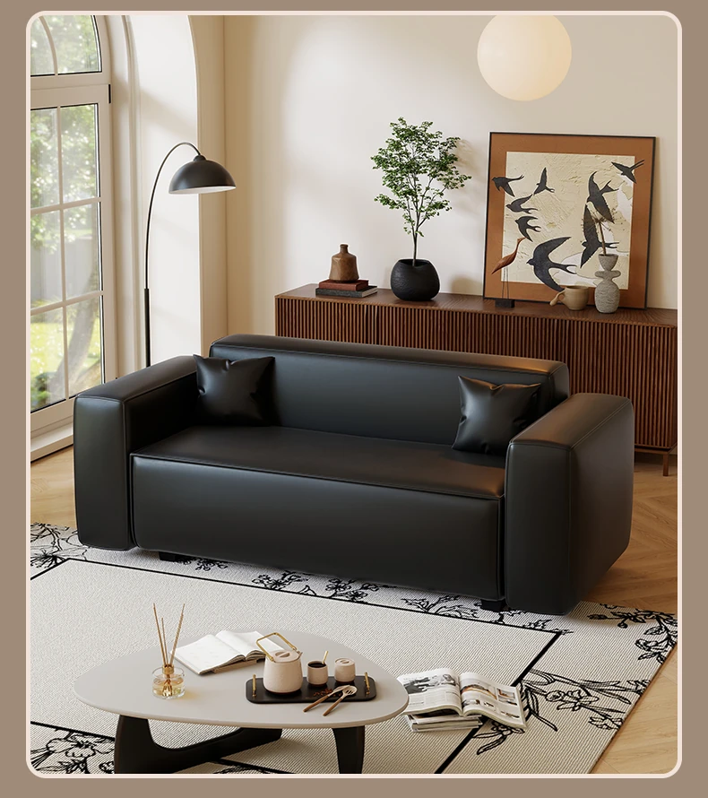 Modern Black Leatherette Double Sofa - Compact Design for Small Apartments, Ideal for Living Rooms and Guest Reception. Stylish and Minimalist!