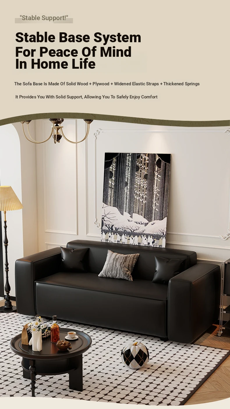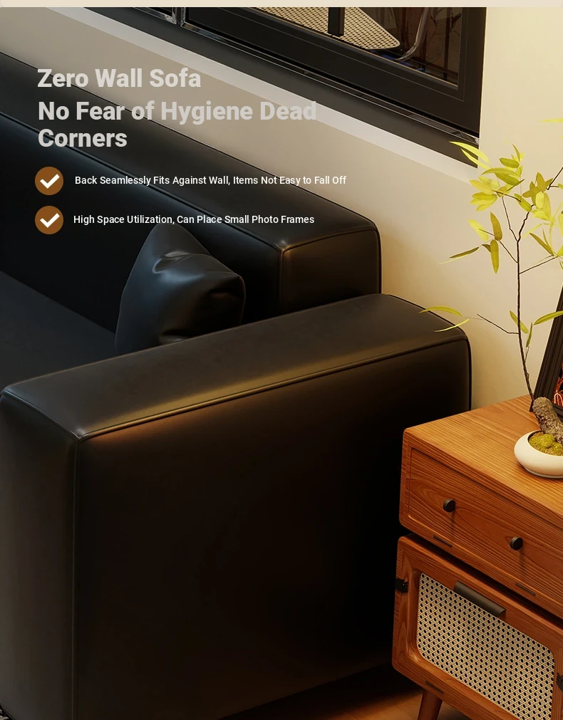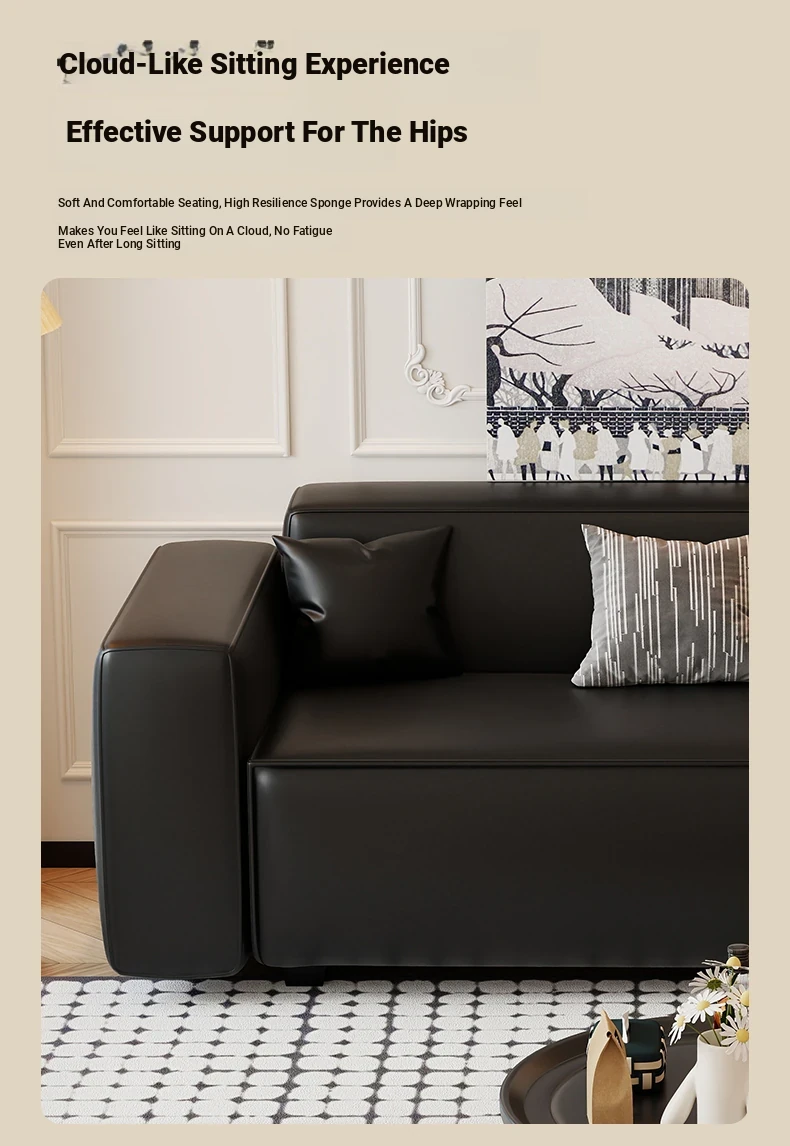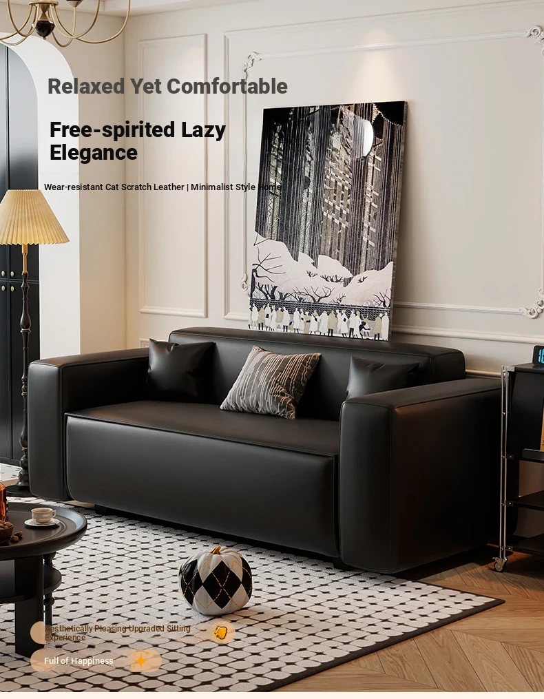 Modern Black Leatherette Double Sofa - Compact Design for Small Apartments, Ideal for Living Rooms and Guest Reception. Stylish and Minimalist!