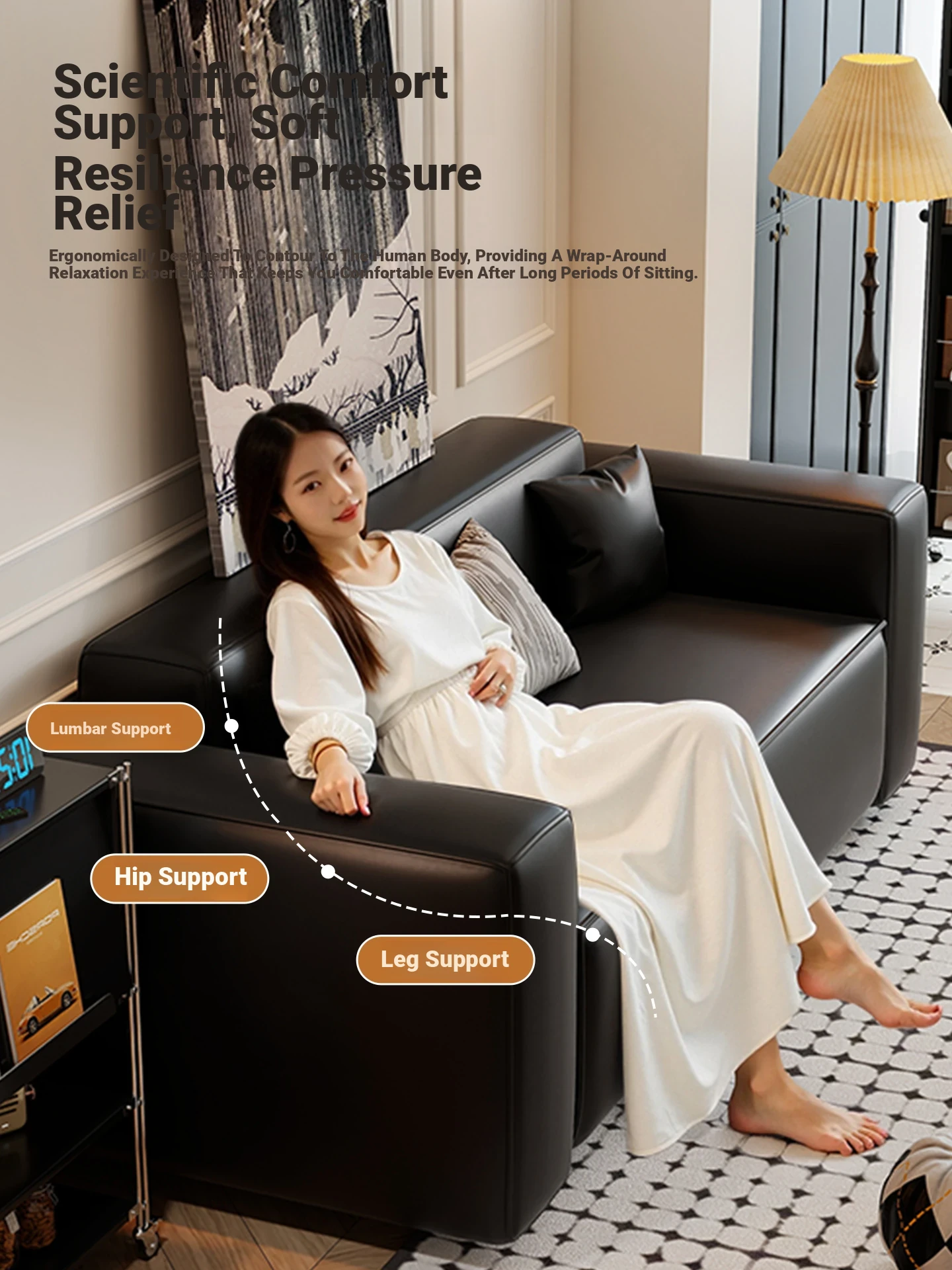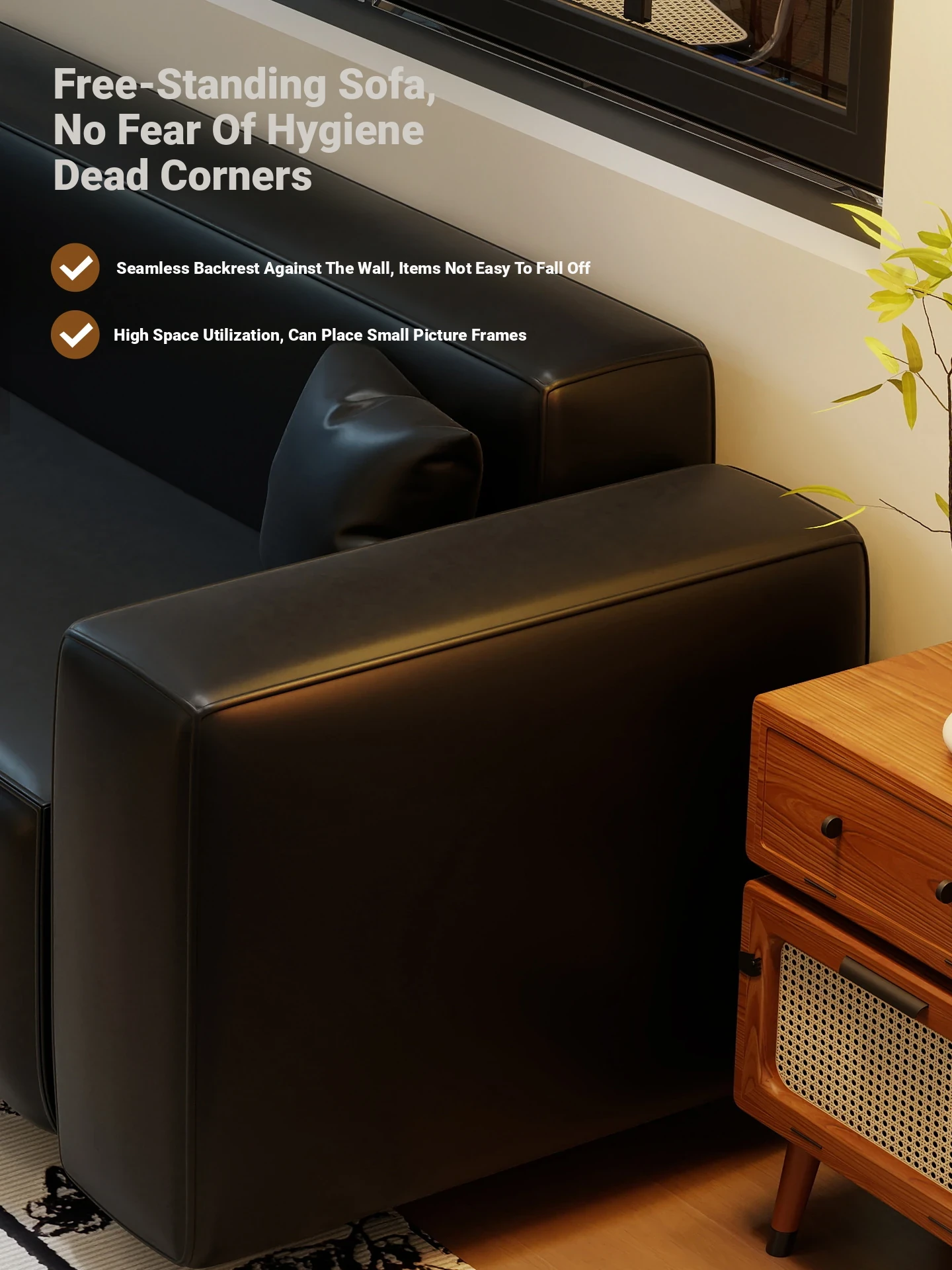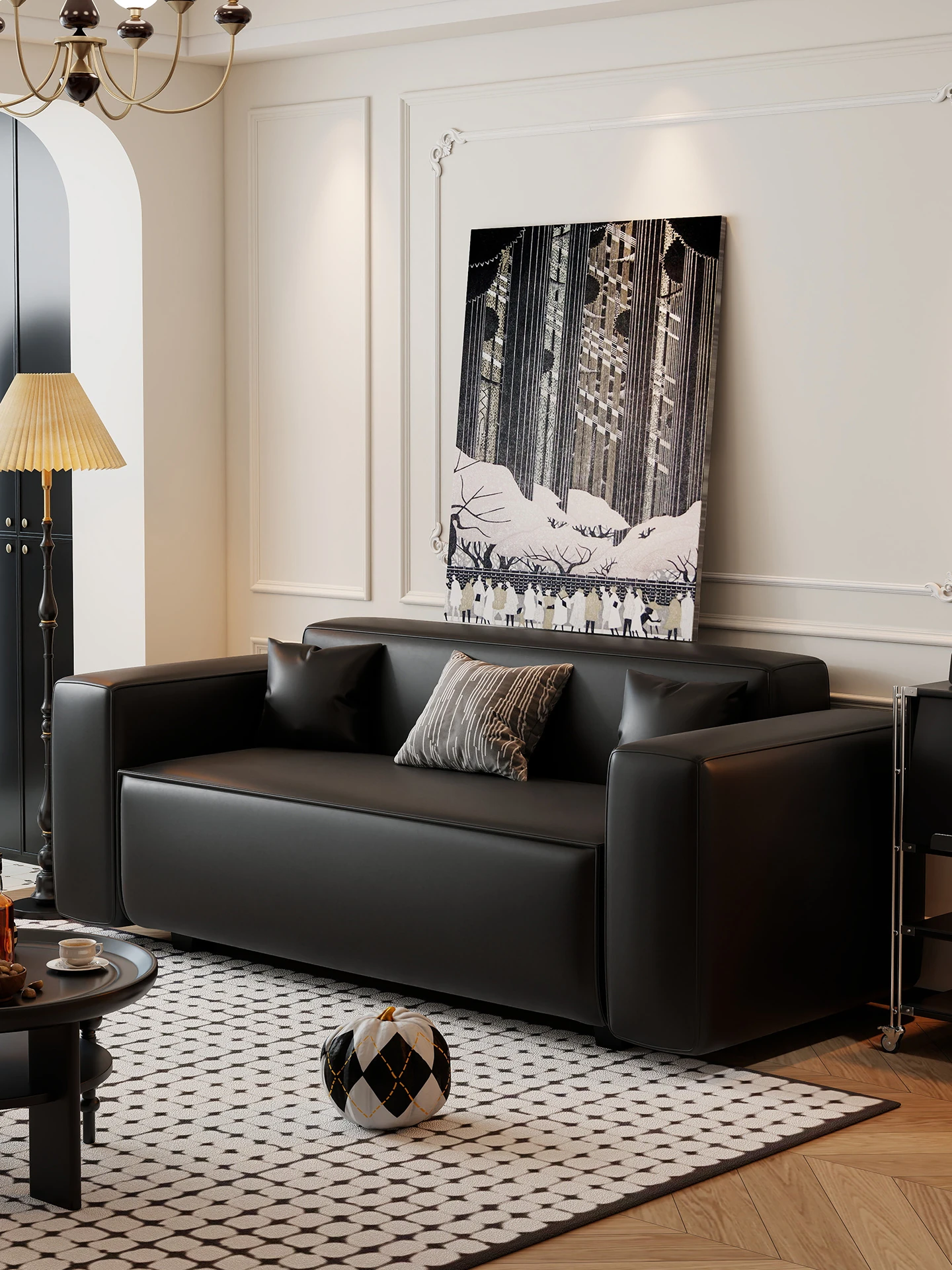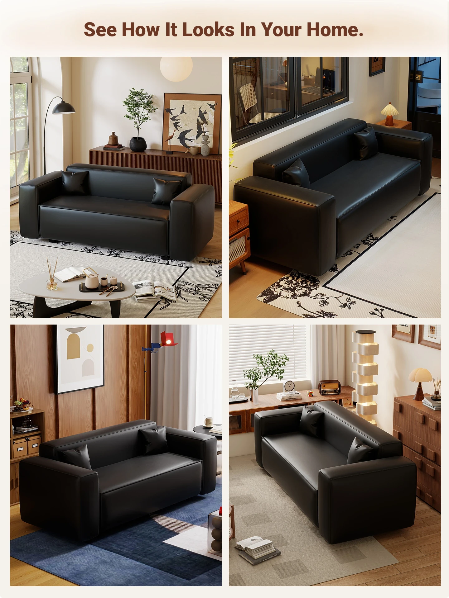 Modern Black Leatherette Double Sofa - Compact Design for Small Apartments, Ideal for Living Rooms and Guest Reception. Stylish and Minimalist!