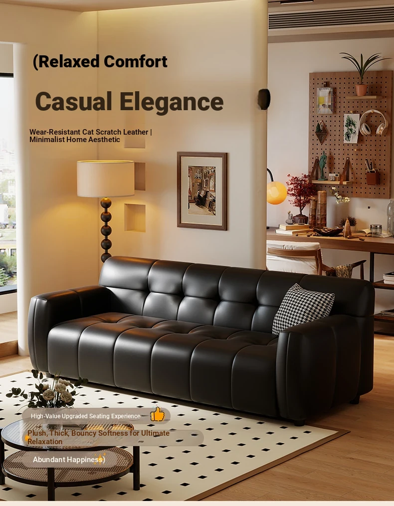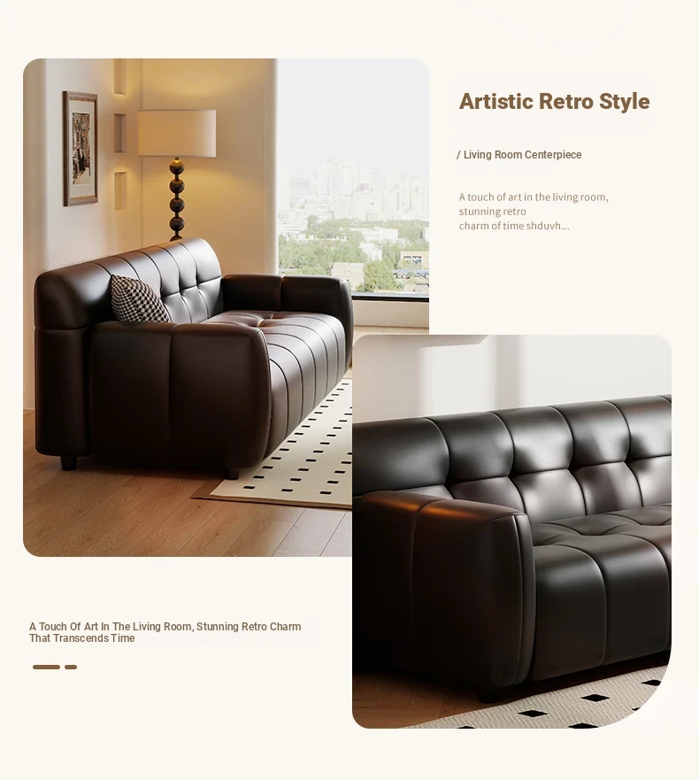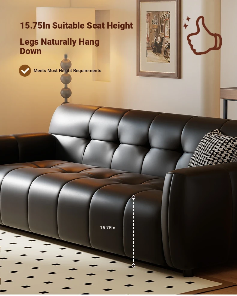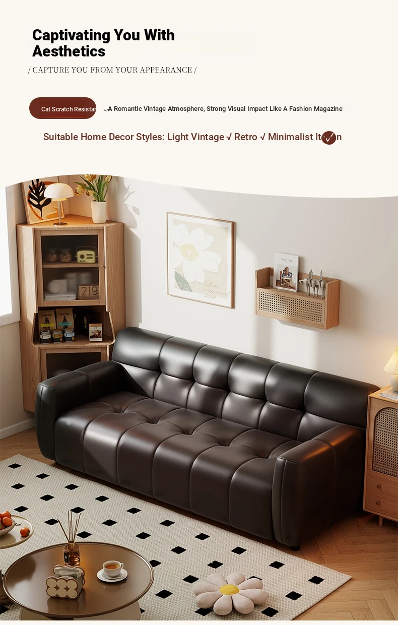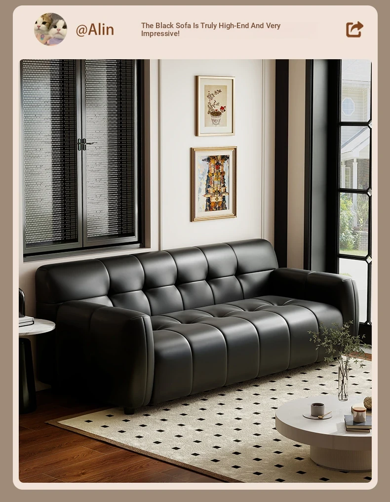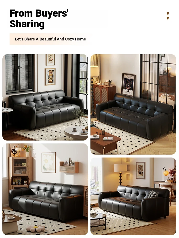Retro Italian Leather Sofa for Small Spaces - Minimalist Design for Apartments, Double and Triple Seat Options in Stylish Black