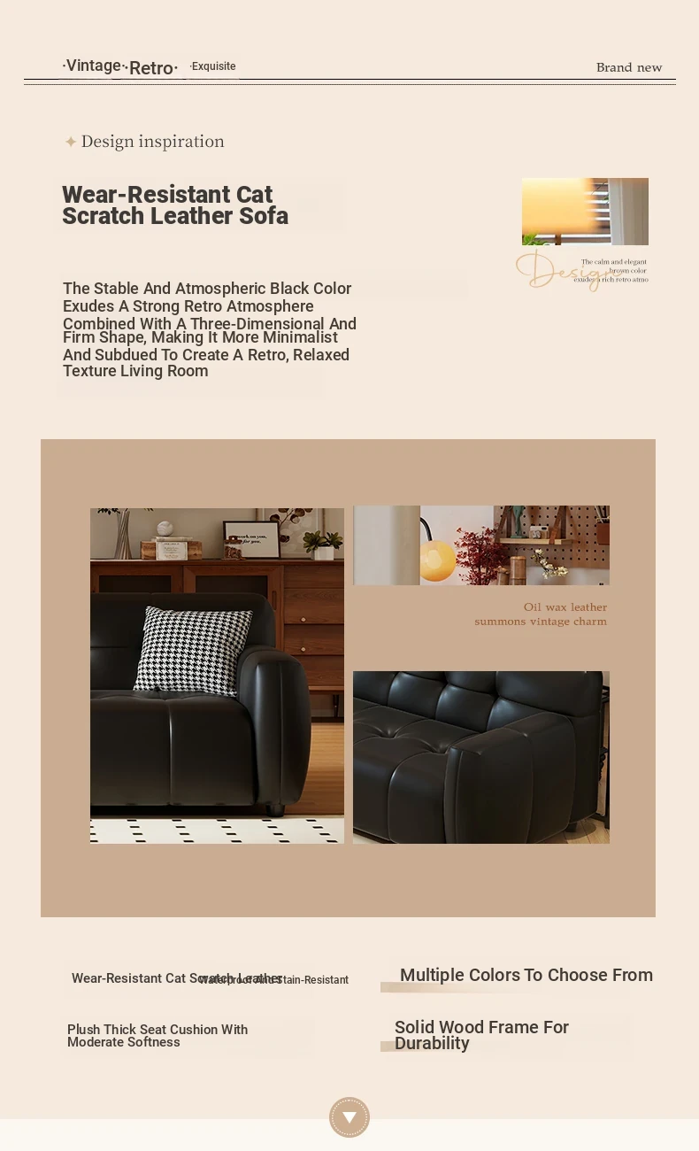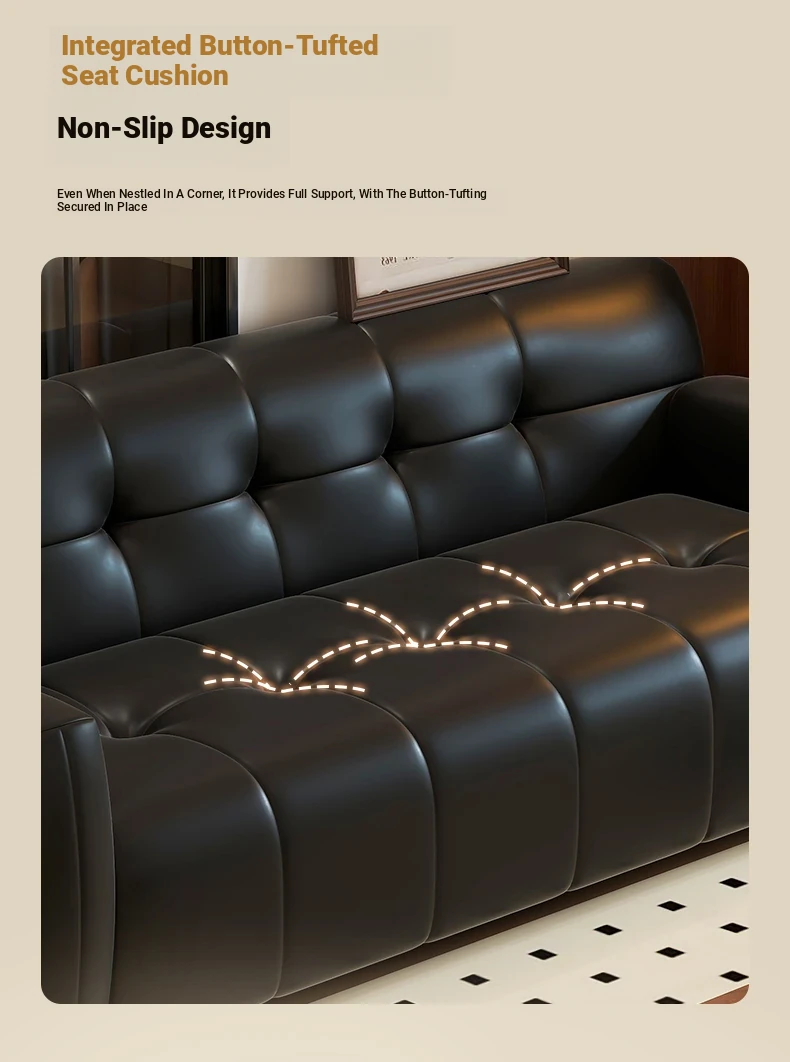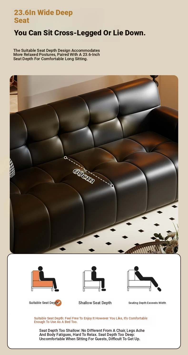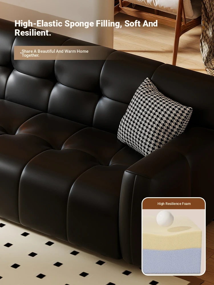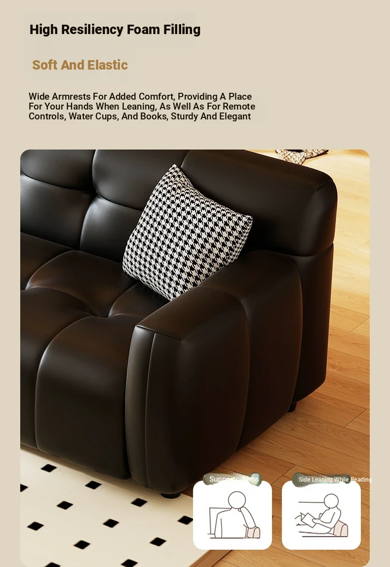 Retro Italian Leather Sofa for Small Spaces - Minimalist Design for Apartments, Double and Triple Seat Options in Stylish Black
