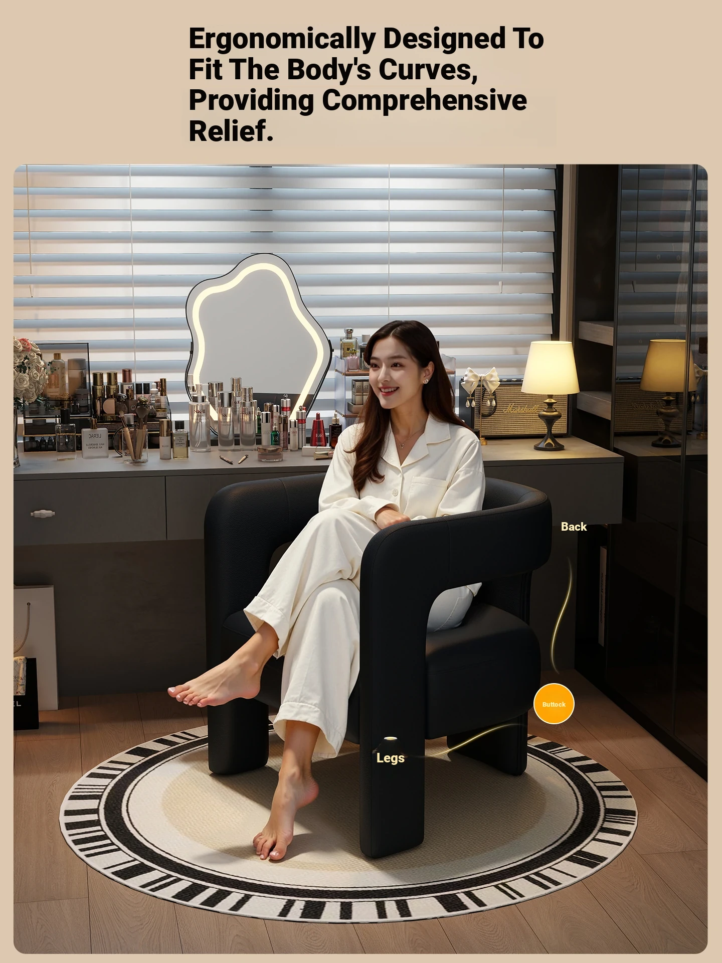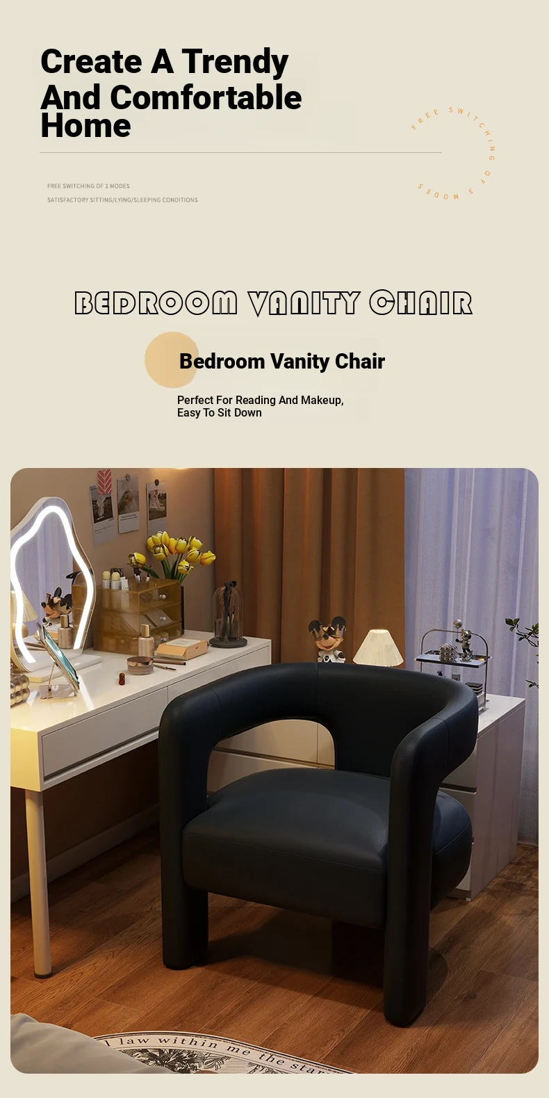 Stylish Makeup Chair for Home – Perfect for Bedroom Vanity, Dressing Table, and Makeup Studio – Comfortable Backrest, Ideal for Nail Art and Wardrobe Use