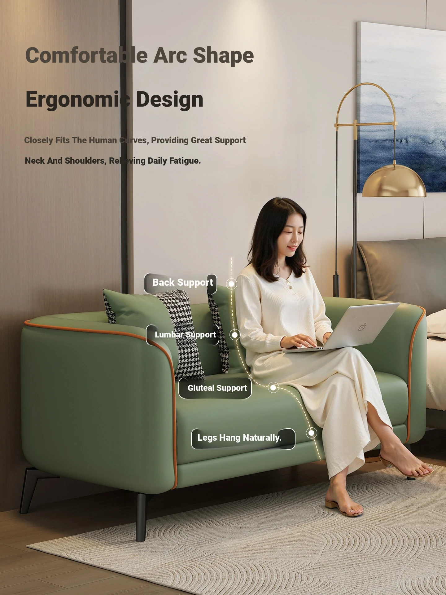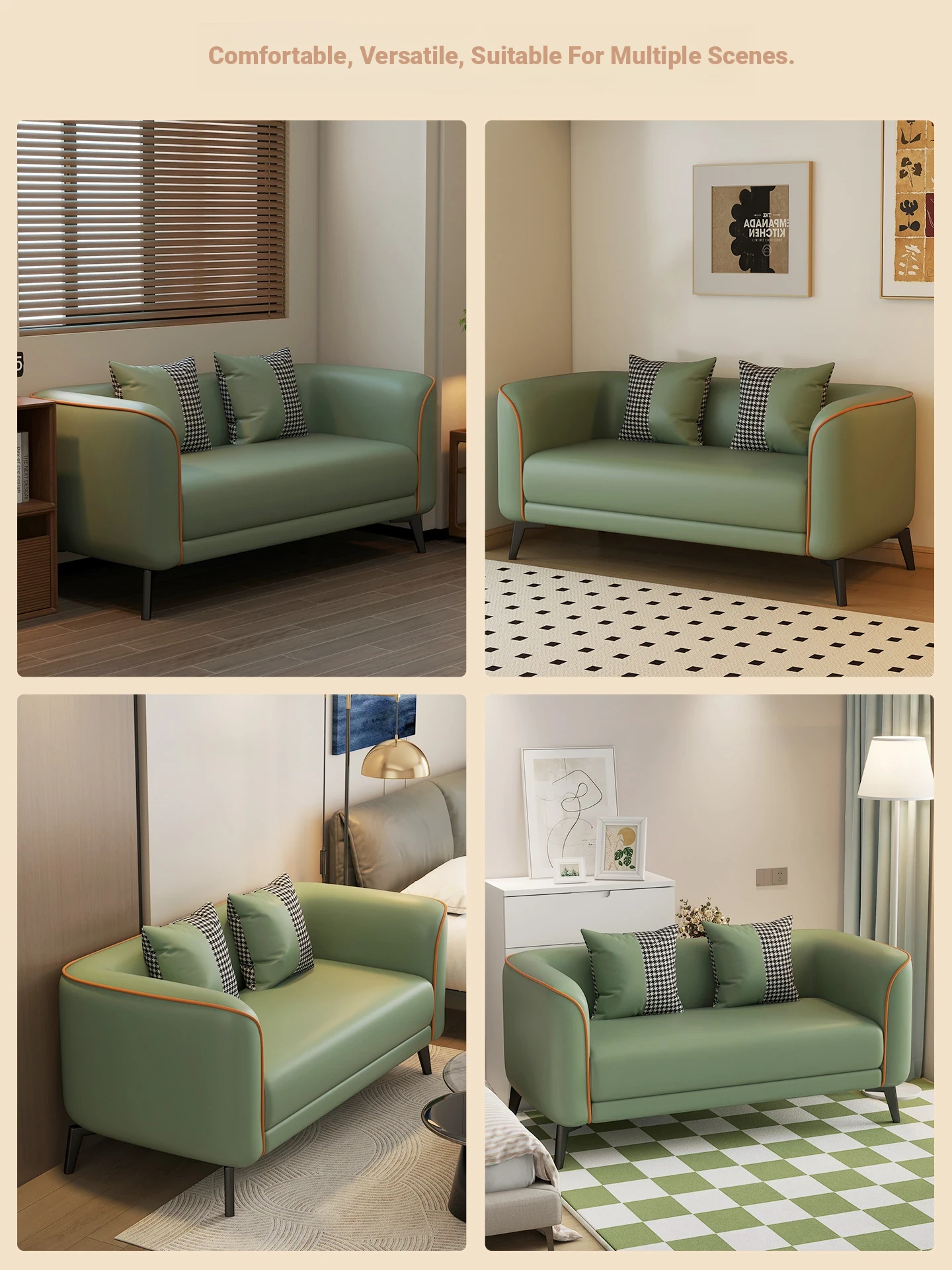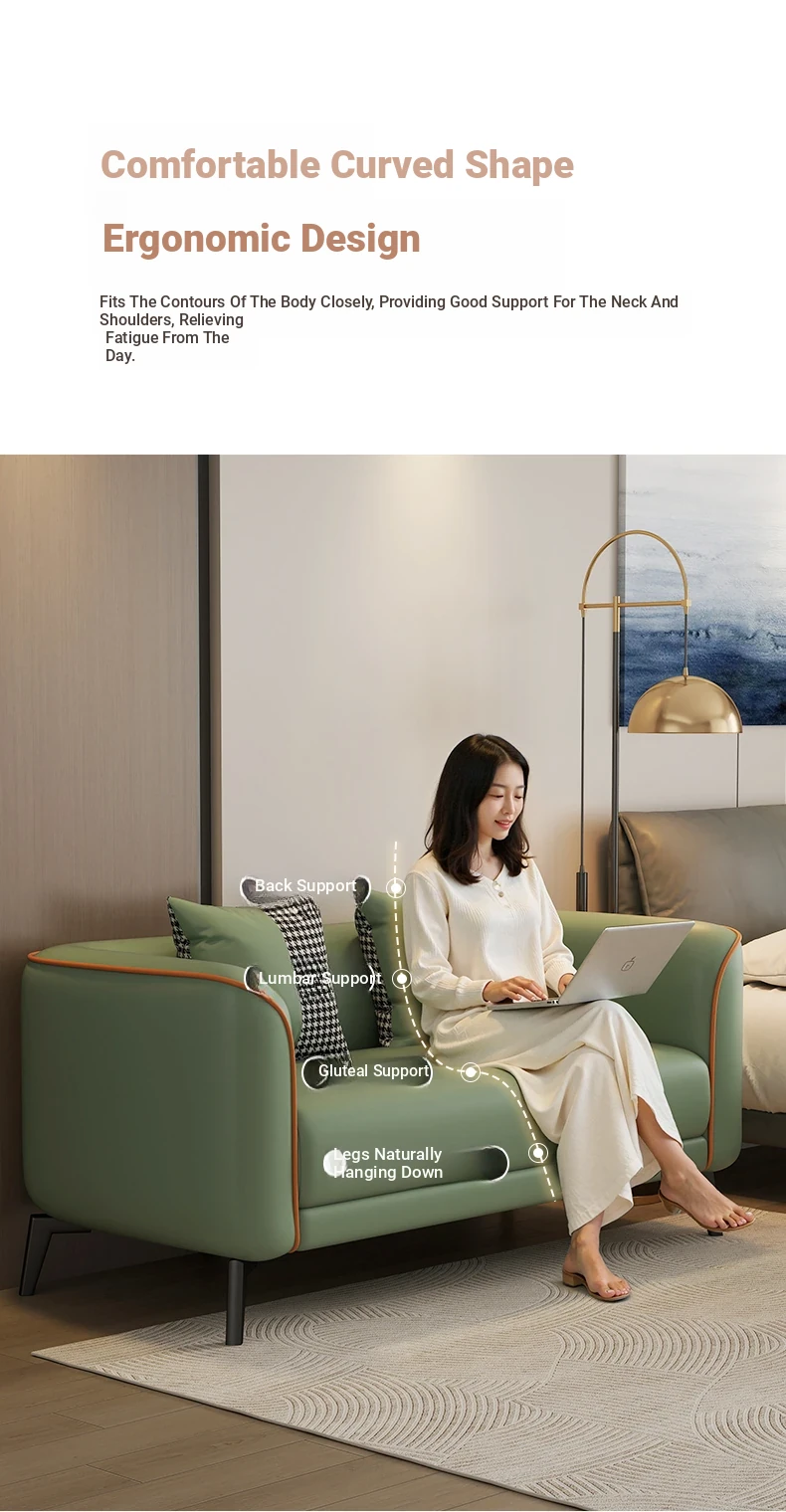 Stylish Two-Person Sofa for Small Spaces - Luxury Cat-Proof Faux Leather Sofa in Nordic Design for Bedrooms and Clothing Store Reception
