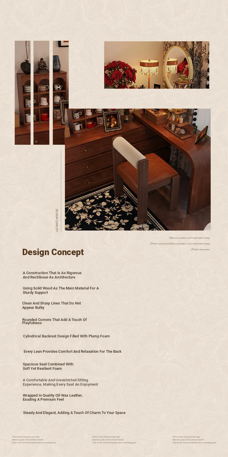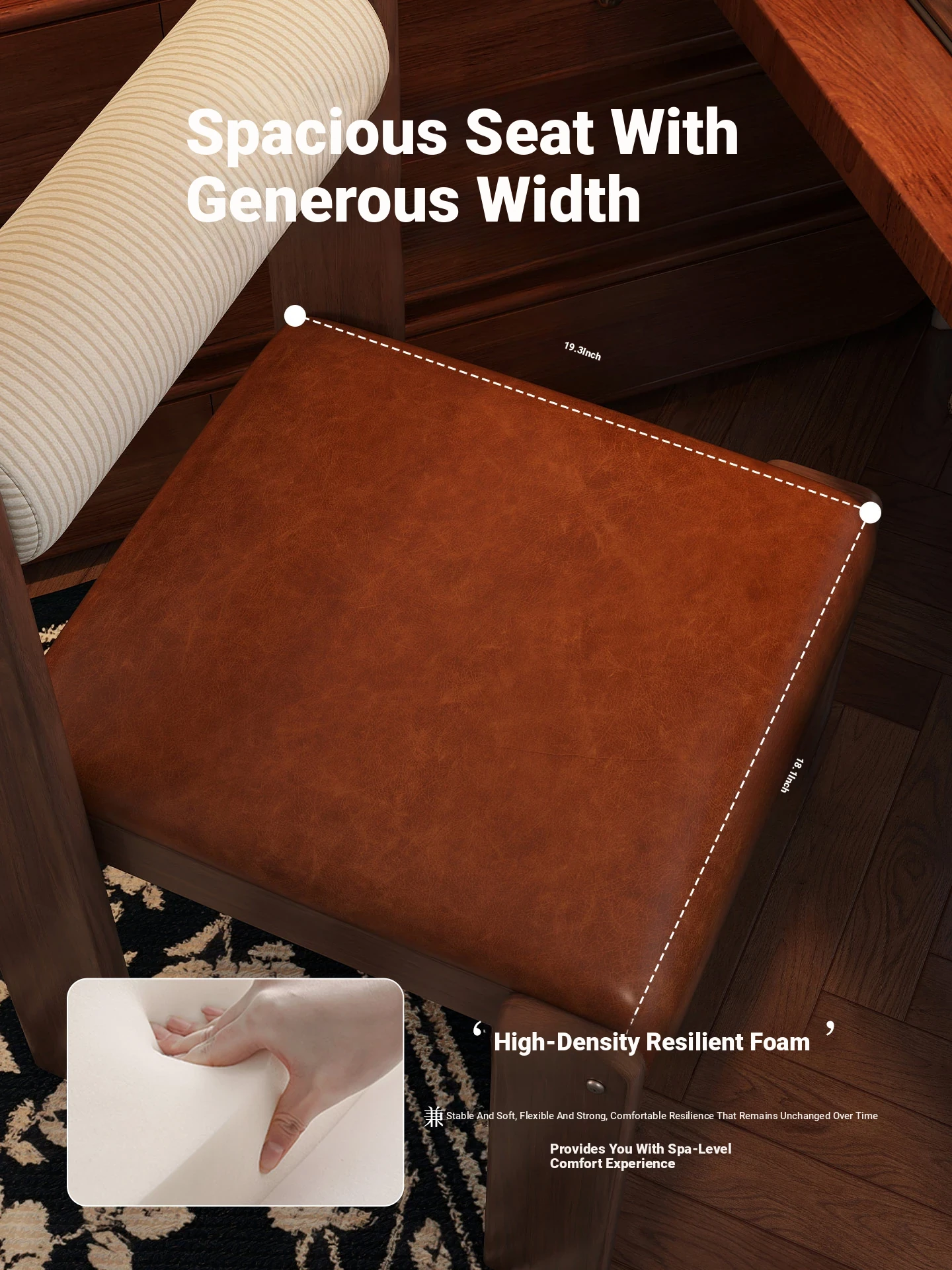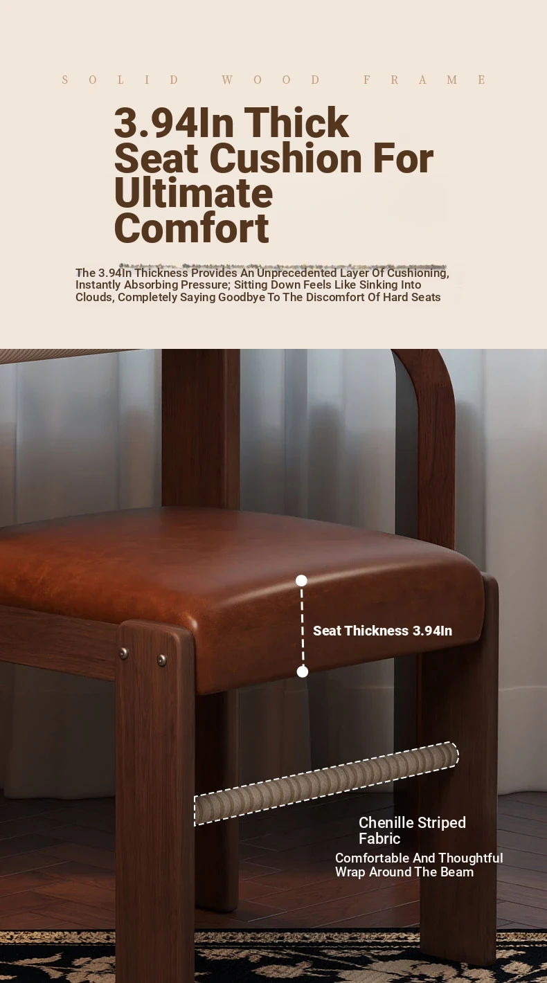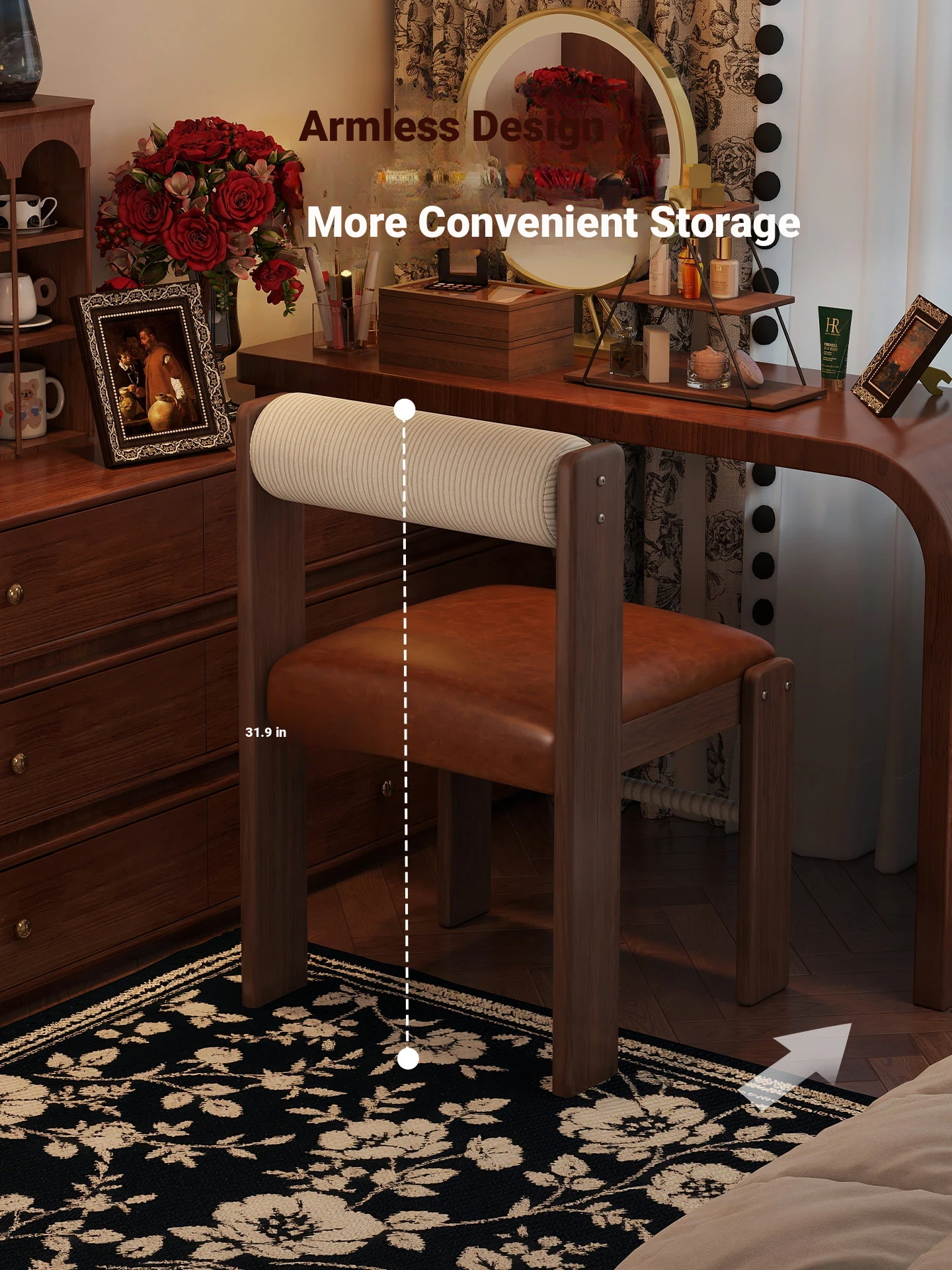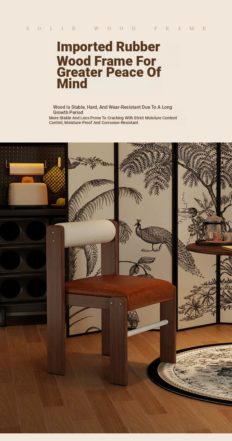 Wabi-Sabi Style Makeup Chair - Solid Wood Vanity Stool for Bedroom, French Vintage Dressing Table with Backrest, Soft Cushioned Dining Chair