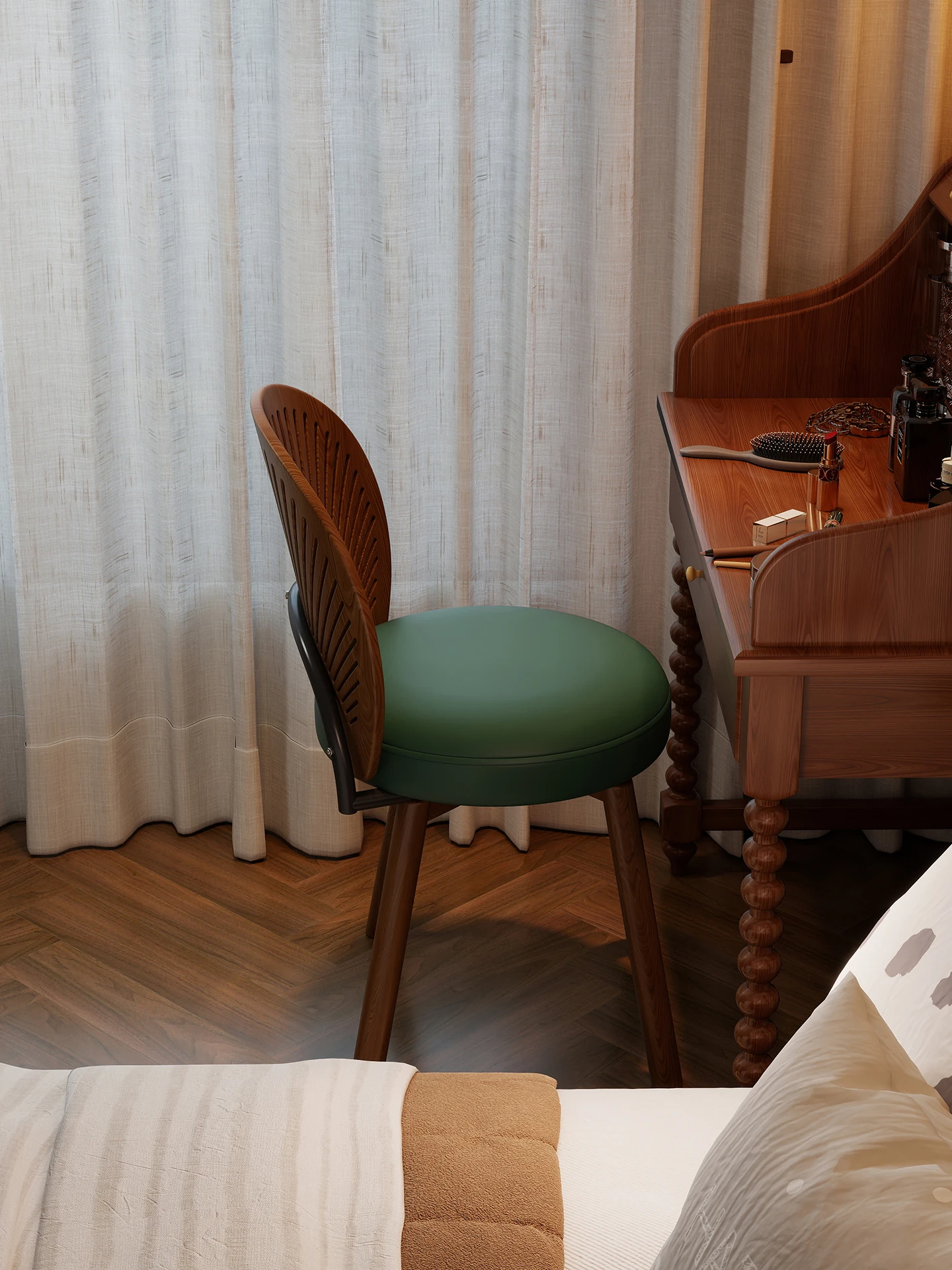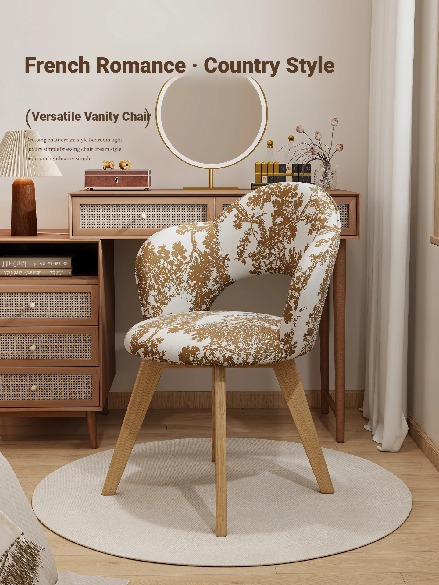 French Solid Wood Vanity Chair - Elegant Makeup Stool for Bedroom, Retro Design for Home Use, Plush Backrest Dining Chair for Dining Room Tables