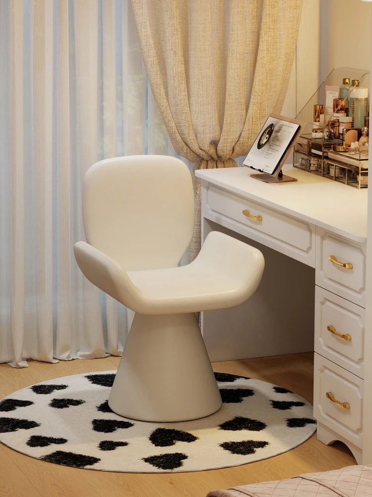 Creamy Rotating Makeup Stool - Stylish Lambswool Vanity Chair for Small Bedrooms, Perfect for Young Women, Ideal for Desks and Computer Use