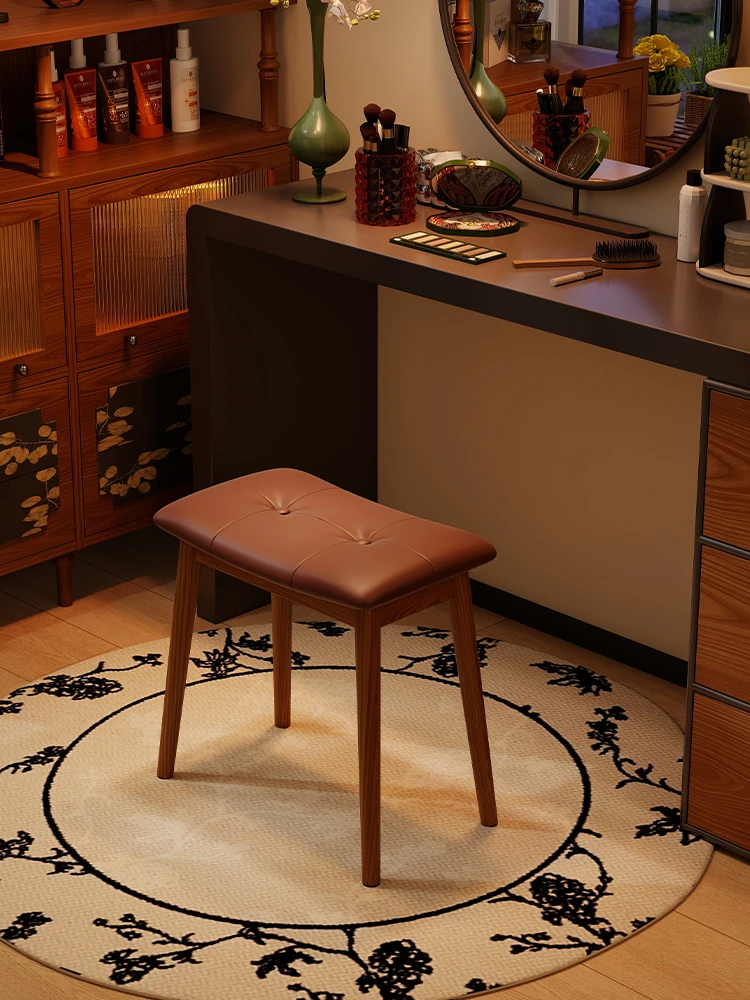 Vintage Solid Wood Vanity Chair - Elegant Makeup Stool for Bedroom, Dressing Table, and Closet - Retro Style Desk Stool for Women