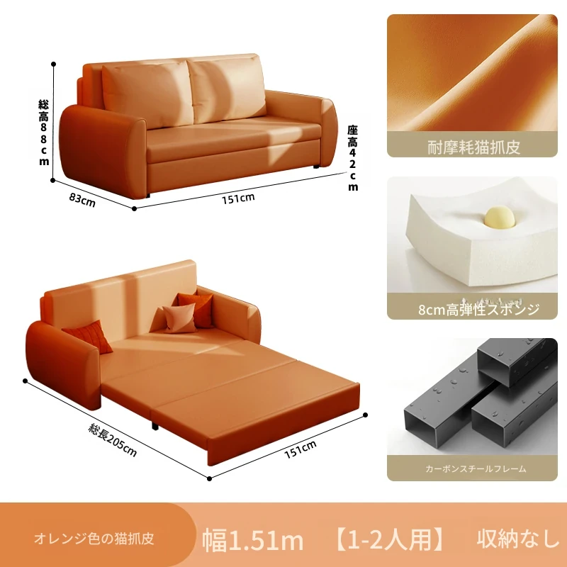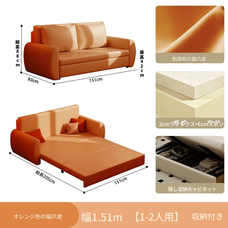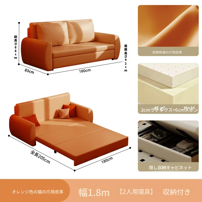 1.8m-オレンジ猫爪皮-スポンジタイプ+2収納