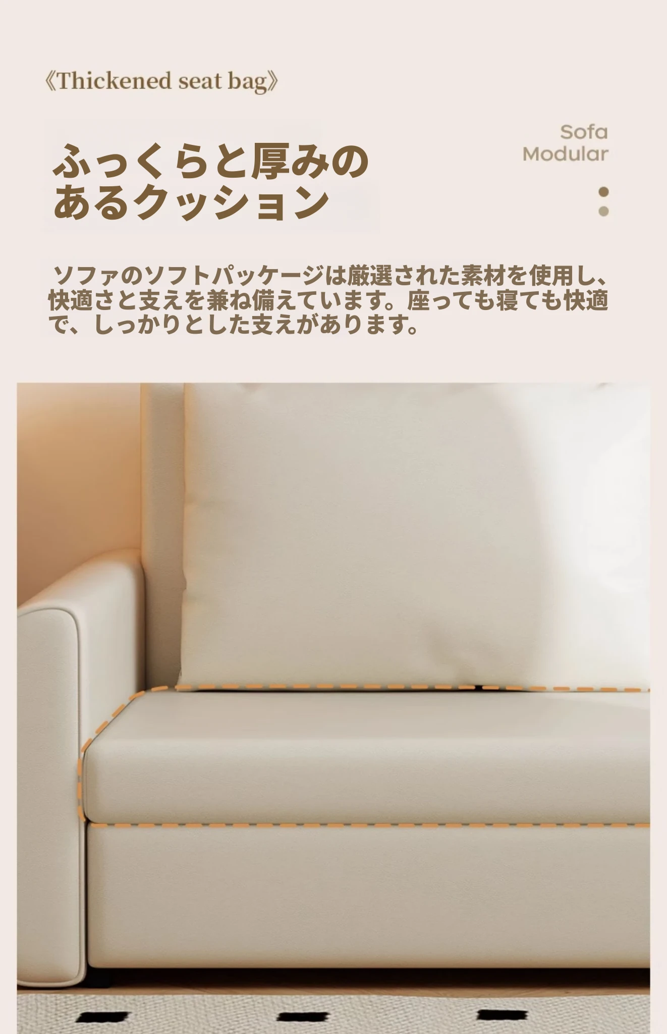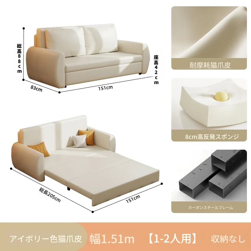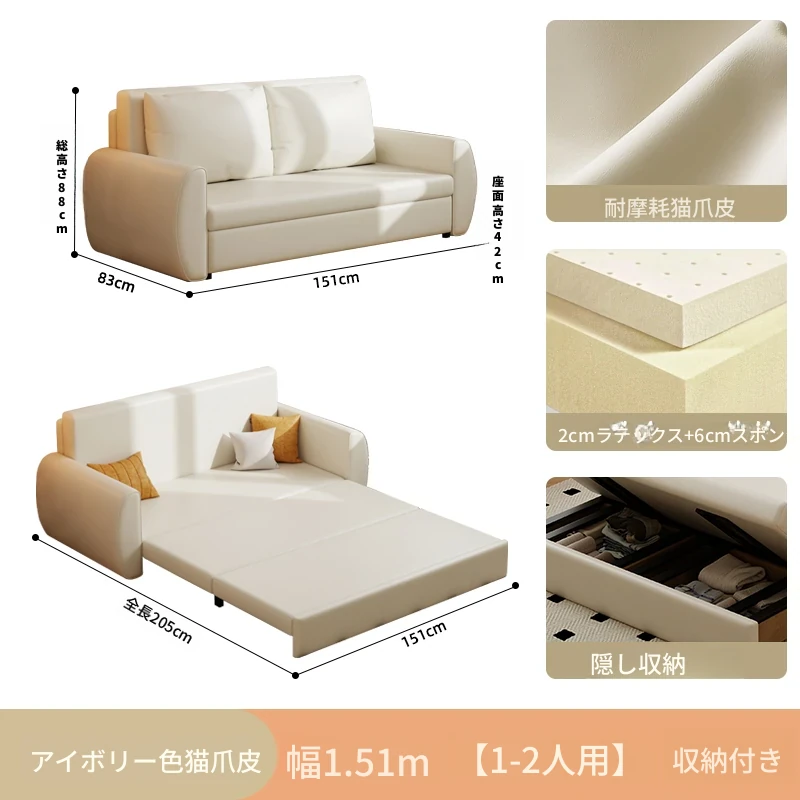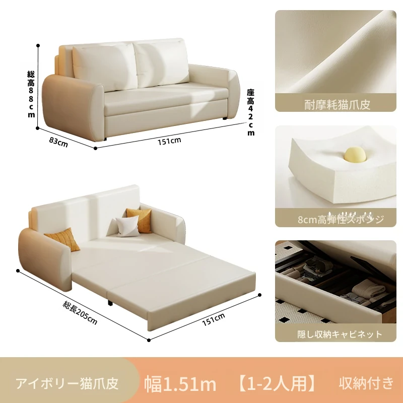 1.51m-アイボリー猫爪皮-スポンジタイプ+収納