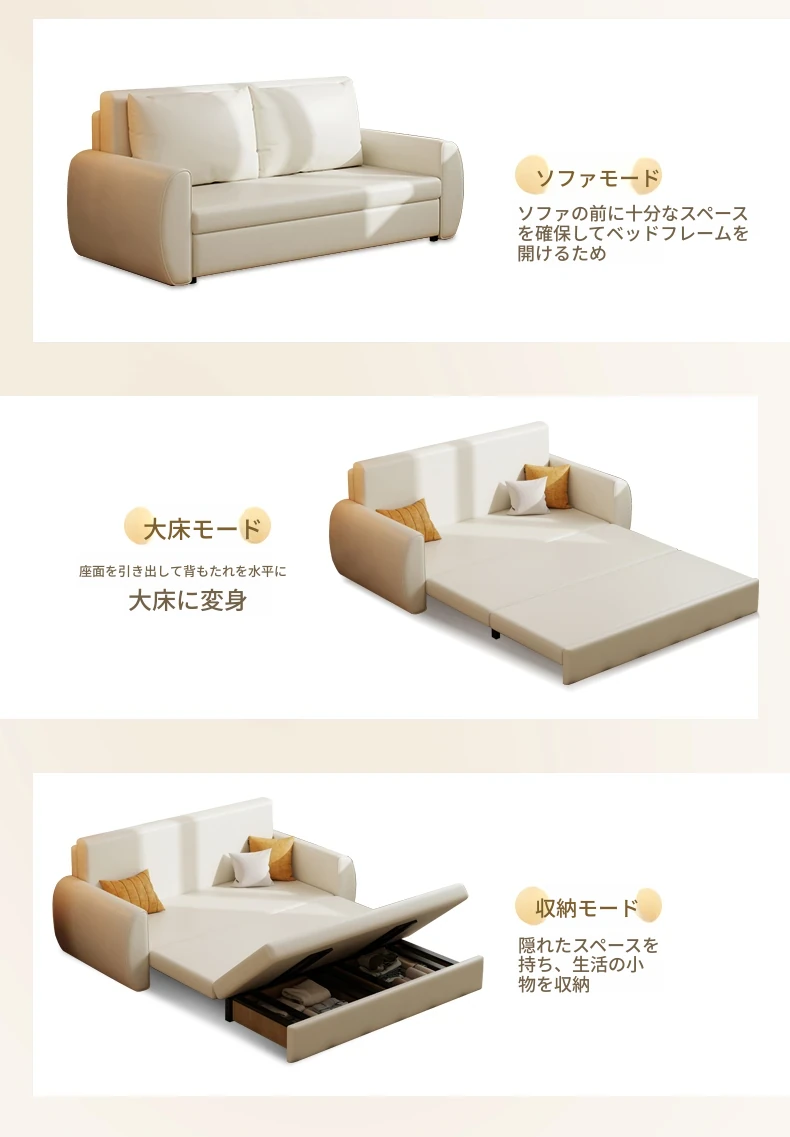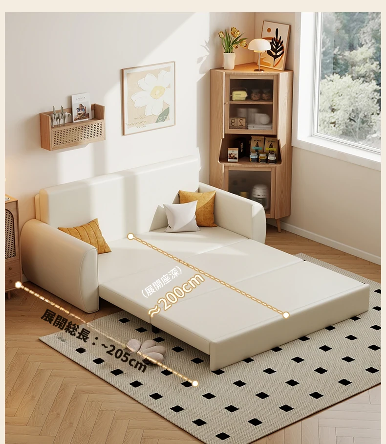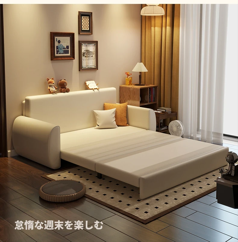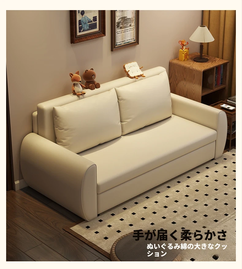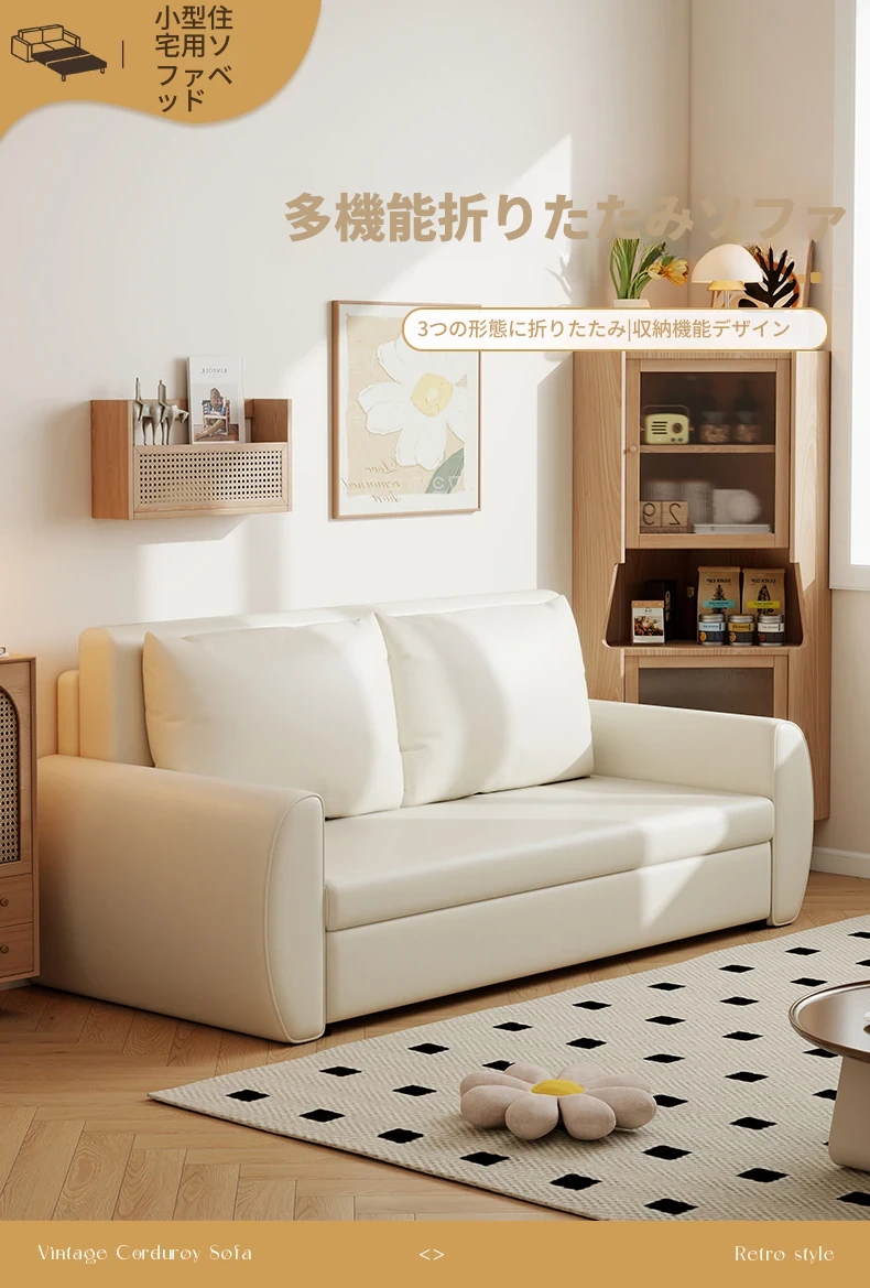 クリーム風折りたたみソファベッド 2025年新モデル 小型住宅向け リビング用スライドベッド 多機能ゲストベッドで、快適な宿泊体験を提供します!