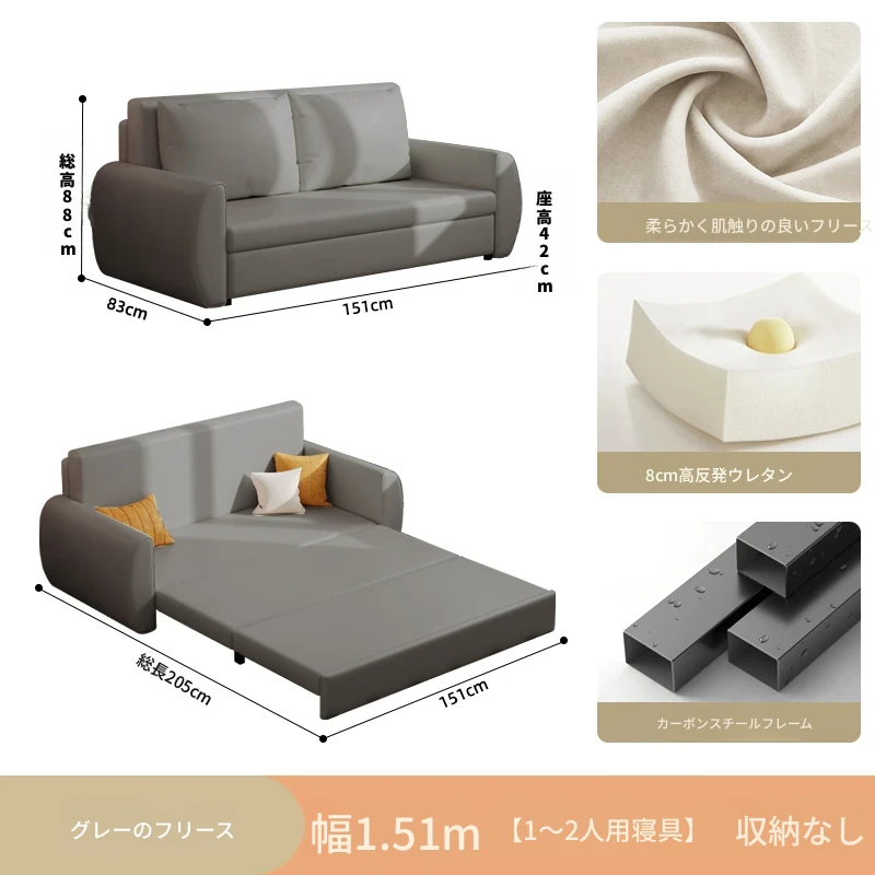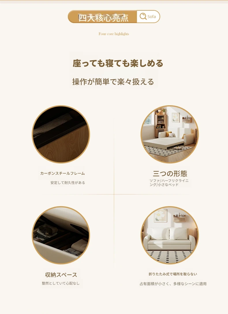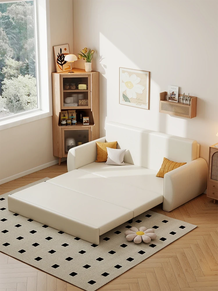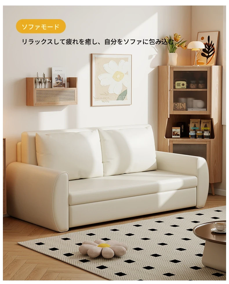 クリーム風折りたたみソファベッド 2025年新モデル 小型住宅向け リビング用スライドベッド 多機能ゲストベッドで、快適な宿泊体験を提供します!