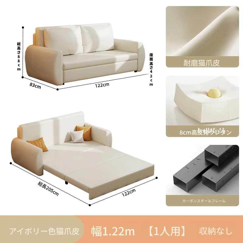 1.22m-アイボリー猫爪皮-スポンジタイプ+収納