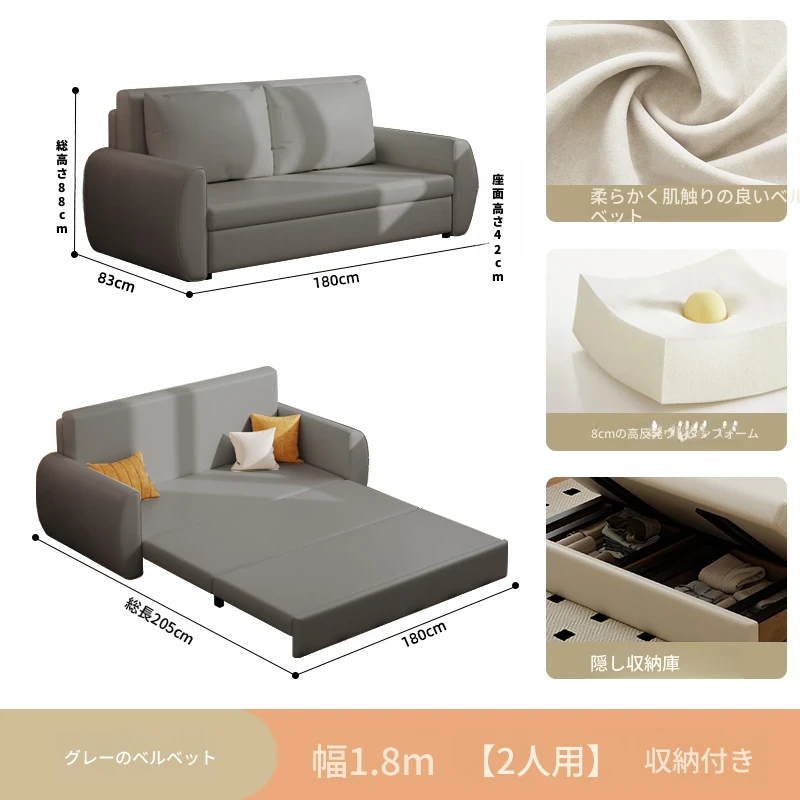 1.8m-アイボリー猫爪皮-スポンジタイプ+2収納