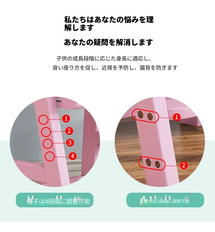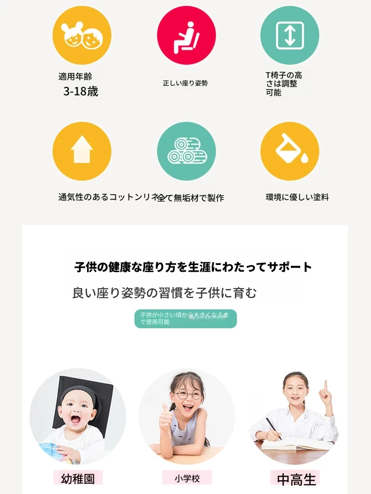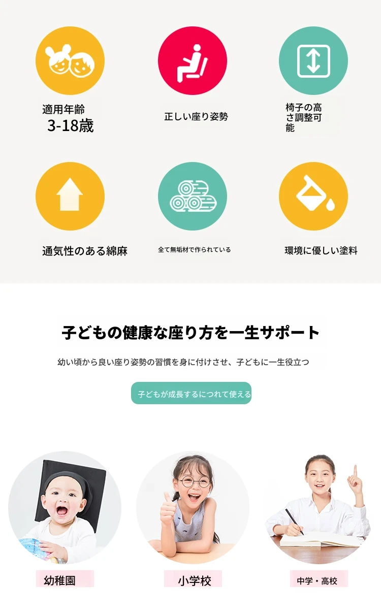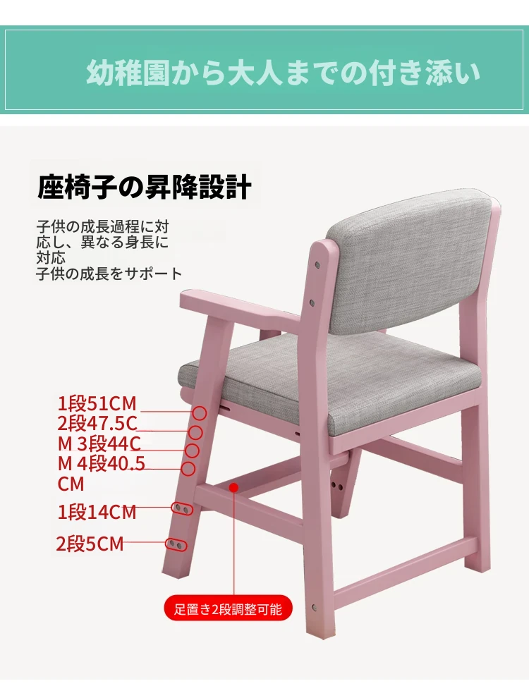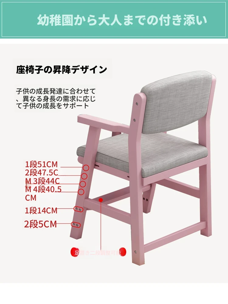 【成长期の子どもに最適】調節可能な高さの子ども用学習椅子 - 姿勢改善に役立つ背もたれ付き学習チェア。中小学生向けの天然木製デスクチェアで、快適な学習環境を提供します。